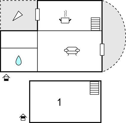 Opholdsstue/køkken - 2 Sovepladser. (Sofa, madras eller lignende).