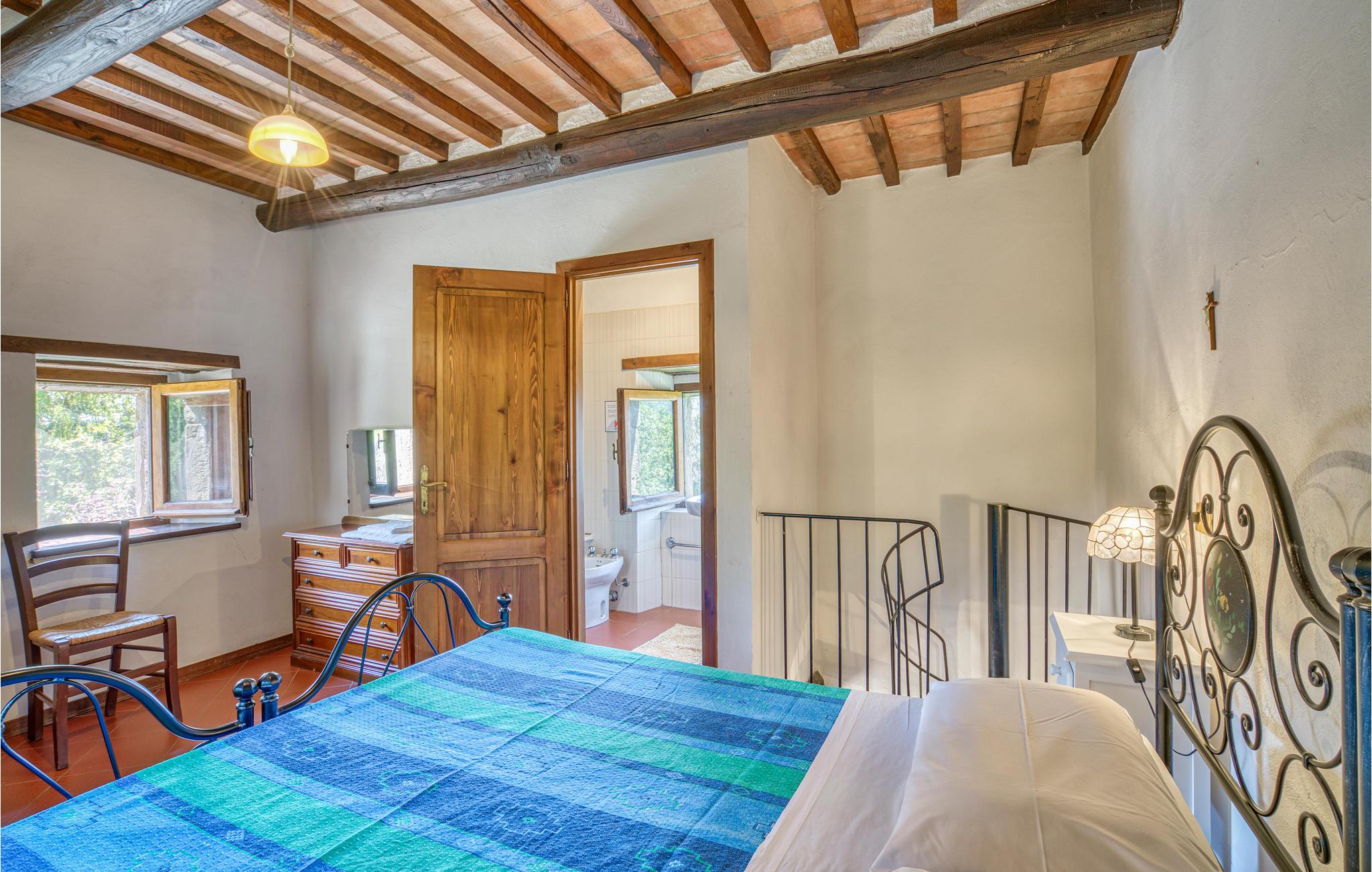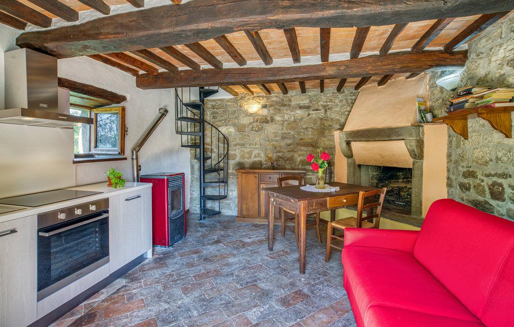 Lille feriehus med terrasse i bjergene over Cortona (18 km). Enkel og praktisk indretning, spisekøkken med åben pejs. Der er en pool med terrasse til sol og en plæne bag huset, som deles med gæsterne fra ITA262. Til grunden hører en fodboldbane, en grill, forskellige legeredskaber og bordfodbold. Fælles vaskemaskine og barneseng på forespørgsel. Ejerne driver en lille udendørs restaurant med taverne på stedet. Madlavningskursus på forespørgsel. Rolige og landlige omgivelser- perfekt til at slappe af og glemme alt hverdagsstress. Udflugtsmål: Lago Trasimeno 35 km, Arezzo 40 km og Città di Castello 28 km.