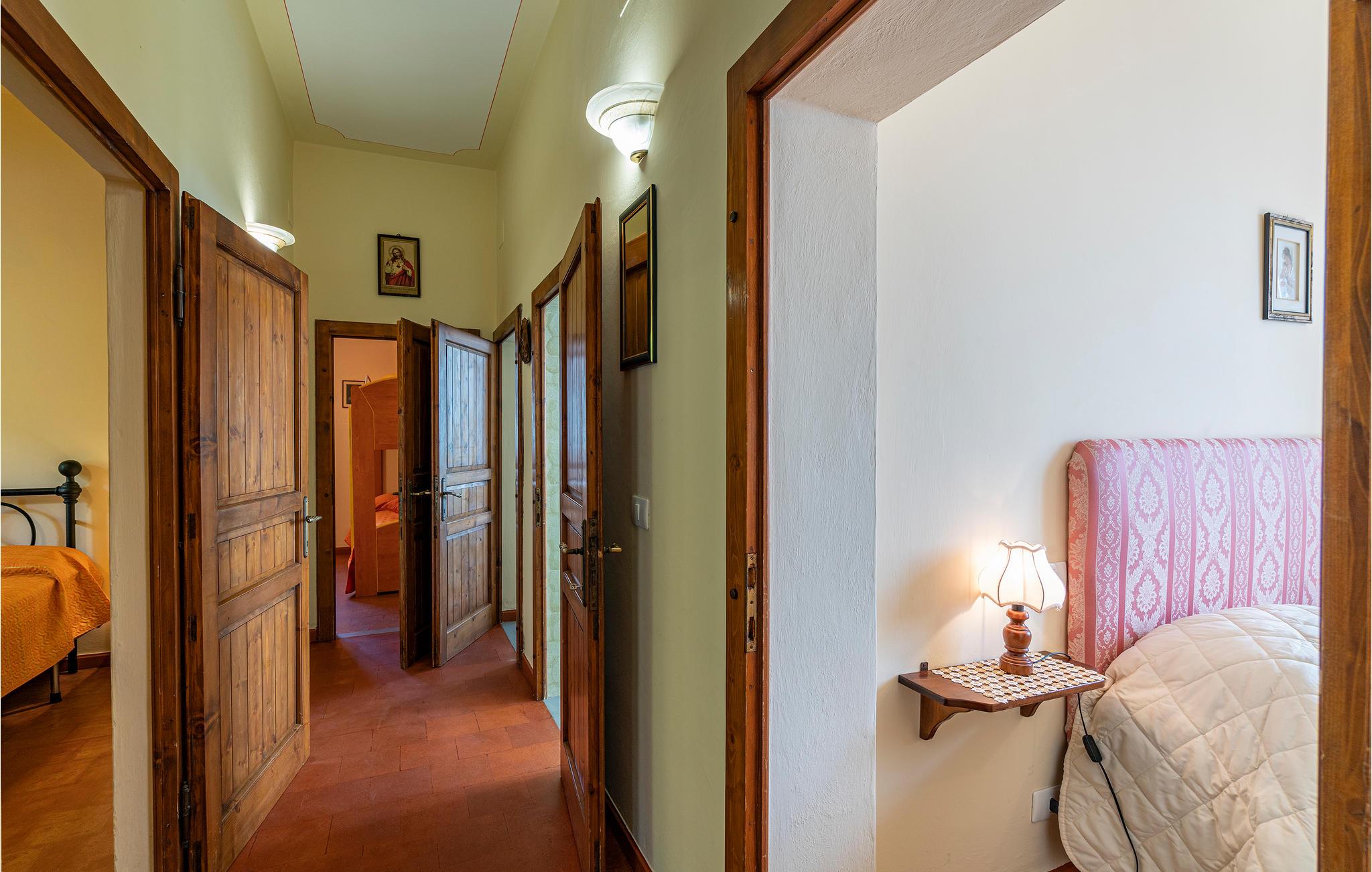 Ideelt til feriegæster, der vil være uforstyrret og søger ro i pagt med naturen. Huset er landligt indrettet, stue med pejs og udgang til altan med siddekrog. Til et af badeværelserne er der kun adgang via en udendørs trappe. Ved feriehuset er der en naturgrund med overdækket siddekrog, grill og pizzaovn, carport og soppebassin. Der er 35 km. til Arezzo, 25 km. til Trasimeno-søen og 9 km. til Cortona. Ikke-asfalteret indkørsel til huset.