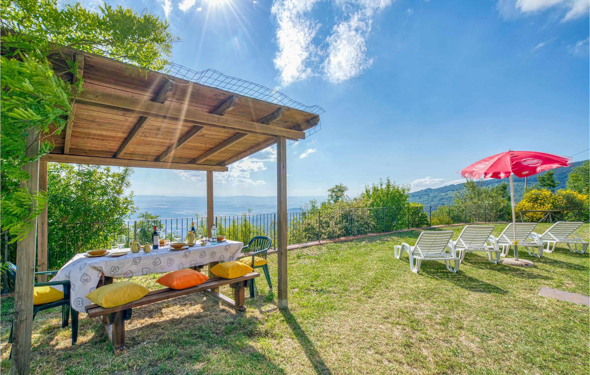 Alenestående feriehus med fantastisk udsigt over Chiana-dalen i 750 m. højde, der giver behagelige klimatiske betingelser i de varme sommermåneder.