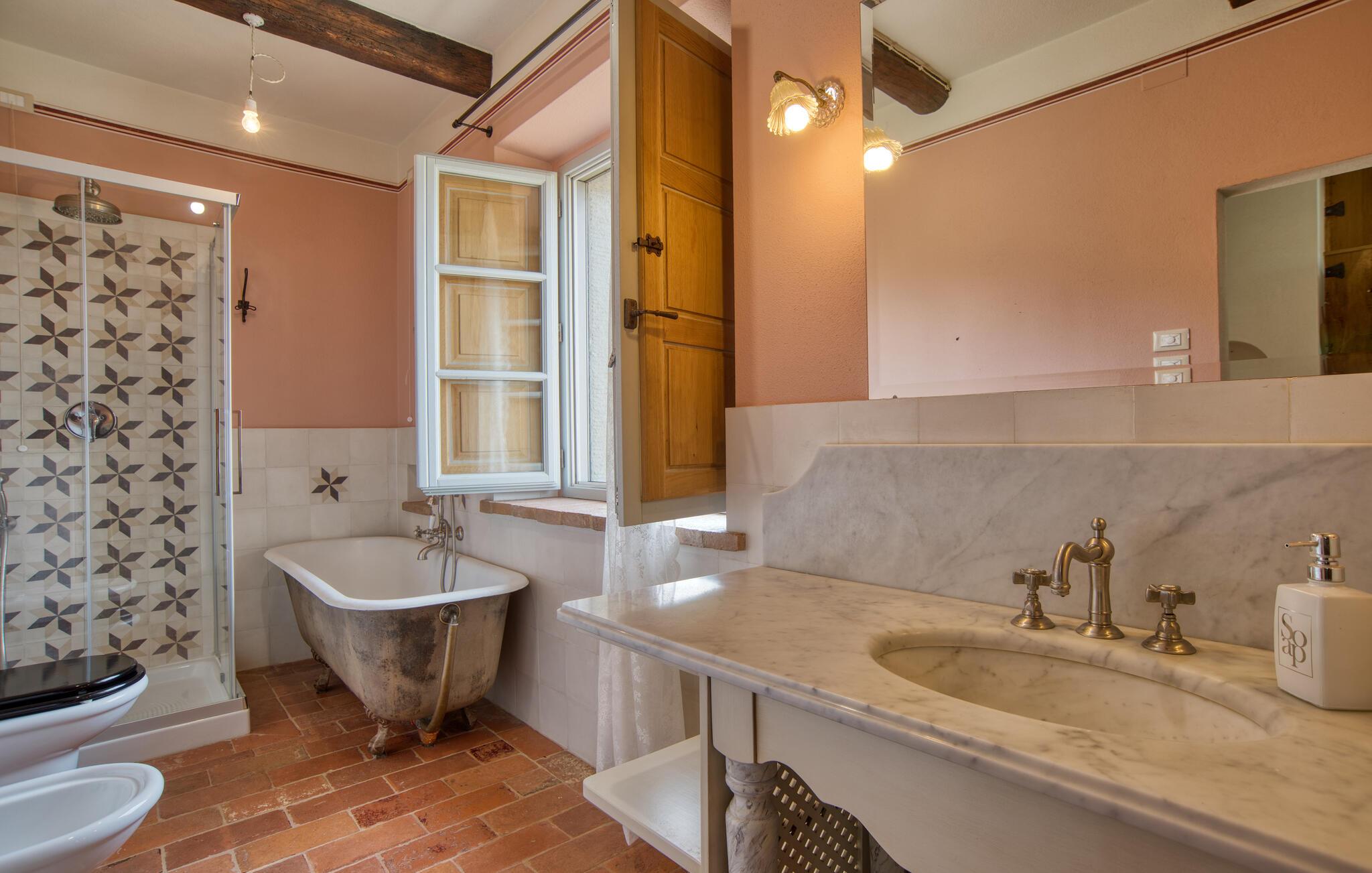 Dette rummelige feriehus i Cortona byder på dejlig udsigt over landskabet.