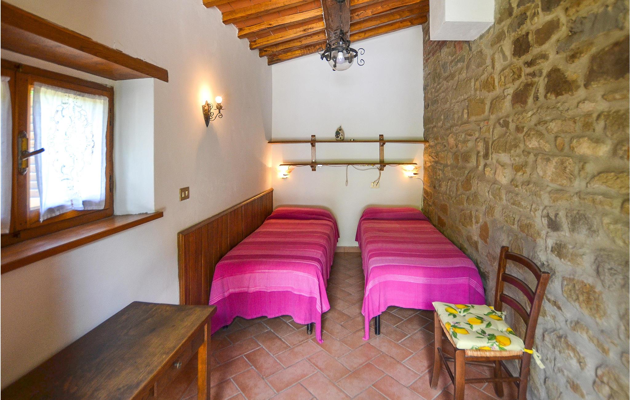 Velkommen til en dejlig lejlighed i dette smukke stenhus med pool og lukket have mellem Firenze og Rom. Huset imponerer med sine typiske italienske trælofter og synlige bjælker, murstensbuer, klassiske italienske møbler og rå stenvægge. Fremtryl en lækker middag i det rustikke køkken med spiseplads, mens resten af familien hygger sig ved pejsen. Køl af i poolen og slap af i træernes halvskygge. Glæd jer også til at nyde den storslåede udsigt til alle sider.