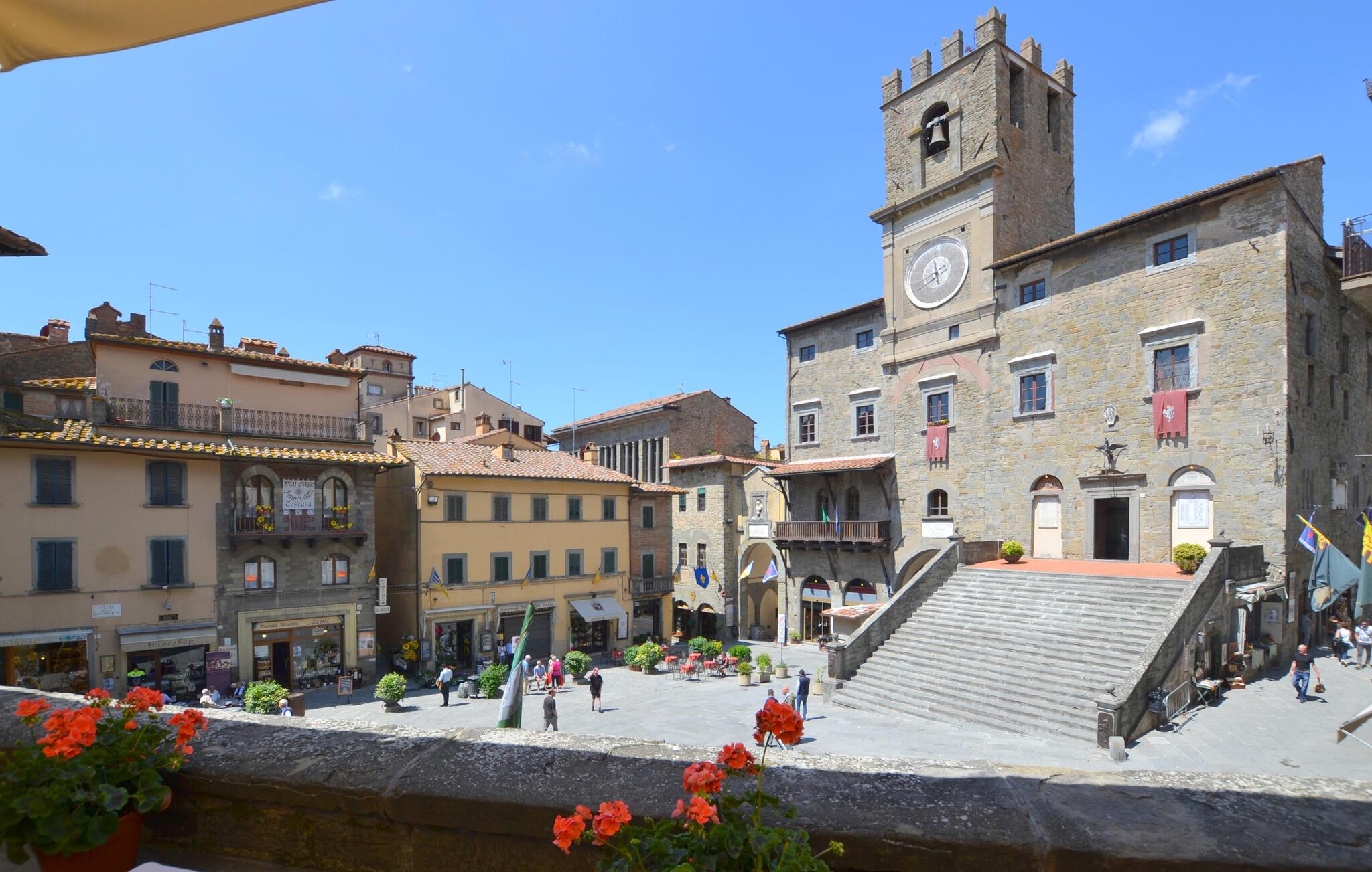 De maleriske omgivelser i Cortona lægger op til at tage på en række forskellige udforskningsture. Gå en tur gennem de smalle gader i den historiske bydel, opdag charmerende caféer og butikker eller besøg imponerende seværdigheder som kirken Santa Maria delle Grazie. For friluftsmennesker er vandreture gennem olivenlunde og vinmarker ideelle. Dagsture til Arezzo eller Trasimenosøen anbefales også. En perfekt kombination af kultur, natur og kulinariske lækkerier venter jer her.