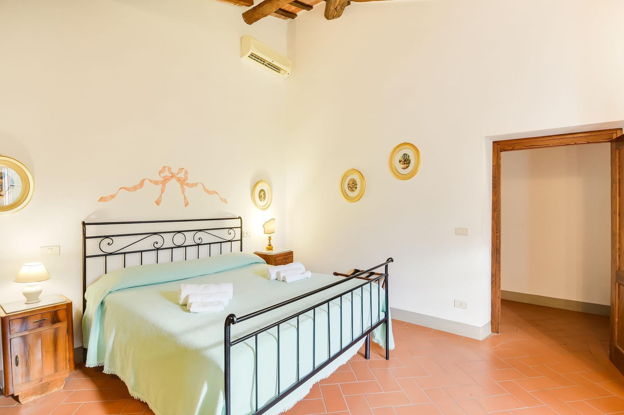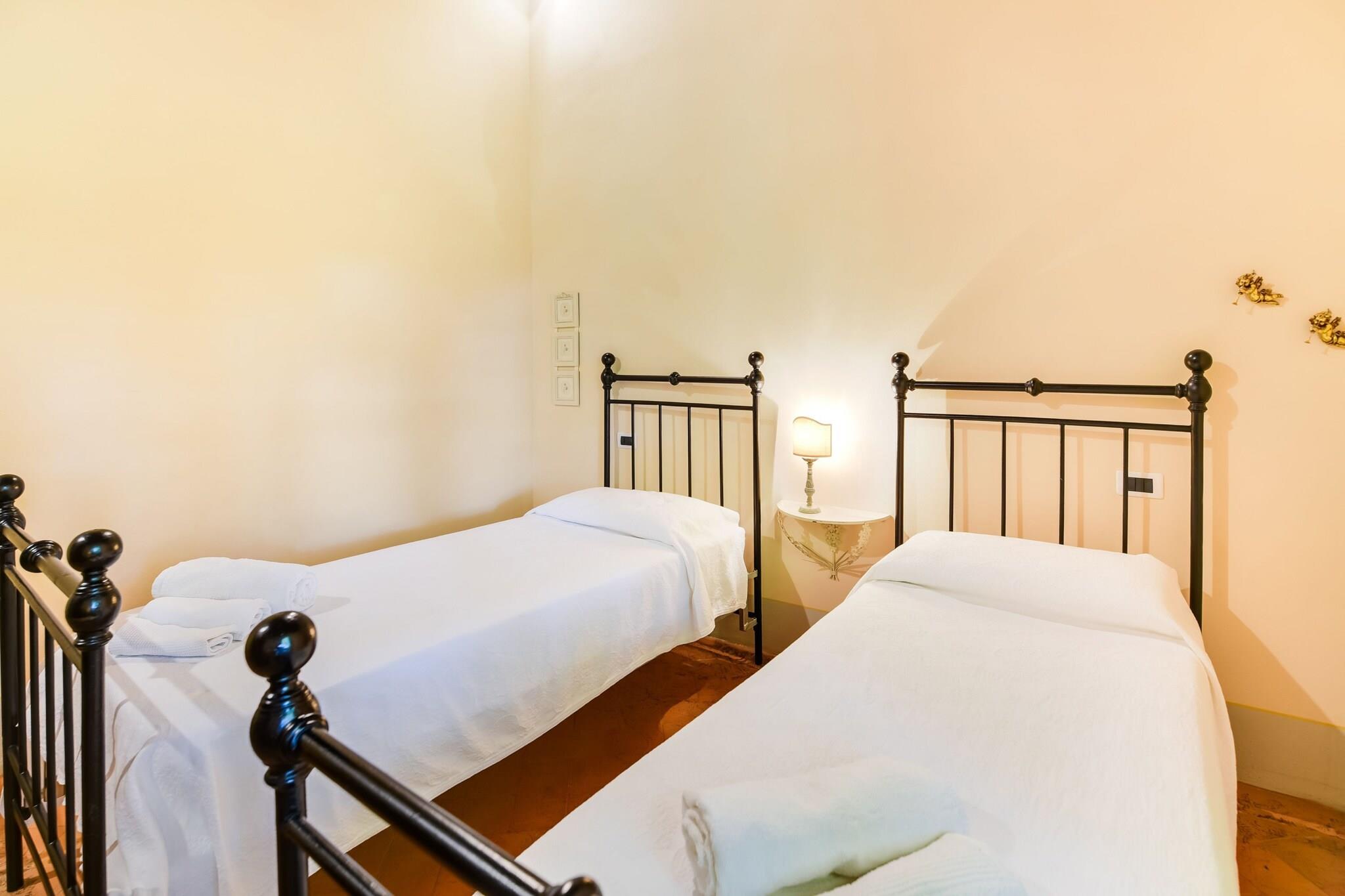Villa Pierina er en smuk ejendom nær Cortona, hvis udsigt over de blide bakker og monumenter skaber en umiskendelig skyline, der er synlig fra villaens have, hvilket skaber en unik glans for gæster, der vil have fornøjelsen af at tilbringe deres ferie her. Dateret tilbage til det attende århundrede og kærligt restaureret, kan villaen rumme 14 personer. Helt omgivet af grønt Villa Pierina er kendetegnet ved en elegant park fuld af ro og privatliv, indsat i et landskab af sjælden skønhed, præget af frodig vegetation og afgrøder af frugttræer, oliventræer og vinmarker. Swimmingpoolen, stor og panoramisk, er perfekt udsat for at nyde den toscanske sol og er udstyret med liggestole og paraplyer. Villa Pierina består af to bygninger: Hovedvillaen er opdelt i to lejligheder, hver med separat indgang og privat have, og er indrettet i klassisk toscansk stil med stor opmærksomhed på detaljer og komfort. Til din rådighed også et område med grill og pizza ovn sten til at lave mad og nyde dine yndlingsretter. Foran hovedvillaen ligger hytten med den tredje lejlighed, som også er indrettet med typisk toscansk smag og med egen indgang og have.