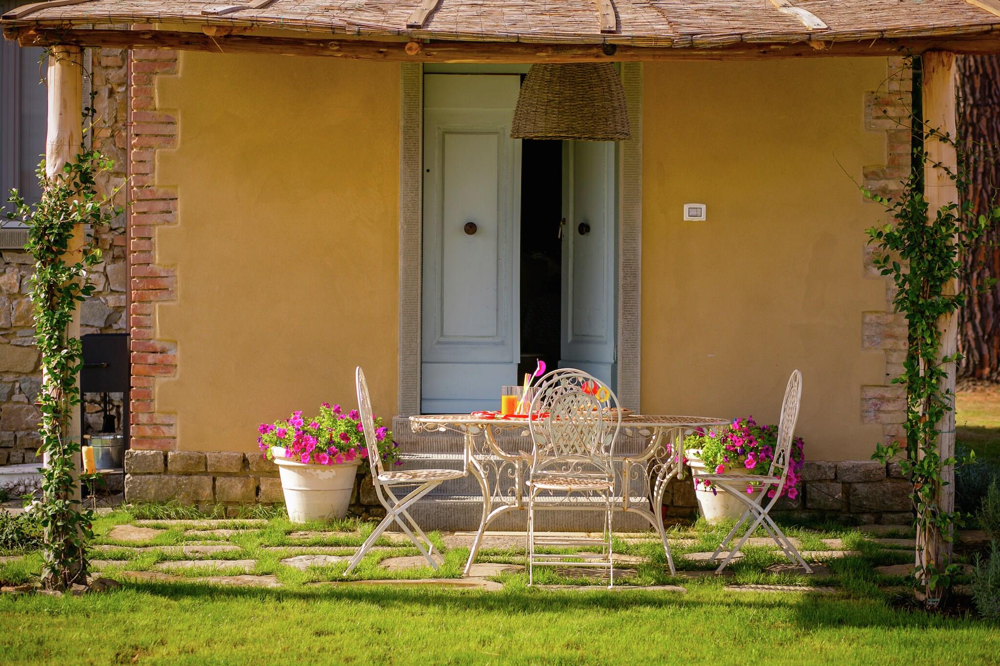 Villa Rosmarino er et smukt stenhus på det toscanske landskab, kun 8 km fra Cortona. Huset kan rumme 4 personer og har en privat pool og privat have. Det er et smukt og hyggeligt hjem indrettet i en moderne land-chic stil. Kombinationen af farve, stil og detaljer giver huset en meget speciel atmosfære. Den overdækkede terrasse på forsiden af villaen er et ideelt sted at spise og nyde en smuk solnedgang. Fra terrassen kan du overse haven og poolen og bakkerne udenfor. Det er en ideel ferie at besøge de store byer i Toscana og Umbrien som Cortona, Tuoro sul Trasimeno, Castiglione del Lago, Montepulciano, Siena, Arezzo og Rapolano Terme.