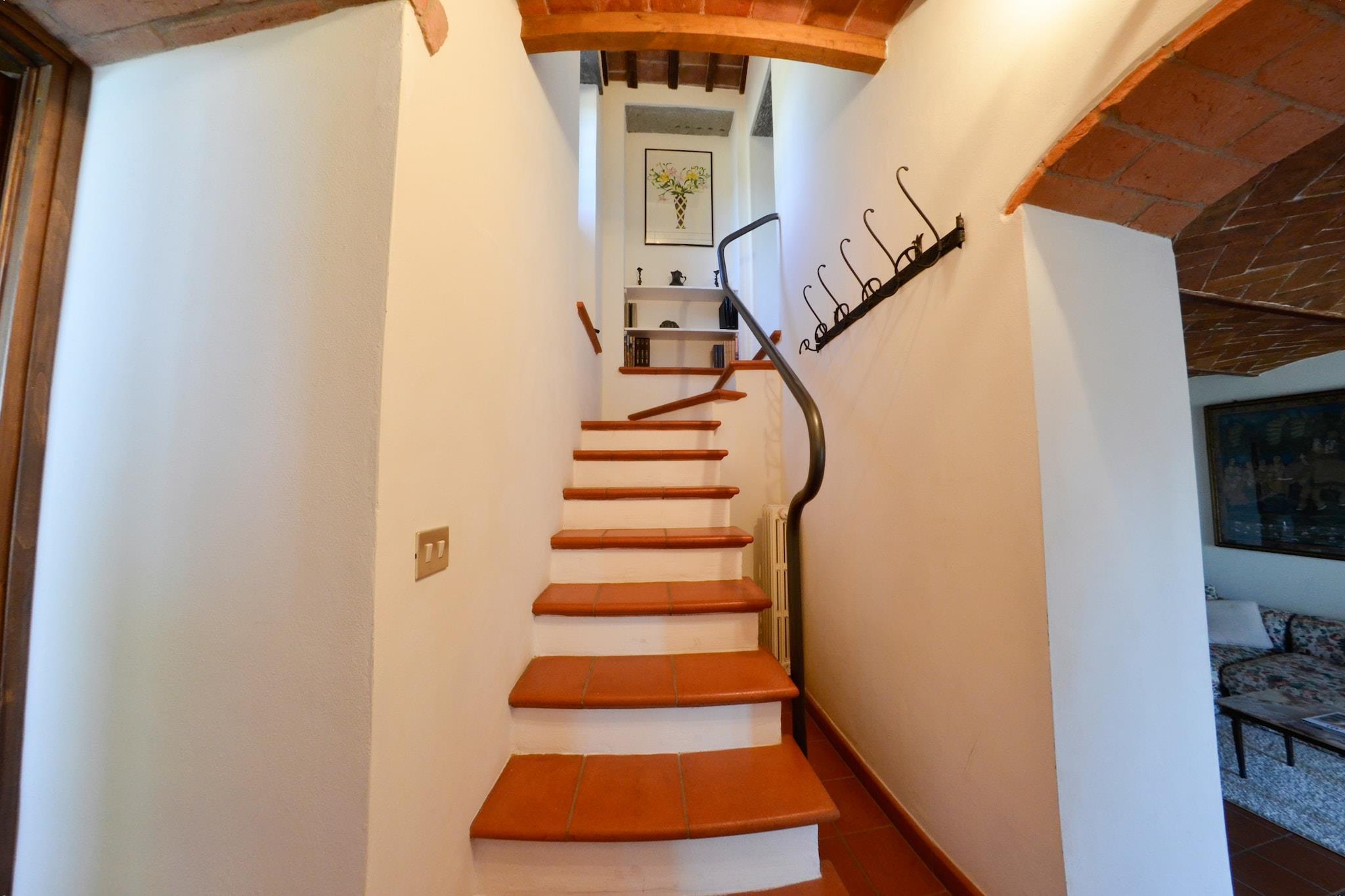 Beliggende i Cortona er en rustik bondegård med 5 soveværelser, der kan rumme 9 personer. Udstyret med swimmingpool og sauna og omgivet af smukke bakker giver dette hjem en fantastisk udsigt over de omkringliggende vinmarker og olivenlunde. det er perfekt til store familier på udkig efter en rolig ferie midt i naturen. Feriehuset er et ideelt udgangspunkt for at besøge Trasimenosøen og byerne Cortona, Arezzo, Montepulciano, Pienza og Perugia. Der er også stedet for et historisk romersk slag i nærheden. Du kan finde restauranter kun 2 km fra huset. Huset har en have med møbler og en terrasse med grill. Den er børnevenlig og har en børneseng. Det tilbyder sengelinned og håndklæder. Det er tilladt at medbringe 1 kæledyr. Den nærmeste lufthavn er Perugia San Francesco d'Assisi - Umbria Internationale Lufthavn, 60 km derfra.