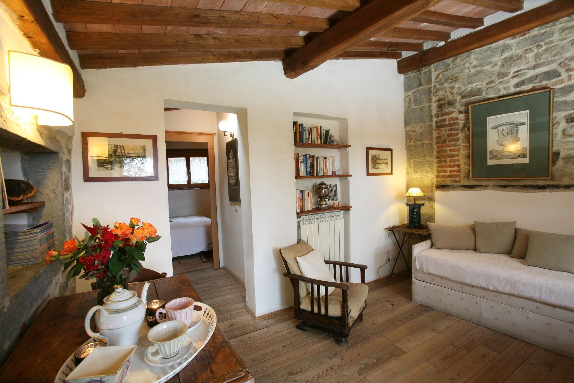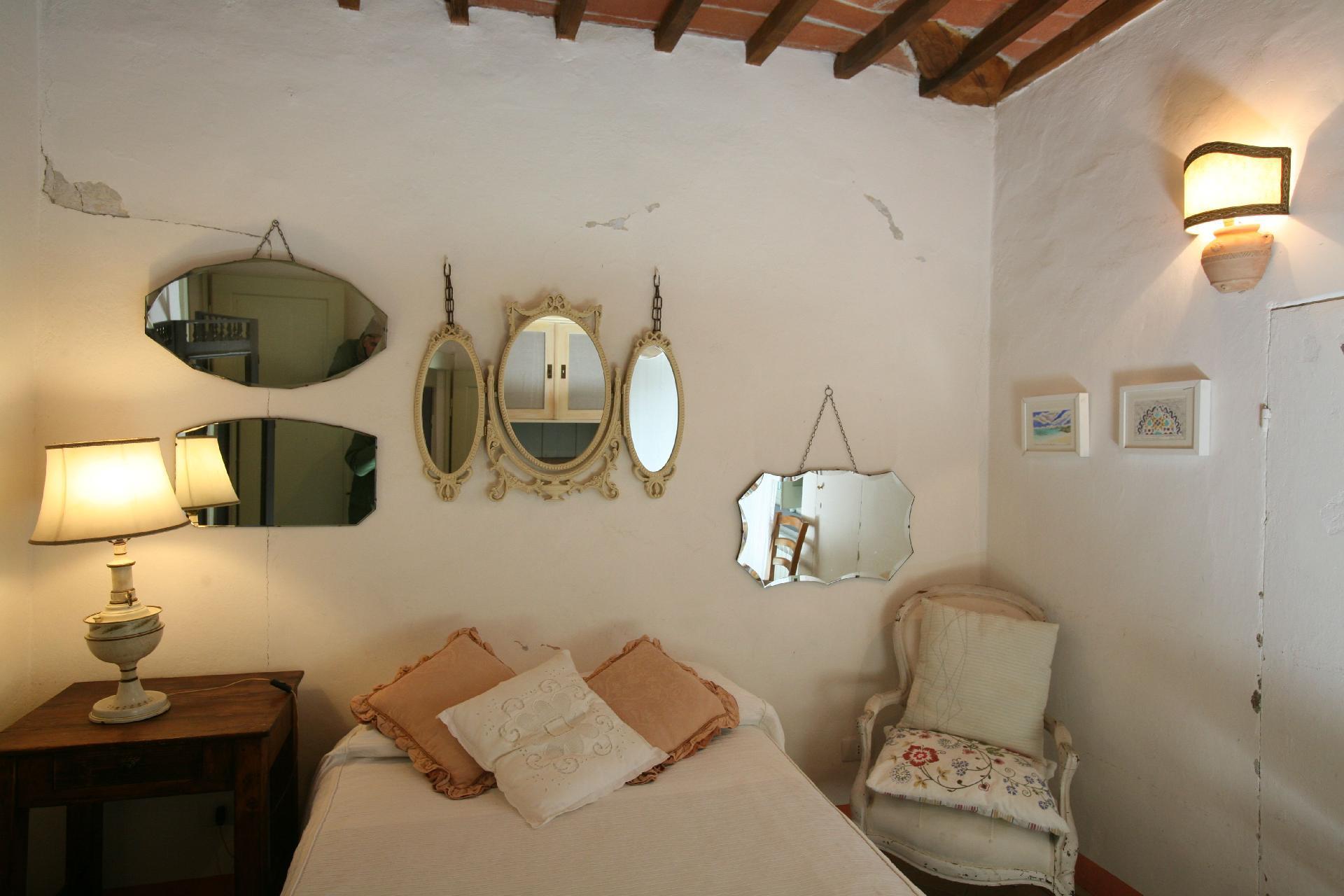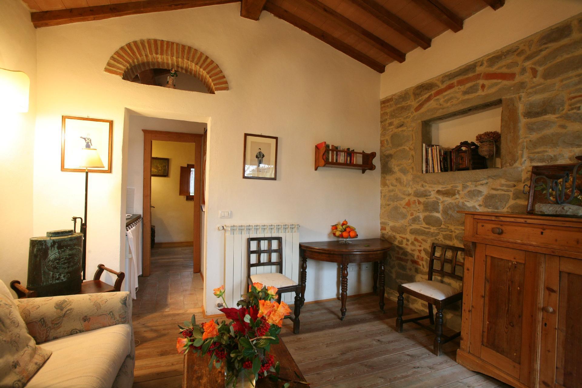 From the entrance door, on the left-hand side there is access to the sitting room with fireplace while on the right-hand side there is access to the Sala della Pastaia whose name derives from an old piece of furniture which today contains various objects but which was used to dry pasta! Today it is a large and spacious dining room where guests can spend moments of convivial serenity Also on the ground floor is a new and comfortable kitchen equipped with everything a good chef would wish to have as tools of the trade.A staircase made of pietra serena, typical of the Cortona area, leads to the first floor where the sleeping area is accessed. Each room has been created following a different theme that differentiates them from one another. At the back of the house, surrounded by greenery and olive trees, is the private swimming pool. Sheltered from prying eyes and not visible from the entrance, the particular position chosen guarantees plenty of sunshine, peace and intimacy. The flooring used for the exterior is teak, which does not heat up in the sun and allows you to walk barefoot or sit on the edge or on the ground without the danger of getting burnt.