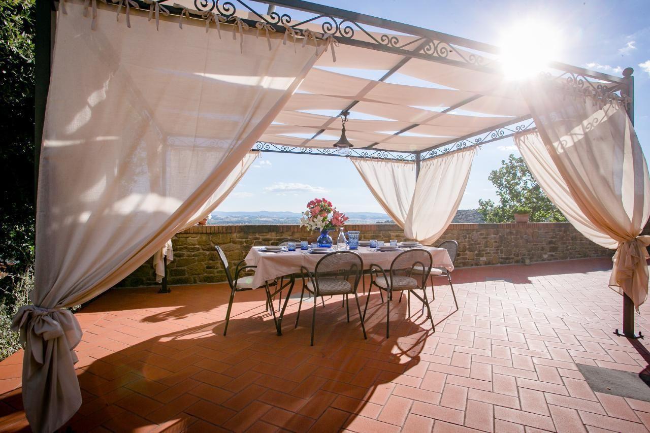 From Corte della Luna and its splendid hilltop position, guests can join a privileged front-row seat on the underlying Valdichiana valley. Surrounded by gentle olive tree hills, Corte della Luna offers a spectacular scenario on Cortona: the Etruscan city. The relaxing pool, located on a lower level, and the wide terrace furnished meticulously, ensure the perfect places for guests that want to chill out under the warm summer sun. Both can comfortably host up to 10 people gathering beautiful convivial moments altogether, even during chillier autumn and winter evenings thanks to the internal welcoming living room: in fact this charming Tuscan corner is splendid all the year round. The Villa develops into two opposite sides linked by a luminous central living room. On the ground floor guests can join the living area with its sitting room, a bathroom and a spacious fully equipped kitchen. Thanks to the different accesses, guests can easily move from the indoors to the outdoors and the spectacular terrace and the gorgeous internal courtyard with loggia. An elegant staircase leads to the sleeping area upstairs composed by three double bedrooms with en-suite bathrooms with shower box and a twin bedroom adjacent to a full bathroom equipped with whirlpool tub. Design furniture and the harmonic interior house painting were accurately chosen by owners in order to give a touch of warmth and hospitality. This beautiful property, located really close to the town centre, is the perfect spot for a holiday in the pursuit of harmony and relax. Within a few minutes driving you can reach the closer Umbrian borders with its historical amenities and well equipped Lake Trasimeno's beaches that give tourists the possibility to visit its islands and enjoy recreational fishing experiences.Short descriptionOther : Non-smoking houseShort description 1Number of kitchens : 1SurroundingNearby sports facilities : Bike tours, Golf course, Indoor riding arena, Mountainbiking, Riding possibilities, TennisRental Facilities : Bicycle rental serviceGarden and outdoorGarden facilities : GrillOn-site leisure facilities : Outdoor swimming pool exclusive use, Swimming pool