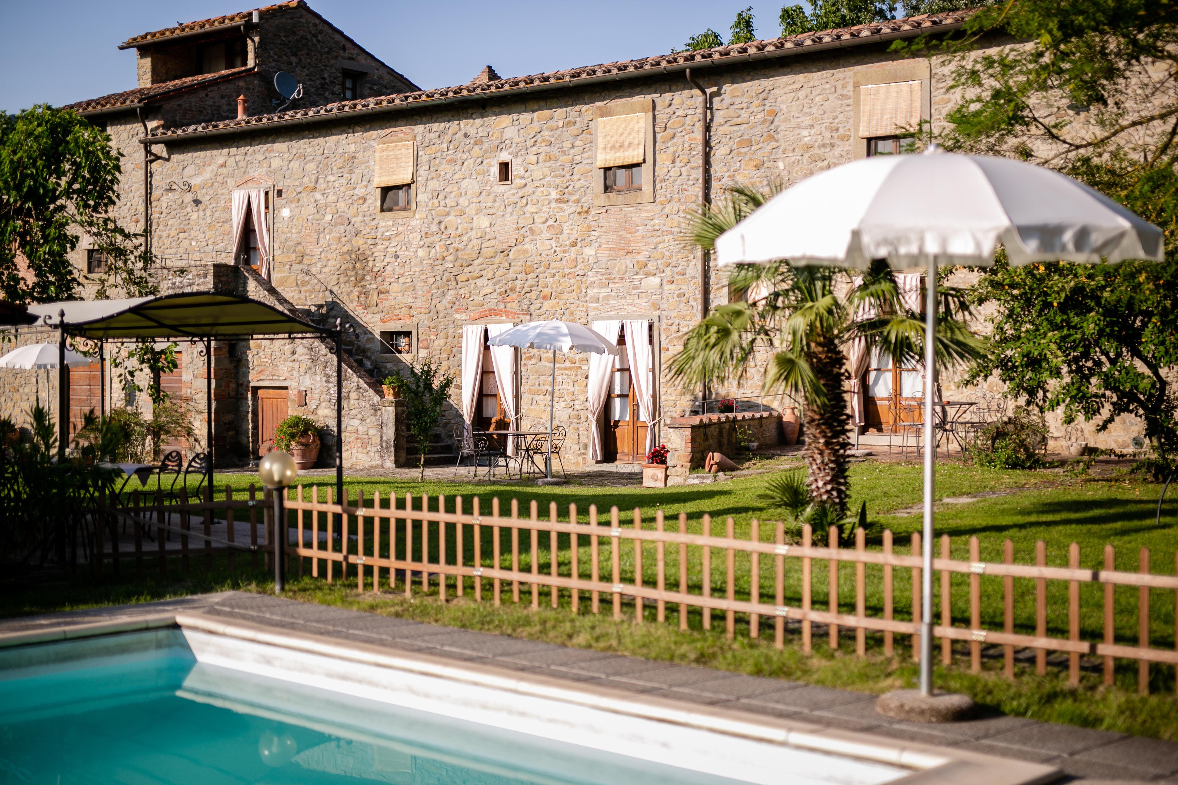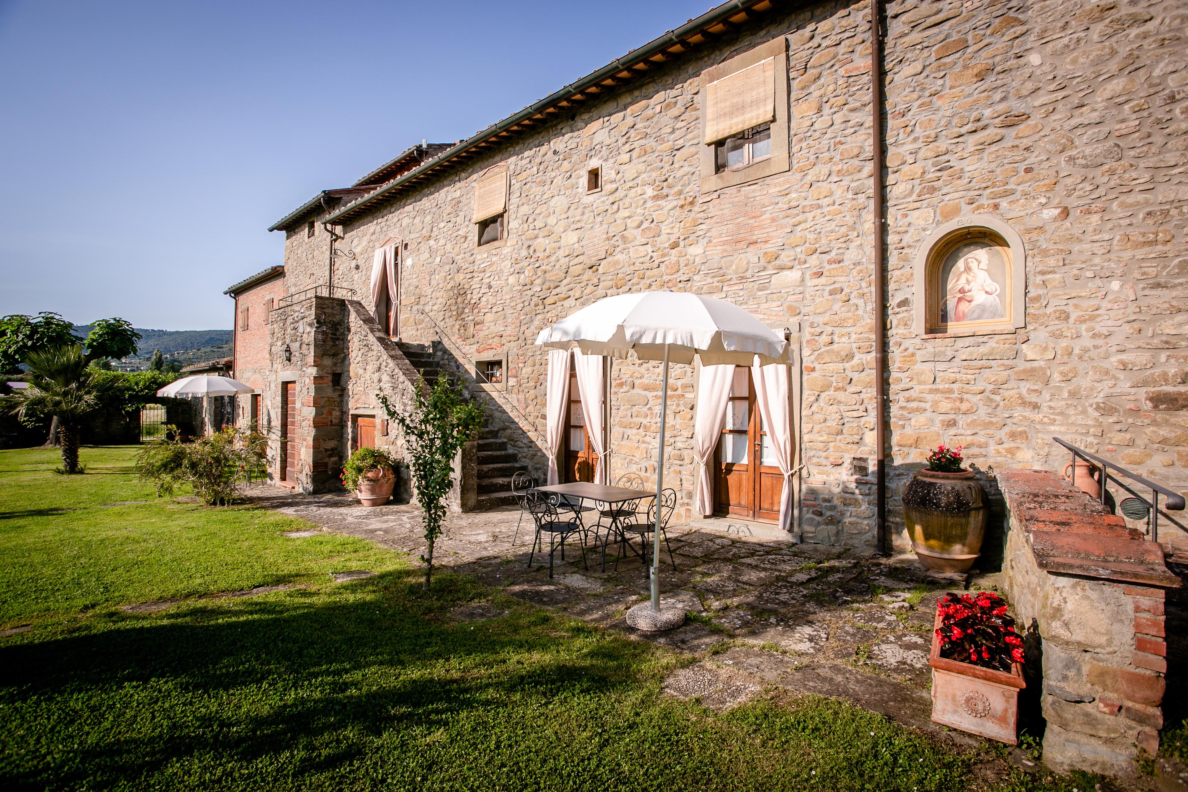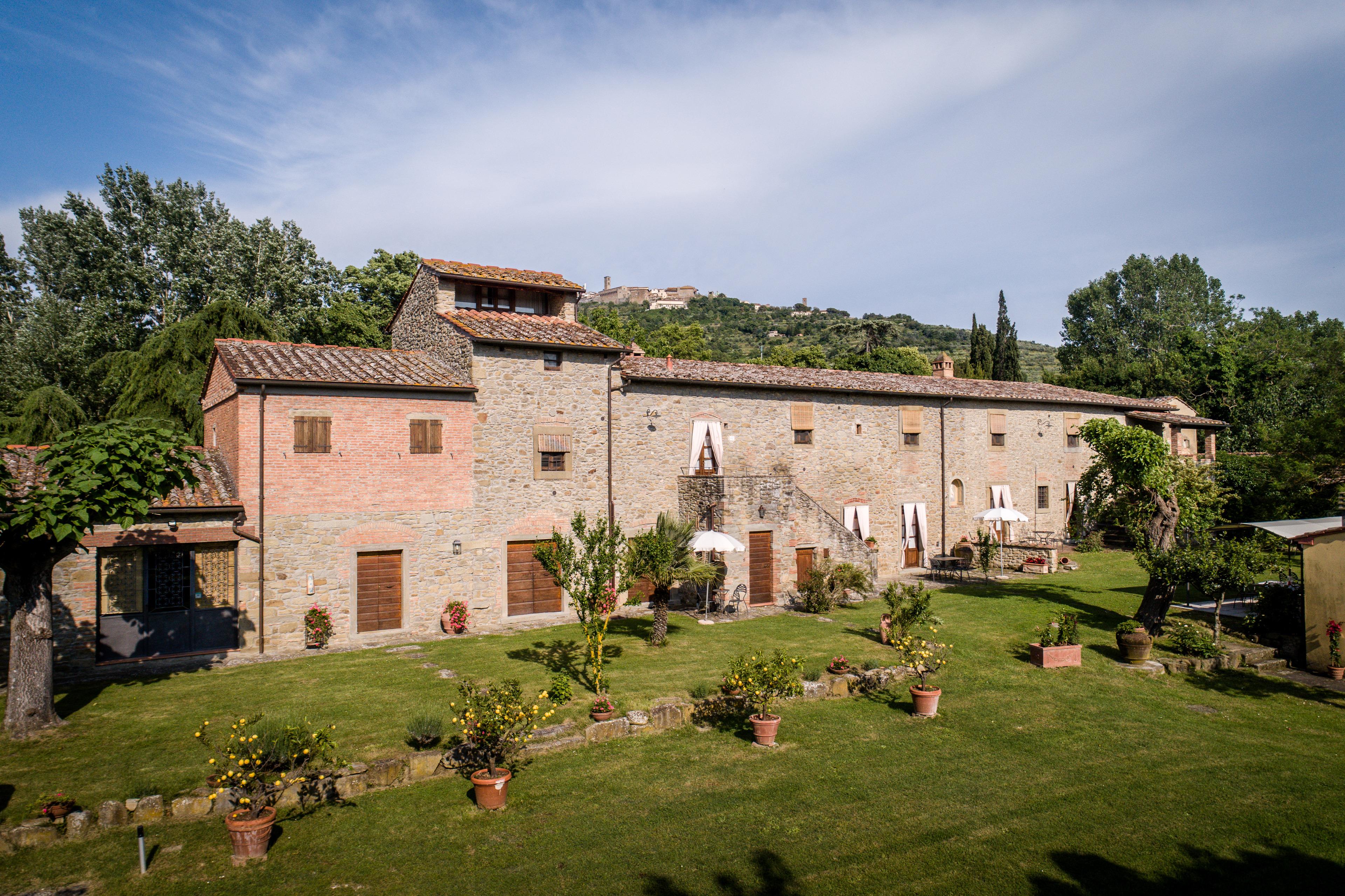 Die Villa stammt aus dem Jahr 1500 und wurde im Laufe der Jahrhunderte nach den raffiniertesten und konservativsten Regeln der ländlichen Tradition von Cortona und der Toskana umgebaut. Das Anwesen ist ganz aus Stein und Ziegeln und ist auf zwei Ebenen durch eine Außentreppe, auch in Stein verbunden. Die Umgebung ist geprägt von Feldern mit Weizen und Sonnenblumen angebaut, mit Landstraßen begehbar oder für erstaunliche Fahrradtouren für entspannende Momente in den Farben und Düften der toskanischen Landschaft eingetaucht.
