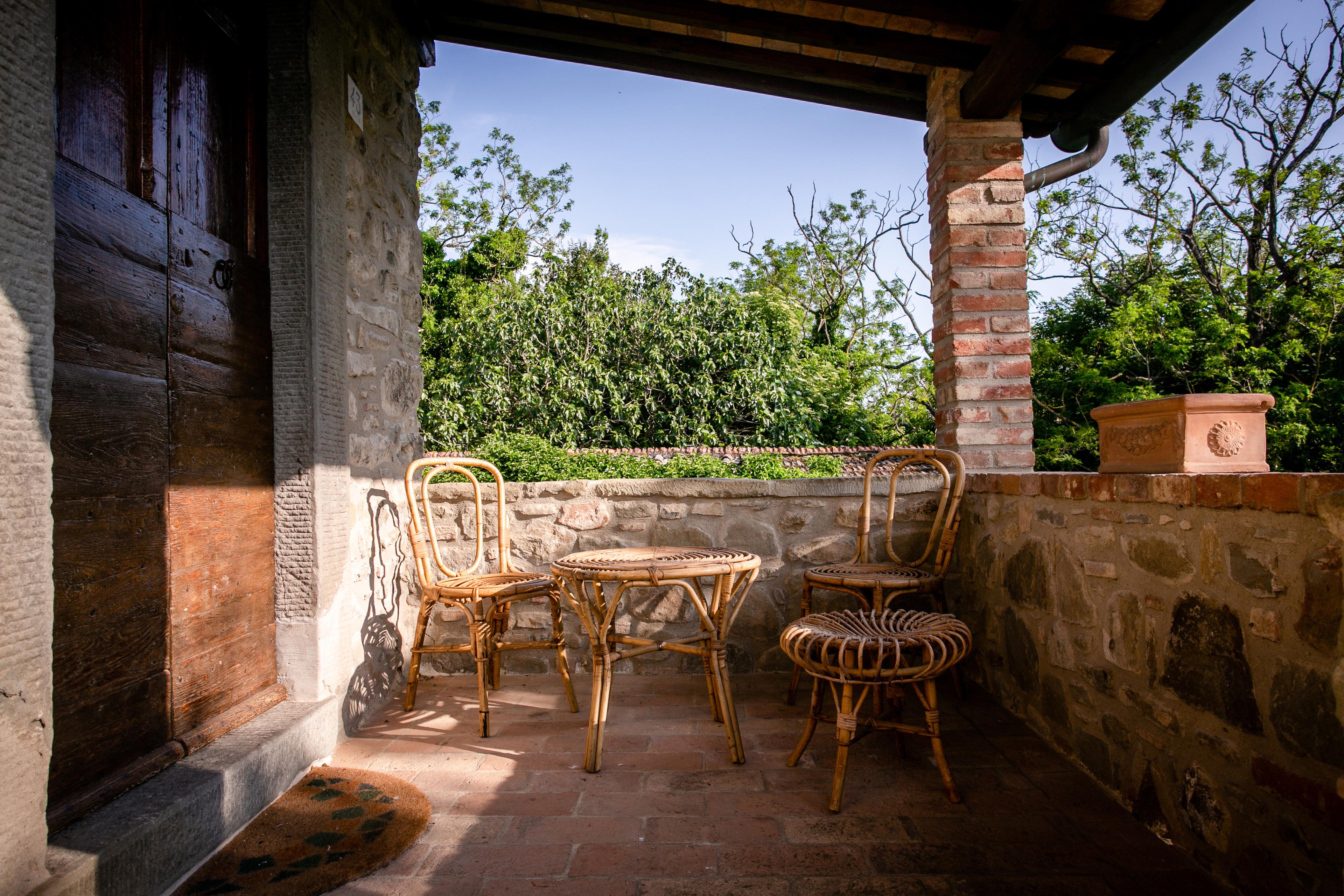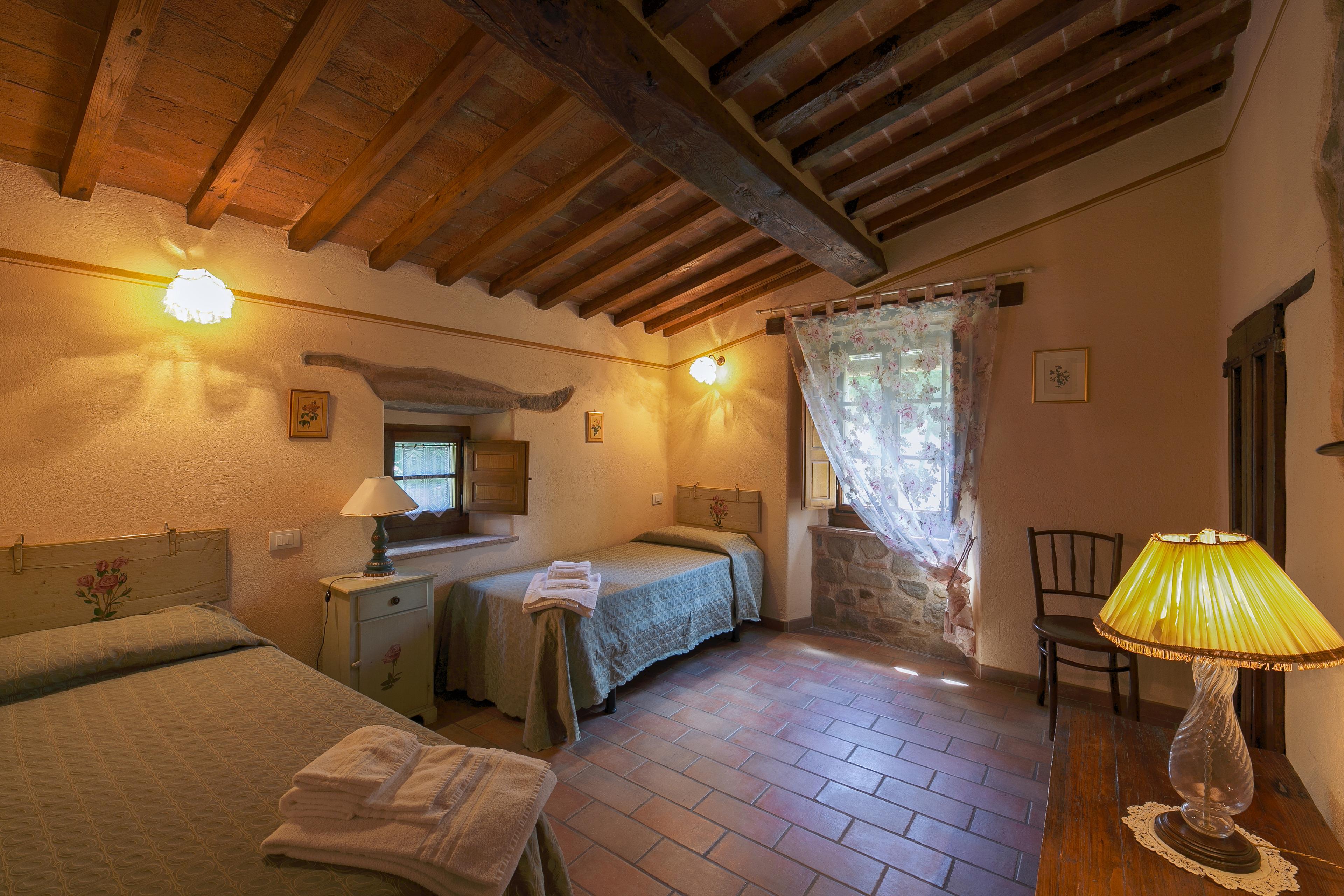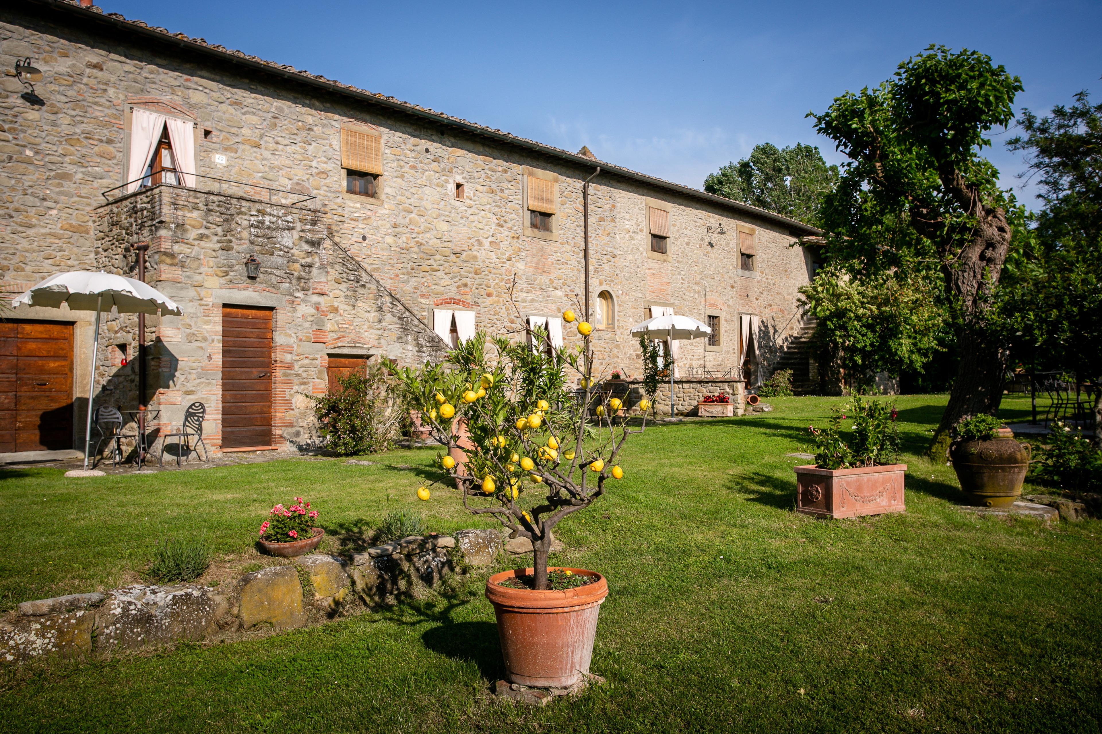 Die Villa stammt aus dem Jahr 1500 und wurde im Laufe der Jahrhunderte nach den raffiniertesten und konservativsten Regeln der ländlichen Tradition von Cortona und der Toskana umgebaut. Das Anwesen ist ganz aus Stein und Ziegeln und ist auf zwei Ebenen durch eine Außentreppe, auch in Stein verbunden. Die Umgebung ist geprägt von Feldern mit Weizen und Sonnenblumen angebaut, mit Landstraßen begehbar oder für erstaunliche Fahrradtouren für entspannende Momente in den Farben und Düften der toskanischen Landschaft eingetaucht.