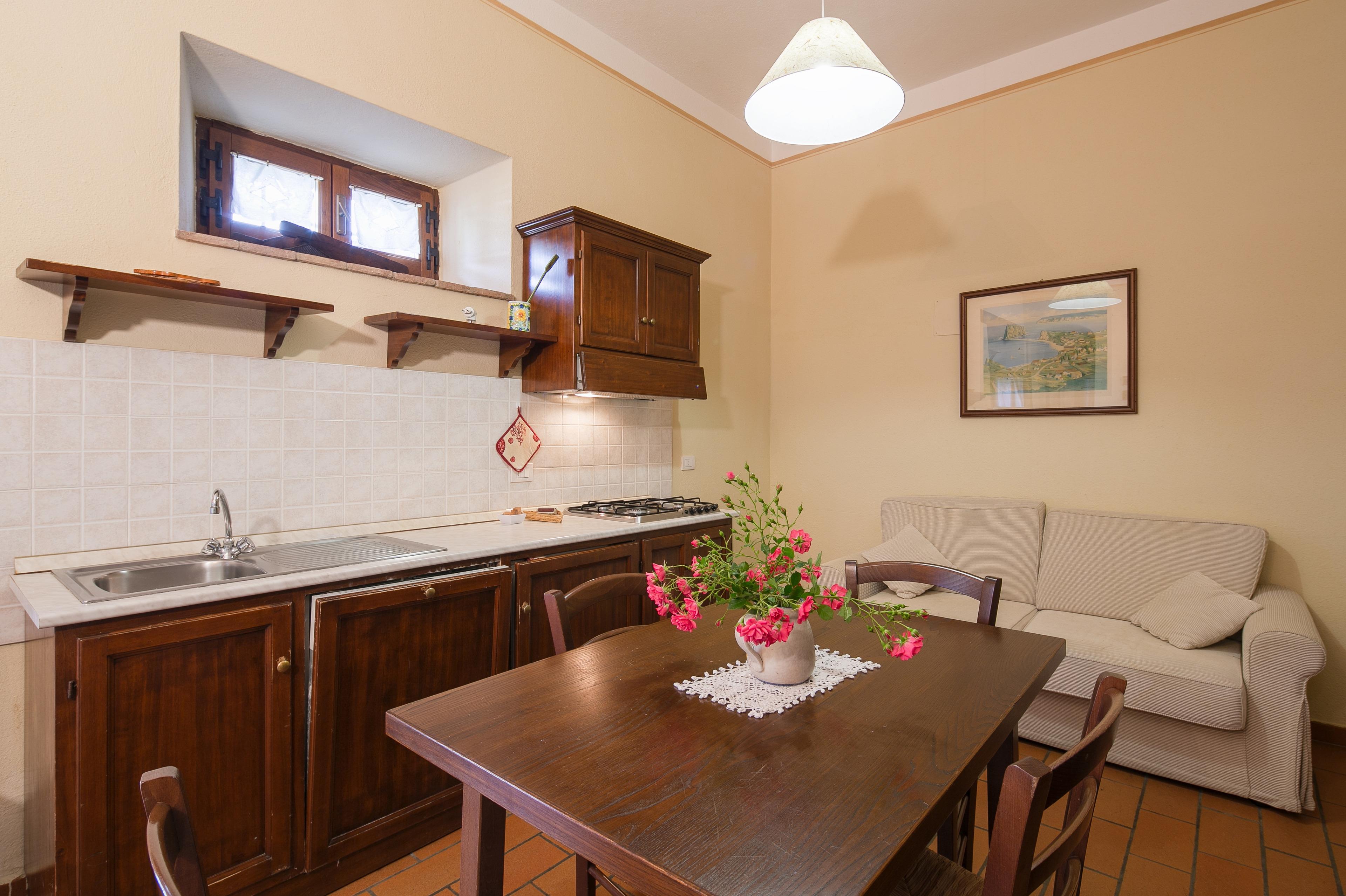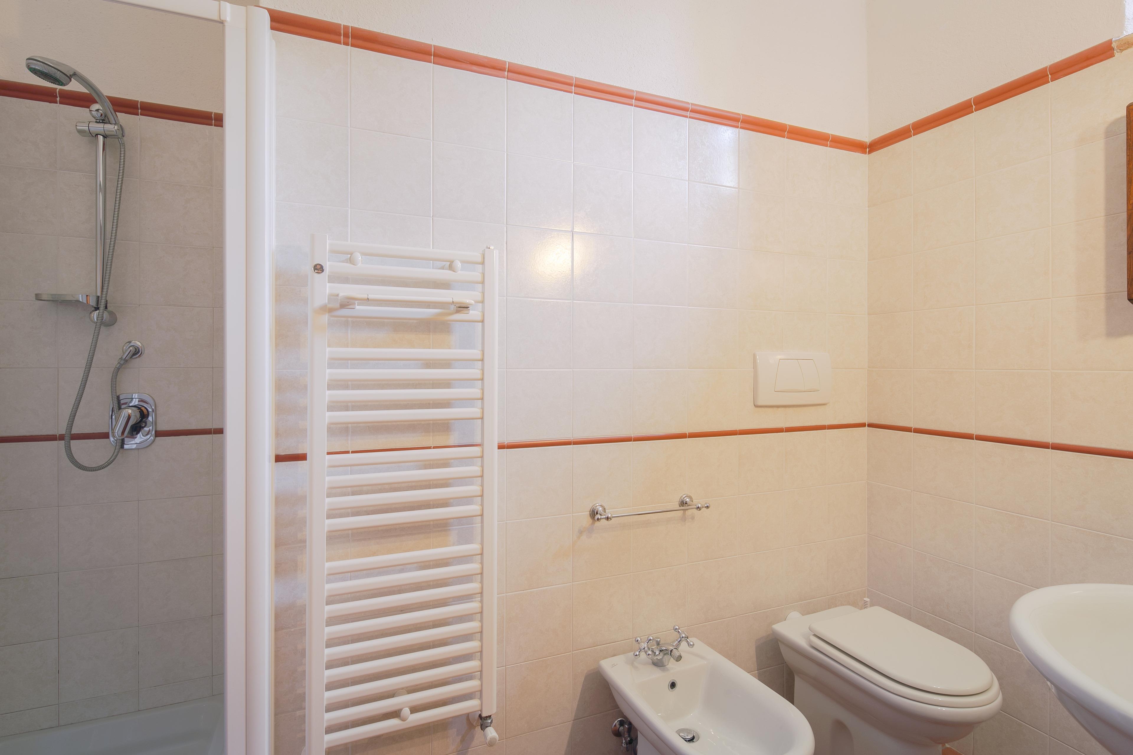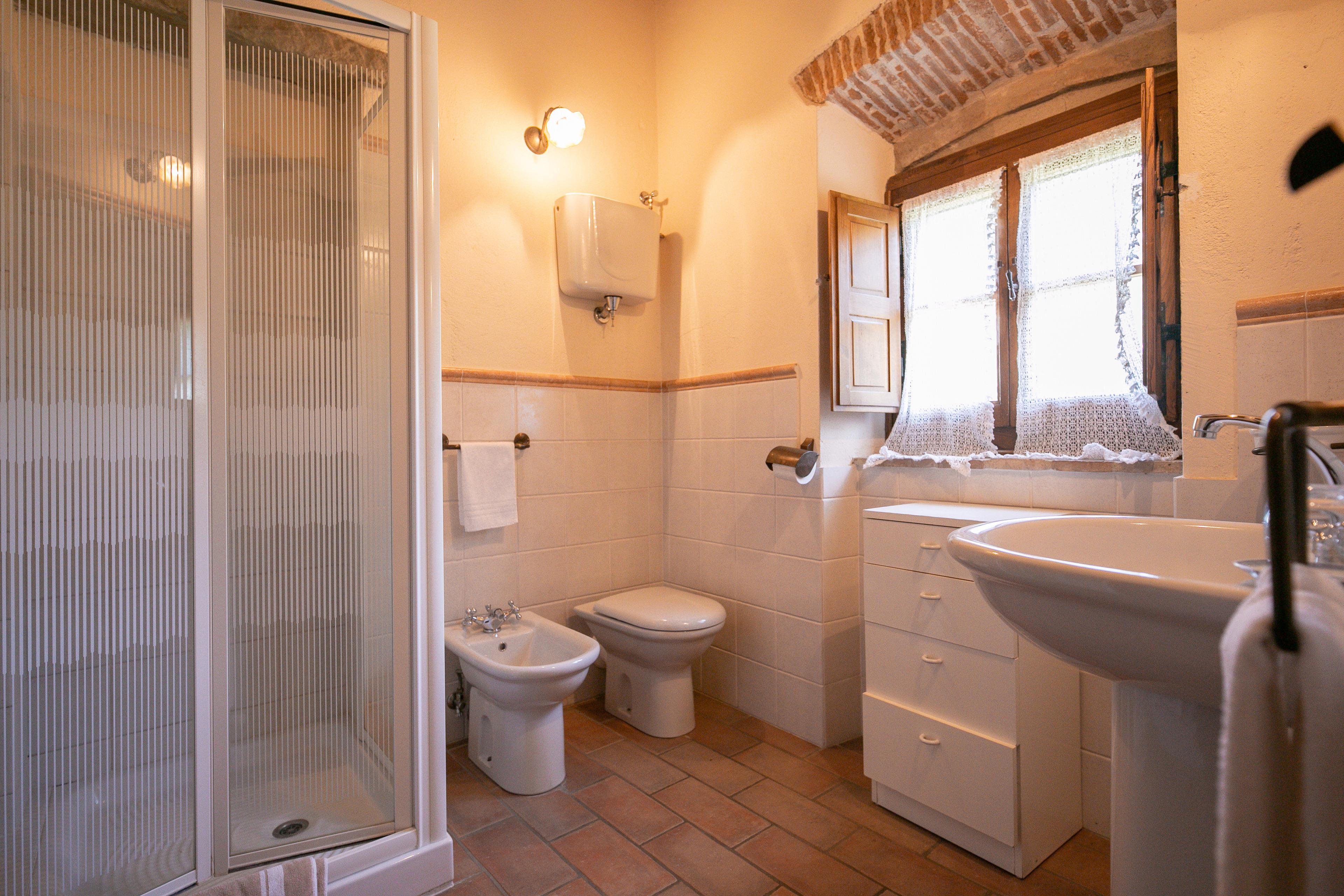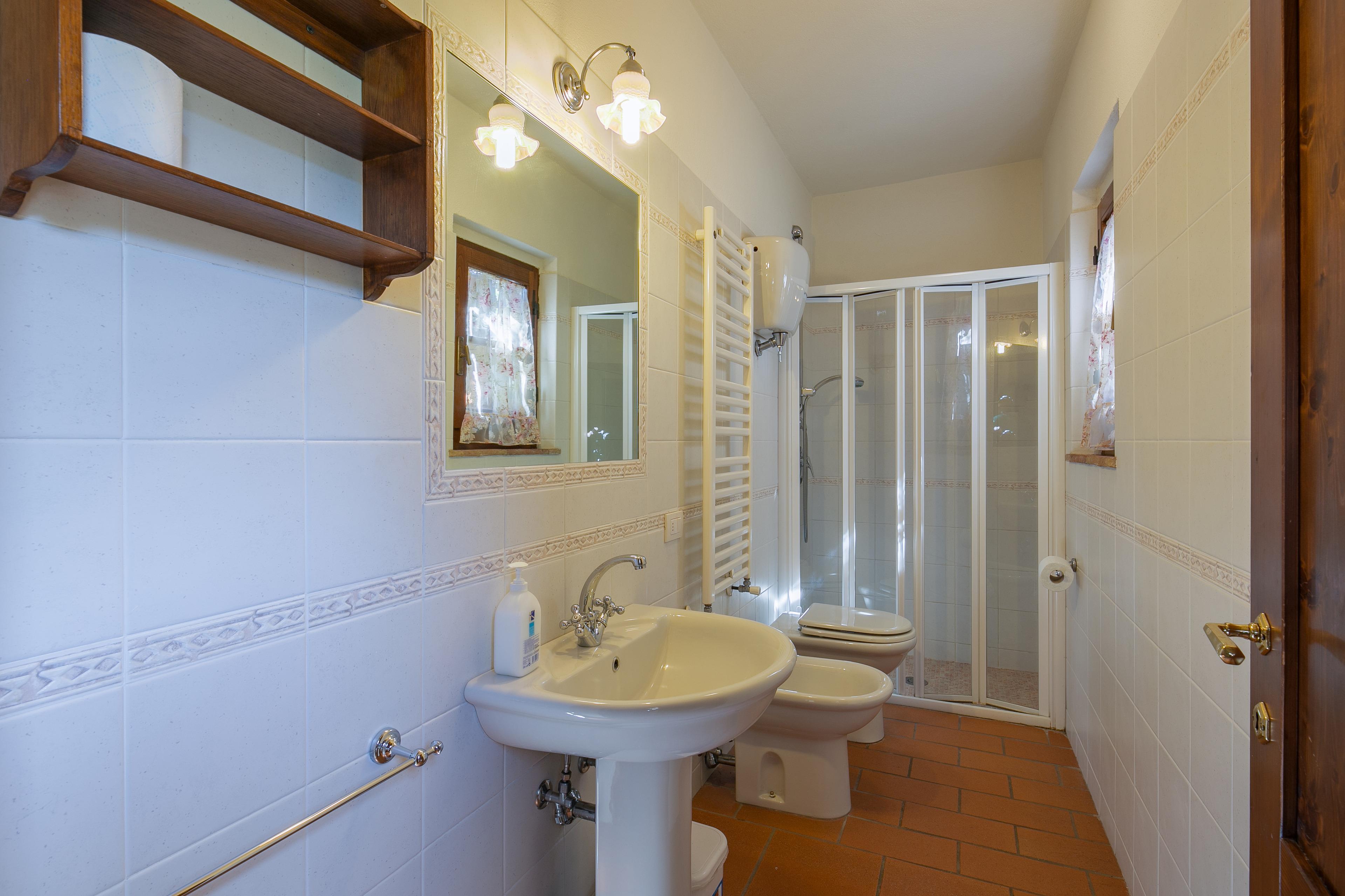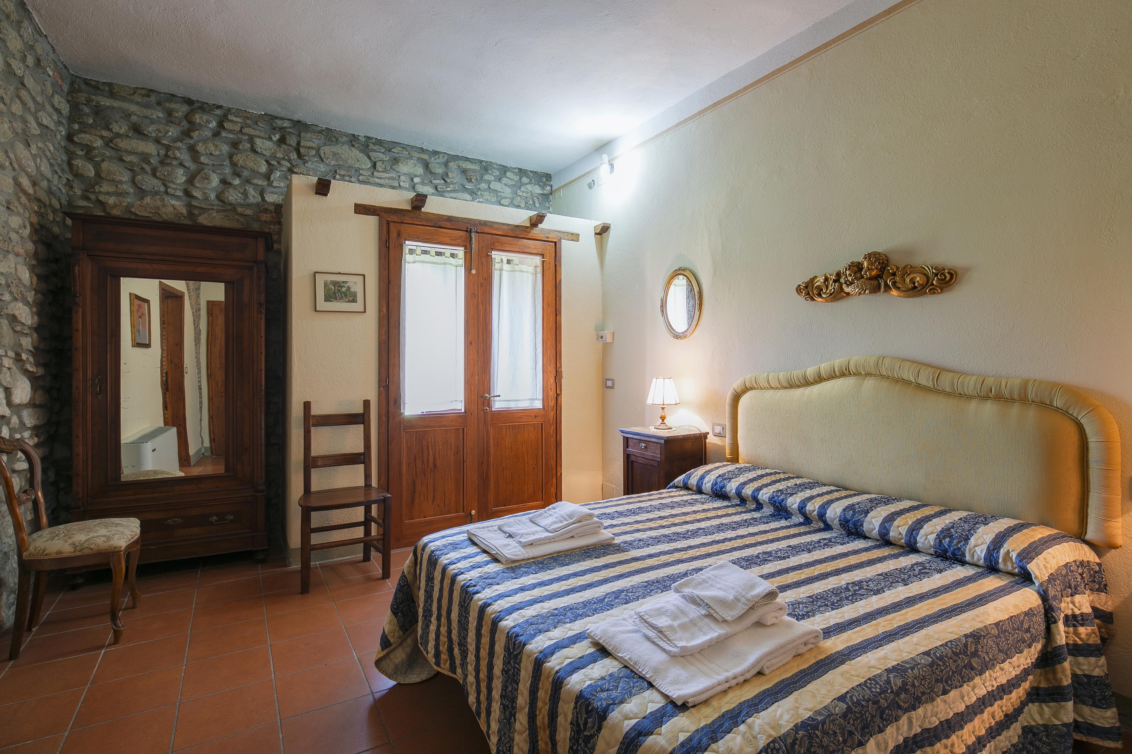 Die Innenräume der Villa il Gelso sind im toskanischen Stil gehalten: Terrakottaböden und freiliegende Holzbalken charakterisieren die Umgebung und geben uns einen Einblick in die toskanische Architektur. Die Villa ist groß (etwa 400 Quadratmeter insgesamt) und auf zwei Ebenen durch eine Außentreppe verbunden unterteilt. Sie kann bequem 16 Personen beherbergen und verfügt über Hochstühle und Kinderbetten (auch auf Anfrage). Ursprünglich in Appartements aufgeteilt, wird die Villa il Gelso heute als exklusiver Wohnblock vermietet, behält aber eine Unterteilung bei, die es sowohl Familien als auch Freundesgruppen ermöglicht, einen gemeinsamen Aufenthalt zu verbringen und gleichzeitig den verschiedenen Gruppen ihre Unabhängigkeit zu lassen. Sie verfügt über 8 Schlafzimmer und 8 Bäder und eine große, voll ausgestattete Küche im Erdgeschoss mit Wohnzimmer, das zum Treffpunkt der ganzen Gruppe im Namen der Geselligkeit wird.