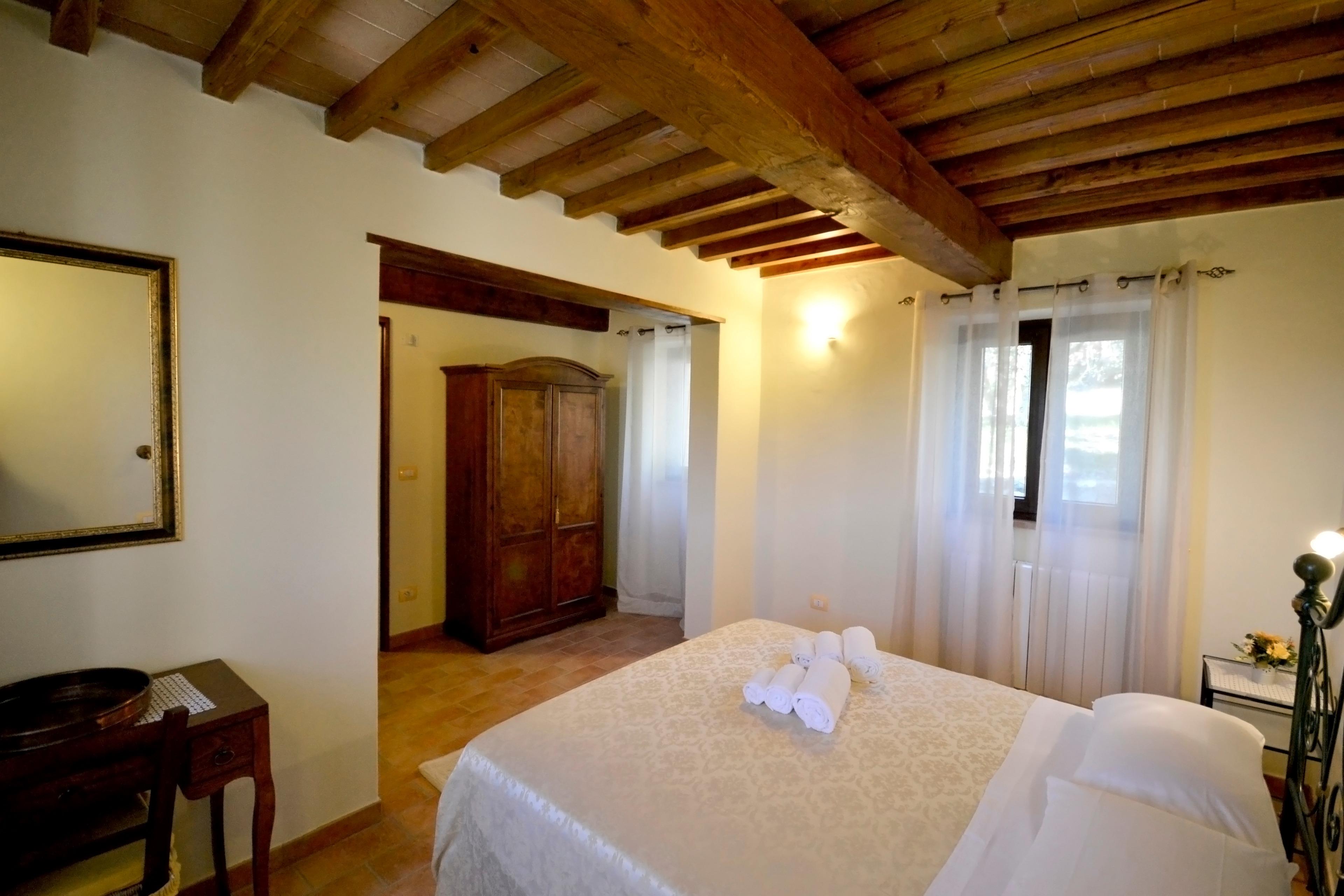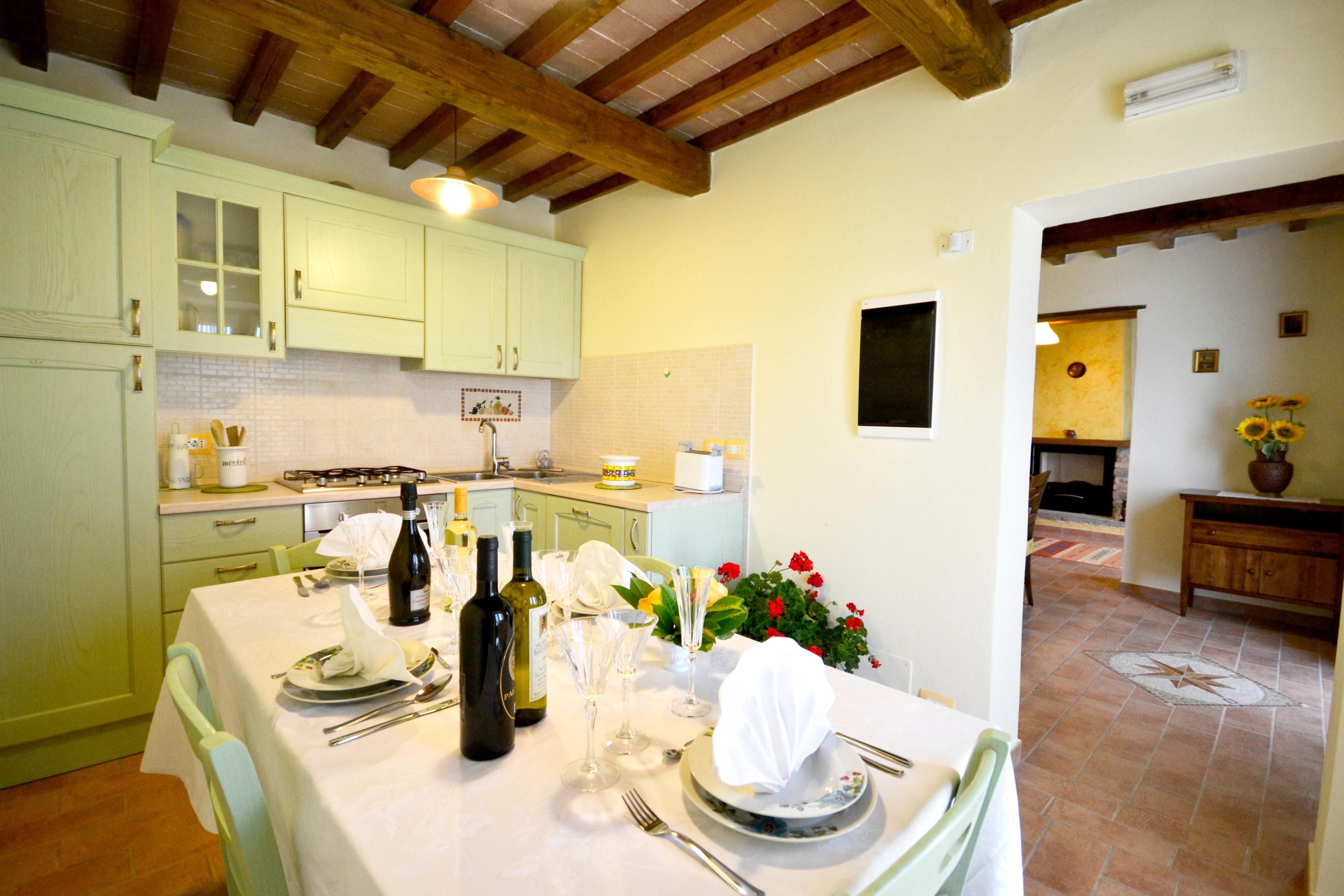Die Innenräume der Villa Fiordaliso bewahren die typisch rustikalen toskanischen Stilelemente: Holzbalken und Terrakottaböden charakterisieren das Gebäude und machen es reich an Charme und Geschichte. Die Einrichtung wurde so konzipiert, dass sie maximalen Komfort bietet und alle Bedürfnisse, die während Ihres Urlaubs auftreten können, erfüllt. Die Villa erstreckt sich über drei Ebenen, die durch eine Holztreppe miteinander verbunden sind.