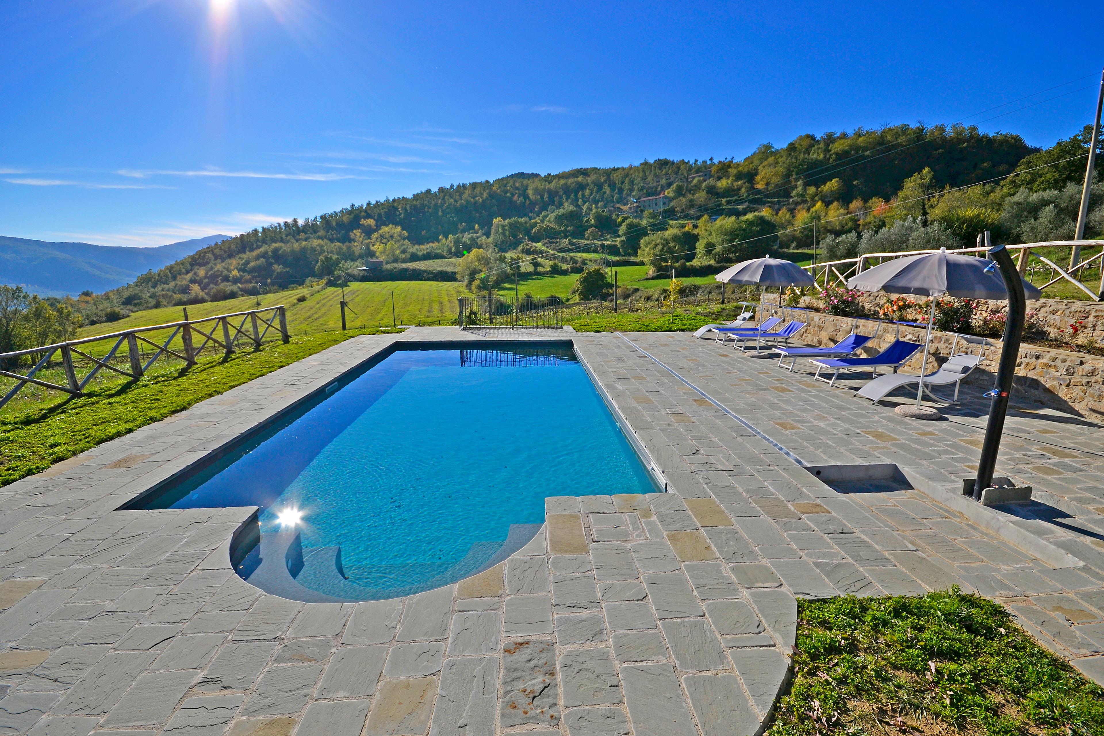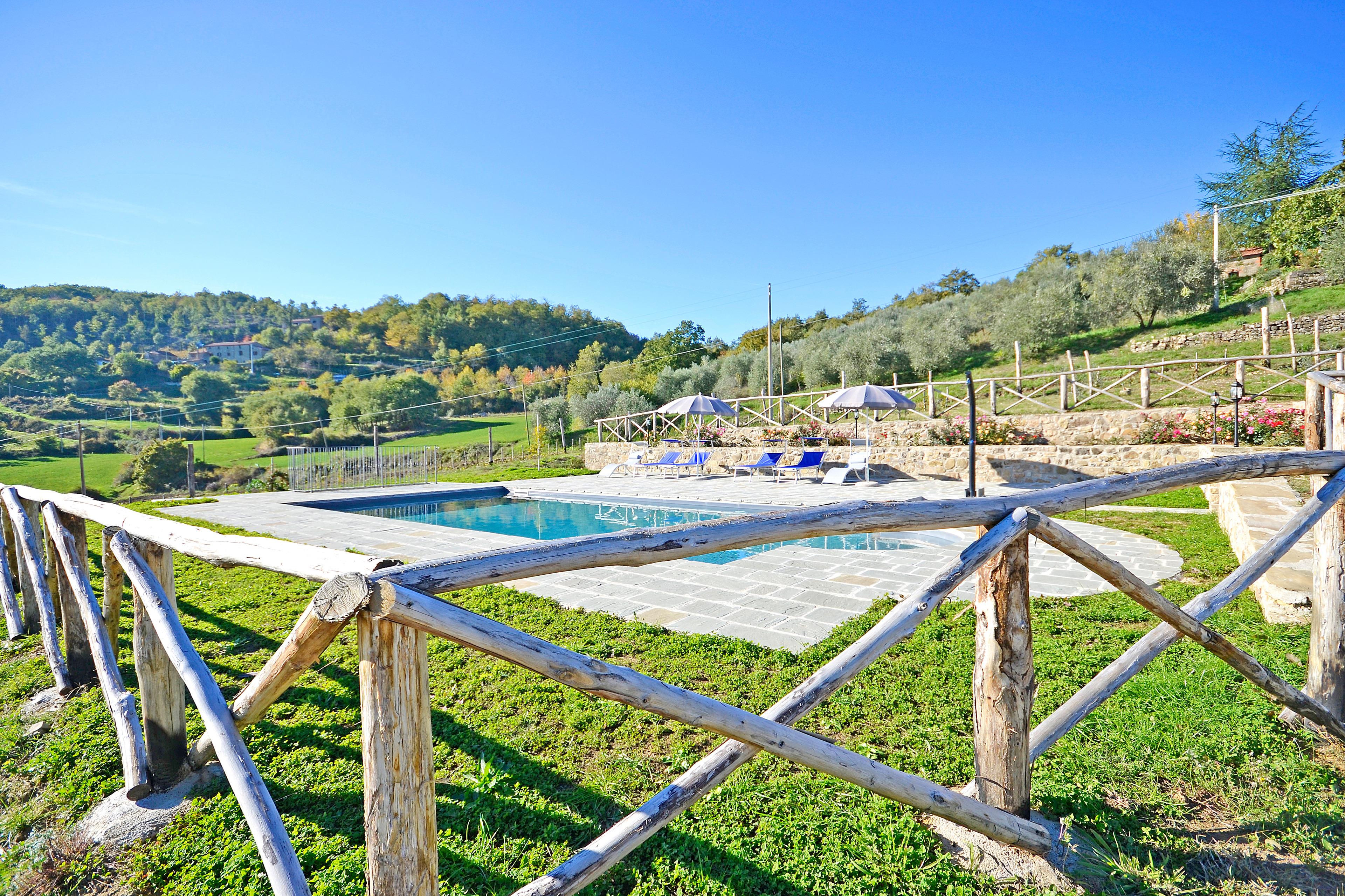 Eingebettet in die sanften toskanischen Hügel an der Grenze zwischen der Toskana und Umbrien, in einer sehr ruhigen Lage voller Wiesen, Ackerland und Wälder, steht Villa Fiordaliso, ein altes Bauernhaus in den späten 1800er Jahren gebaut und jetzt komplett von den Eigentümern renoviert, die versucht haben, die Eigenschaften des Hauses und der Umgebung intakt zu halten.