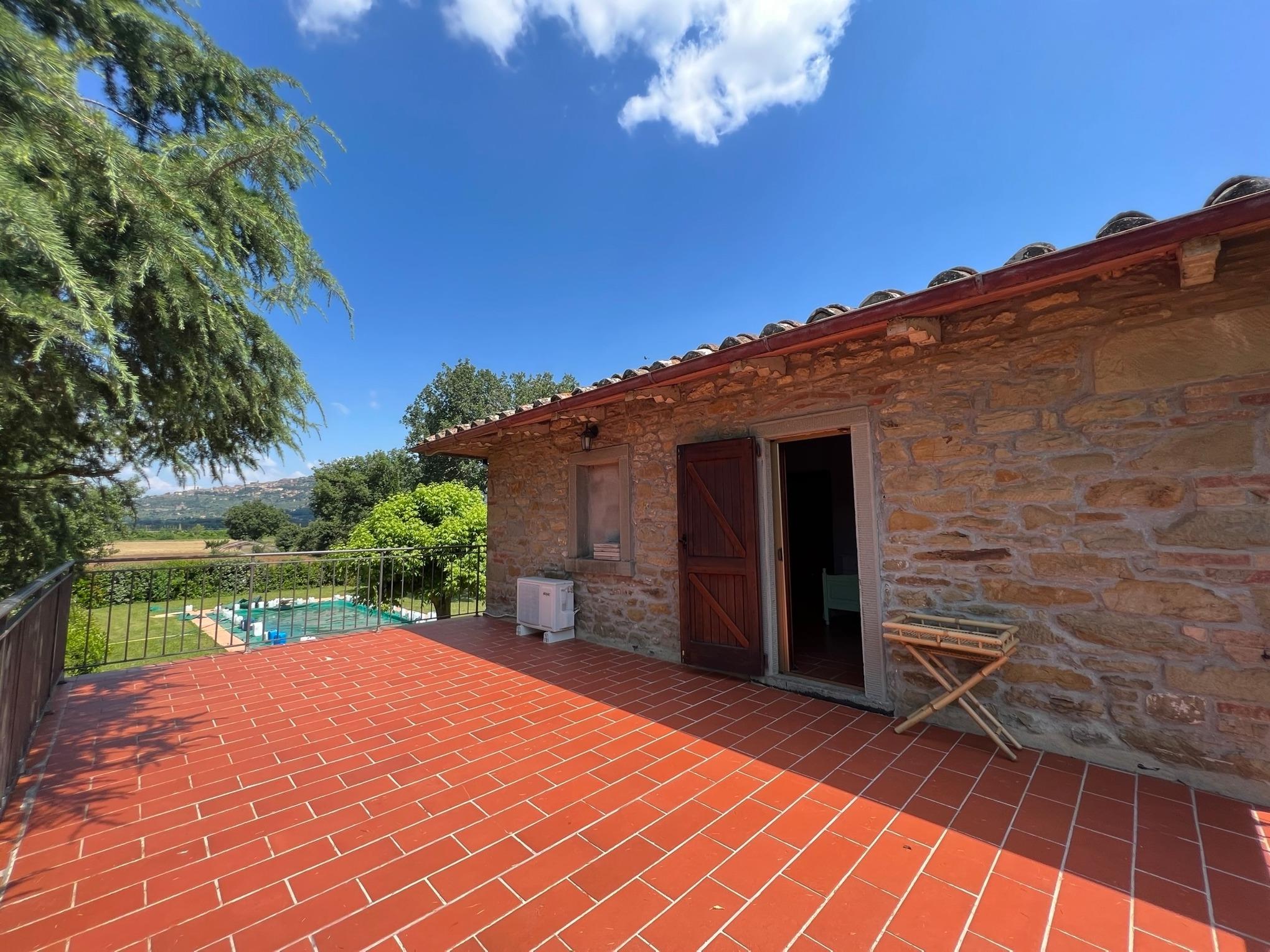 Villa Marconi ist ein unabhängiges Bauernhaus aus Stein am Fuße der alten etruskischen Stadt Cortona, nur 5 km entfernt. Das Anwesen befindet sich in einem großen, komplett eingezäunten Garten, wo wir verschiedene Entspannungs-und Spielräume zu finden. Idealer Ort für Familien, hat ein großes Feld (verwendet, um Fußball zu spielen) und ein Pool-Bereich eingezäunt und durch Eingangstor geschützt. Das Schwimmbad (misst 10x5 Meter, tief von 1,230 bis 1,80 Meter) ist komplett mit Liegestühlen und gut auf die Sonne während des Tages ausgesetzt und genießt einen schönen Blick auf die Stadt Cortona. Vor der Küche gibt es eine Pergola, wo Sie einen großen Tisch finden können, um draußen zu essen. Auf dem Grundstück haben Sie auch Platz, um Ihre Autos zu parken.
