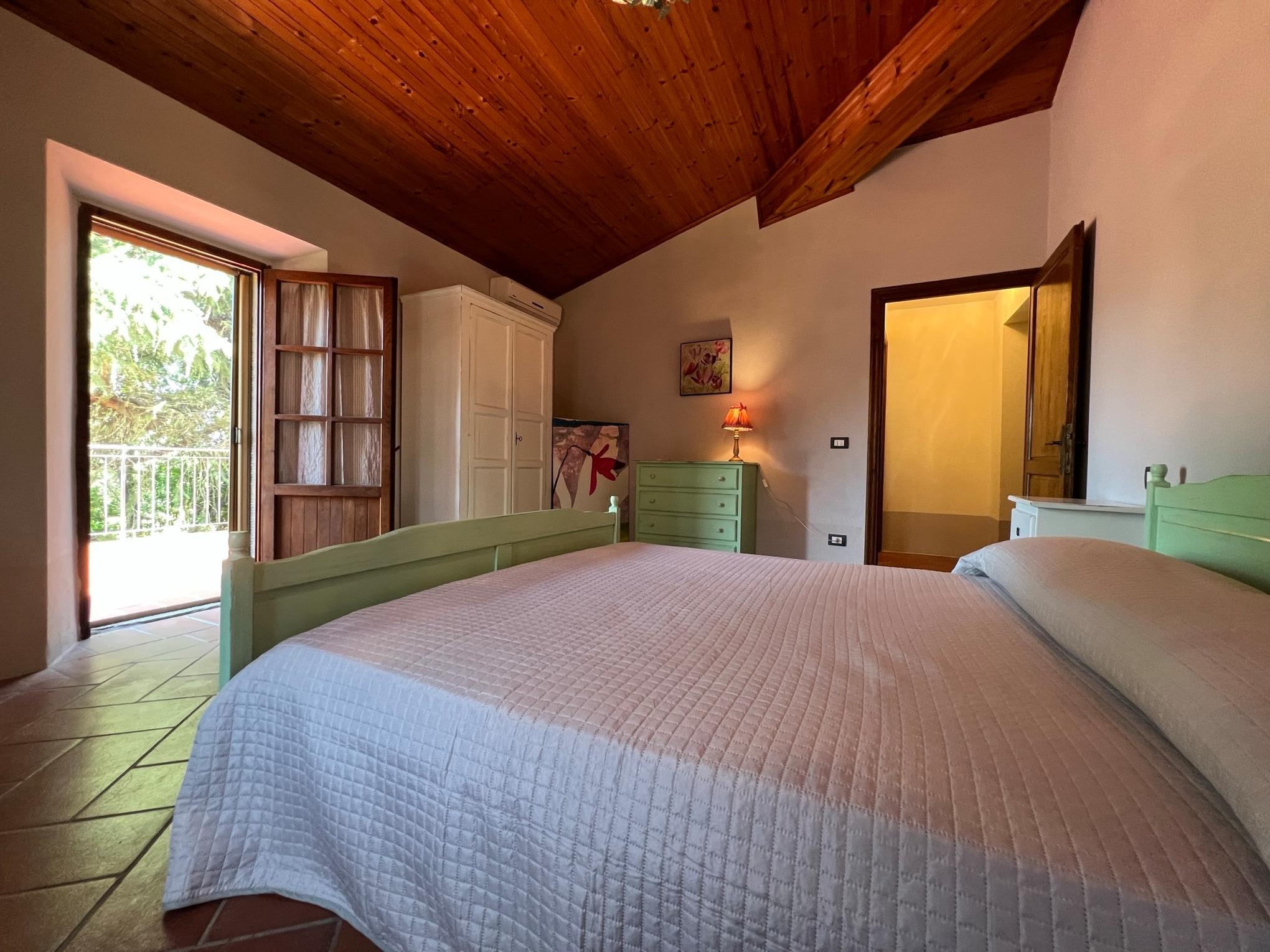 Im ersten Stock finden wir ein zweites Wohnzimmer mit Sofa, Kamin und Kochnische und dann weiter in den Schlafbereich, wo wir ein erstes Schlafzimmer, bestehend aus einem Doppelbett (im Zimmer gibt es auch ein Einzelbett auf Anfrage) und ein zweites Schlafzimmer auch mit Doppelbett und Kleiderschrank und zeichnet sich durch den Ausgang zu einem schönen und großen Panorama-Terrasse. Vervollständigen Sie die zweite Etage ein schönes Bad mit Dusche.