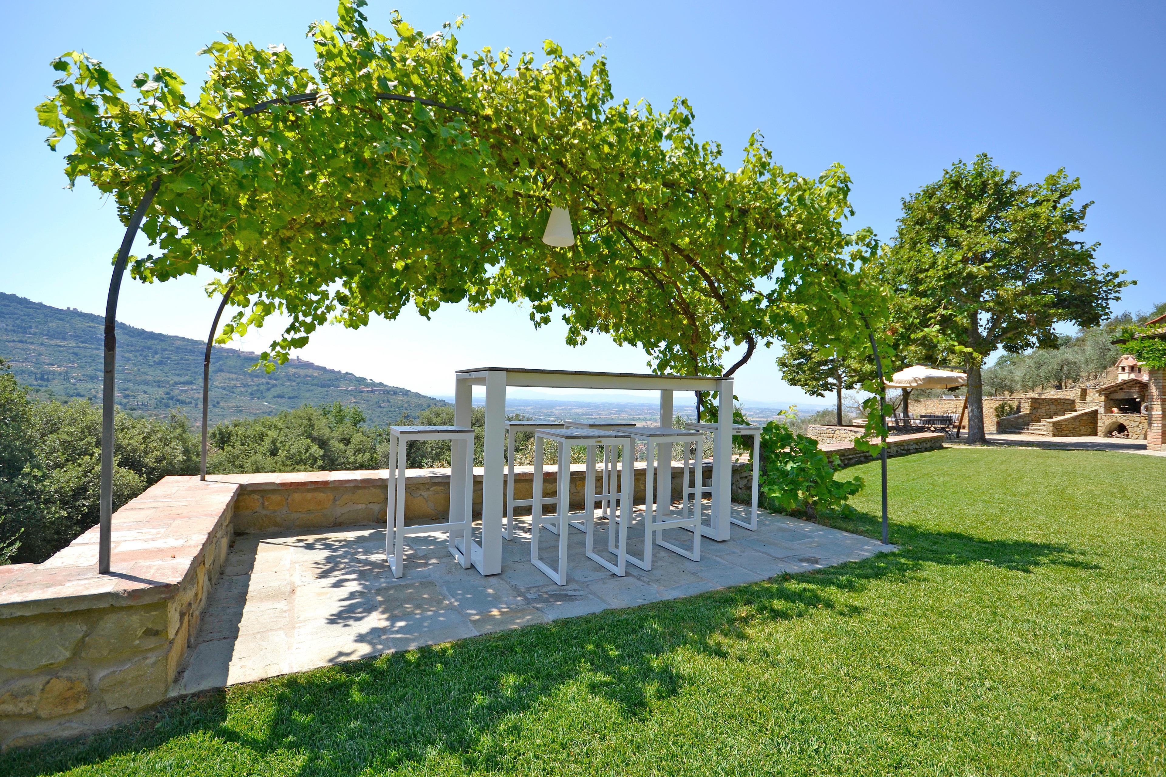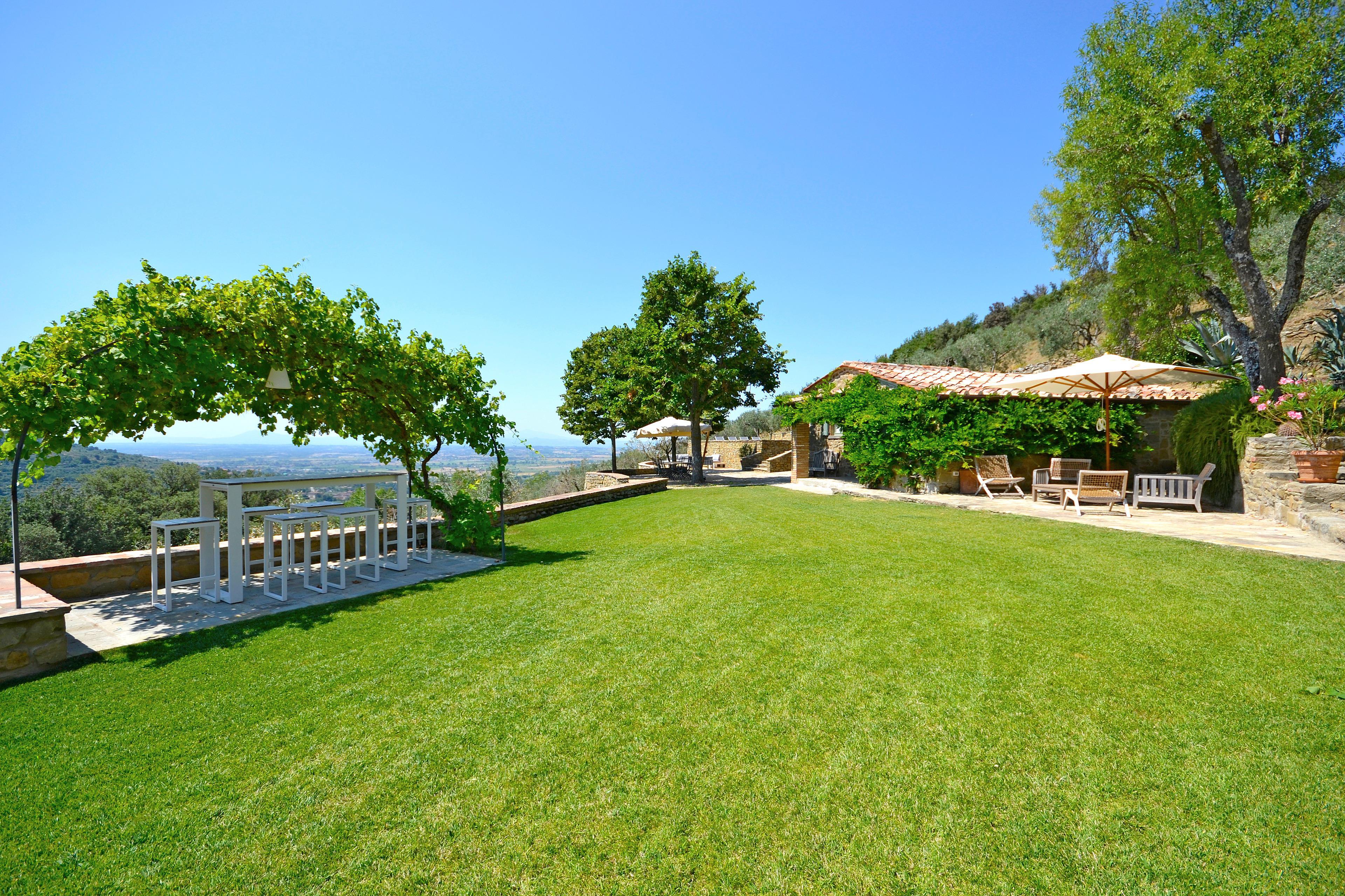 Mitten im Herzen der Toskana, an der Südseite des Hügels, auf dem sich die antike etruskische Stadt Cortona befindet, liegt Tenuta Pomona, ein Ort, an dem man eine unvergessliche Erfahrung machen kann, in einem Anwesen von unbestrittenem Charme und Luxus. Die Villa genießt einen der schönsten Ausblicke auf die Hügel von Cortona, dank ihrer Panoramalage mit atemberaubendem Blick auf das Val di Chiana und die Skyline von Cortona. Die Villa liegt abseits vom Verkehrslärm und befindet sich in einer Umgebung, in der die Vegetation, die Olivenbäume und die typischen Terrassen dieses Hügelkegels einen Ort von seltener Schönheit und starker visueller Wirkung schaffen.