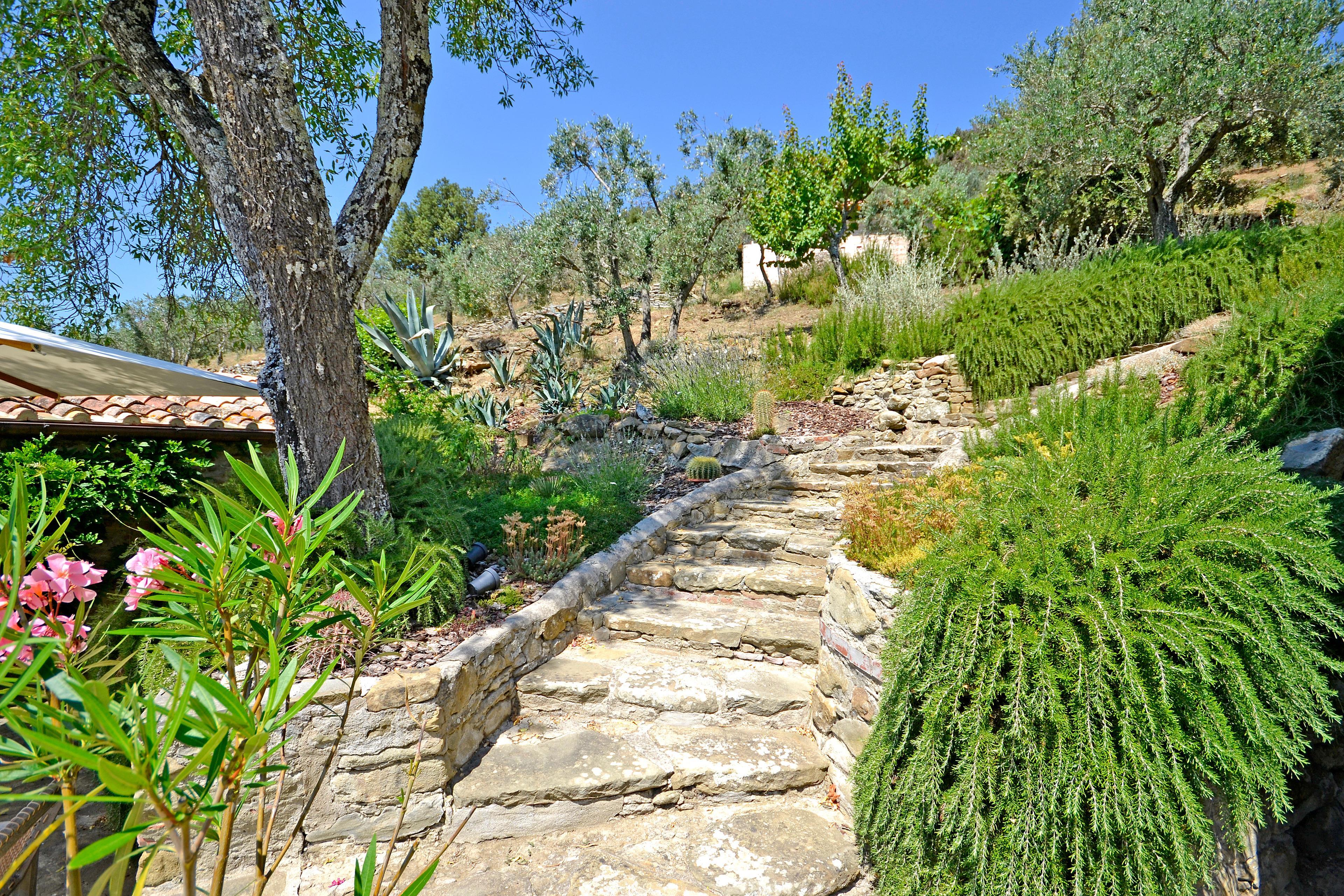 Vom Garten aus erreichen Sie den Poolbereich über bequeme Steintreppen. Der Bereich ist den ganzen Tag der Sonne ausgesetzt und genießt einen spektakulären Blick auf die umliegende Landschaft; der Pool (8 x 4 Meter, Mindesthöhe 0,50 Meter - maximal 2,50 Meter, mit römischer Treppe, geöffnet vom 1. Mai bis 30. September) ist mit Sonnenterrasse, Sonnenliegen und Sonnenschirmen ausgestattet.