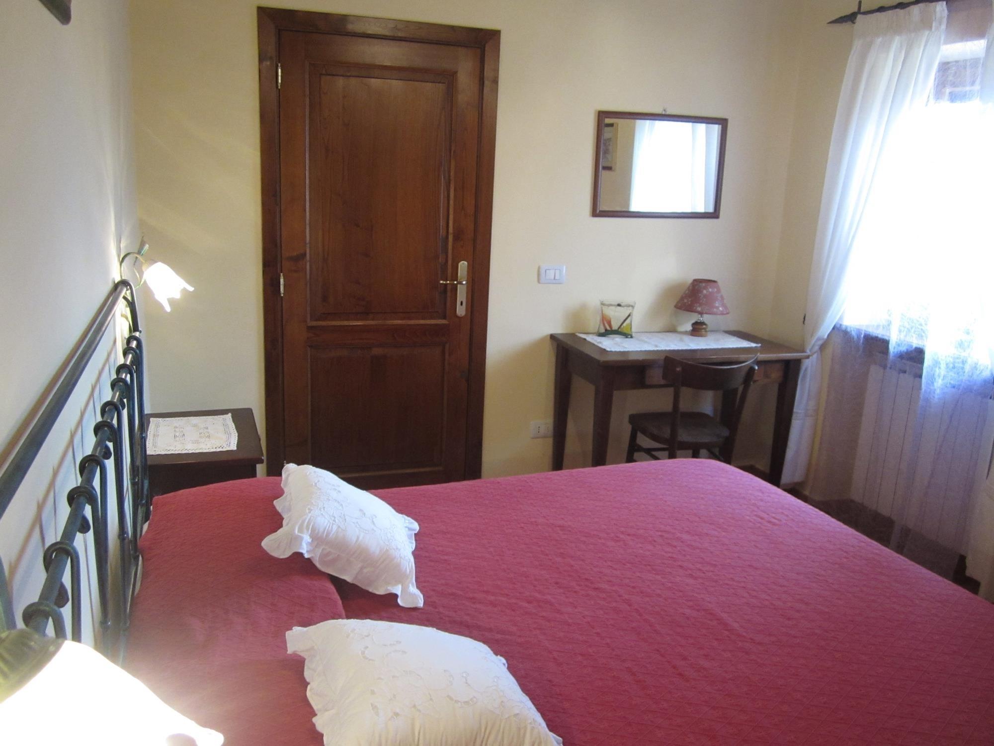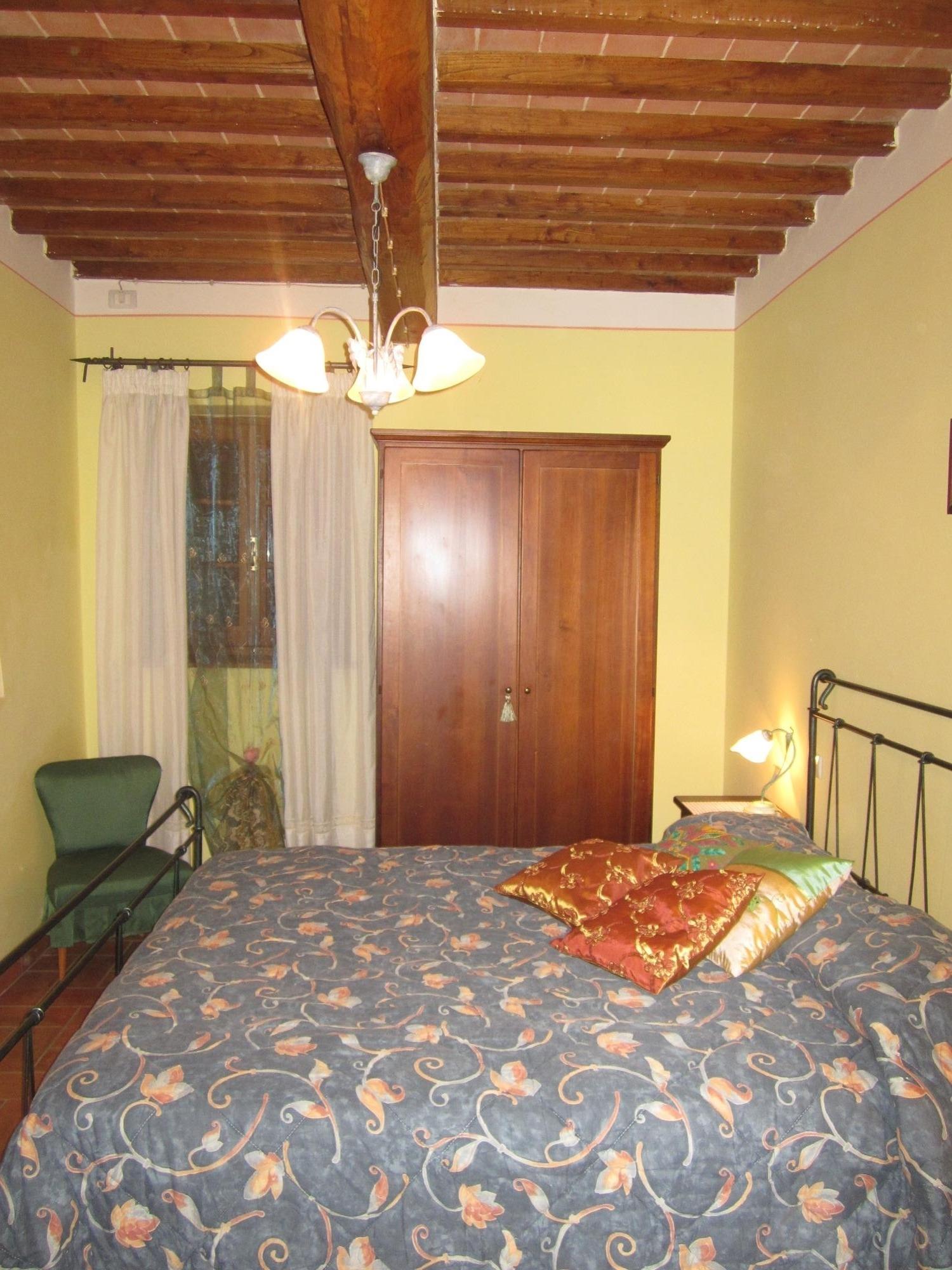 Casale Valdichiana ist in drei Wohnungen unterteilt, was es ideal für große Familien oder Gruppen von Freunden macht, die ihren Urlaub gemeinsam verbringen und dennoch ihre Privatsphäre bewahren wollen. Im Erdgeschoss befindet sich die erste der drei Wohnungen, bestehend aus einem Schlafzimmer mit Doppelbett, einem Wohnzimmer mit Kochnische und einem Bad mit Dusche.