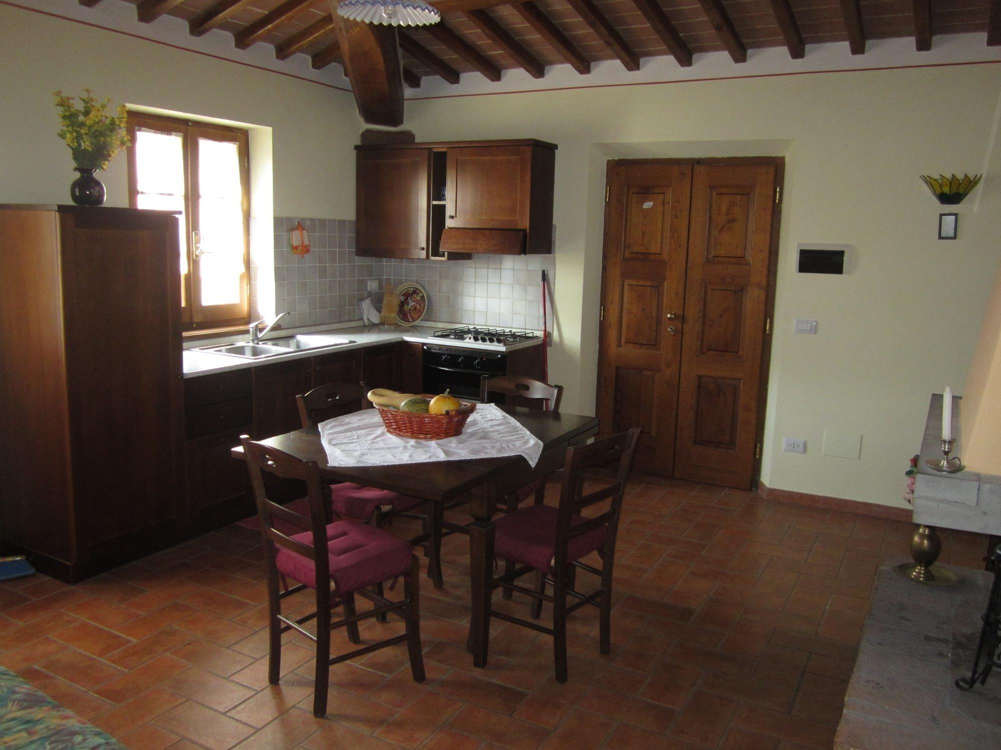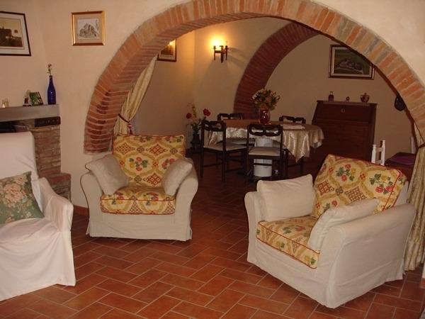 Die Innenräume des Hauses (250 Quadratmeter) sind groß und geräumig. Eingerichtet im klassischen toskanischen Stil, wurden Materialien aus einer Zeit, verwendet: Decken mit freiliegenden Holzbalken, Terrakotta-Böden, schmiedeeiserne Details und Ziegelgewölbe sind vorherrschend. Die Einrichtung ist einfach und funktionell, aber so konzipiert, dass Sie maximalen Komfort genießen können.