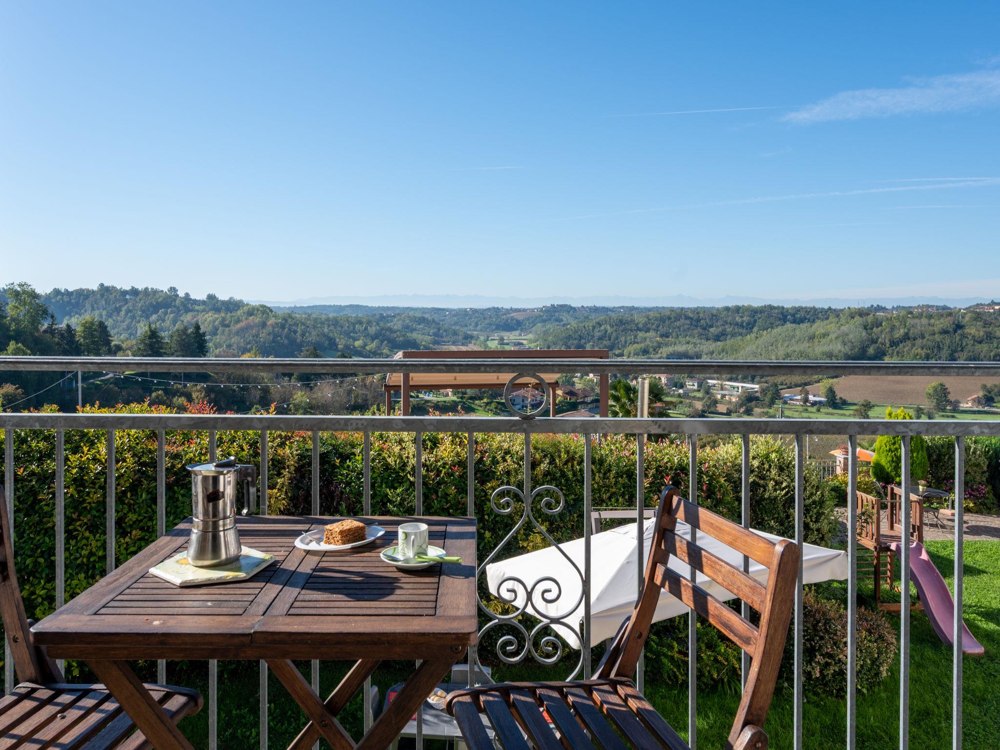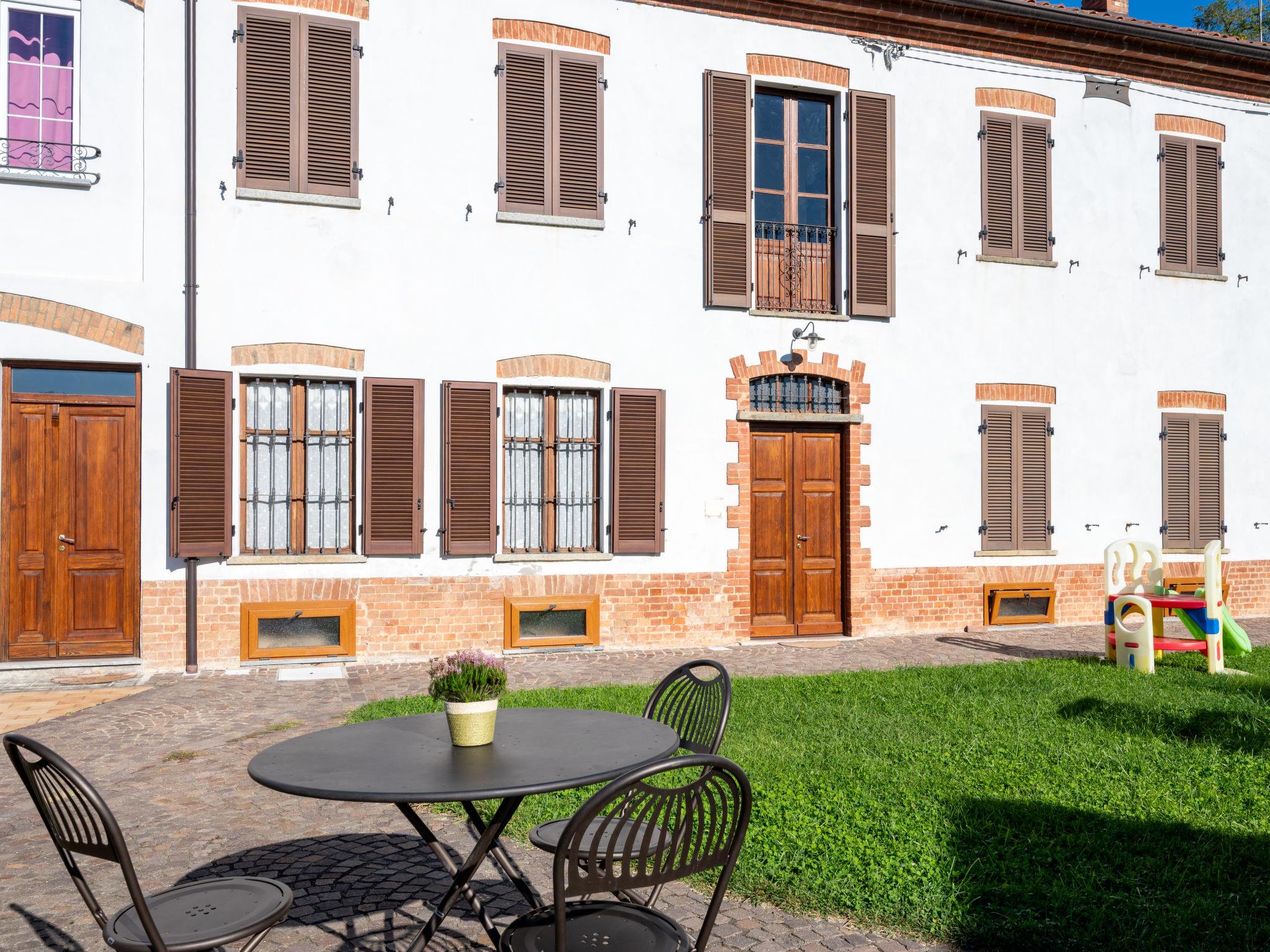 On a vinyard "Il Pozzo Fiorito", surrounded by fields and vineyards. 5 apartments in the residence. 100 m from the centre of Cossombrato, 14 km from the centre of Asti, 45 km from the centre of Turin. For shared use: property 1'200 m2 (fenced), well-kept garden with lawn, swimming pool (8 x 4 m, depth 150 cm, seasonal availability: 26.Apr. - 10.Oct.). Shower/WC in the pool area, outdoor shower, table tennis, pergola, terrace, garden furniture, barbecue. In the complex: fitness room (extra). Washing machine (for shared use, extra), bicycles available (extra). Parking at the house on the premises. Supermarket 1 km, bus stop 100 m, railway station "Asti" 14 km. Local sale of farm products. Please note: the owner lives on the same property.