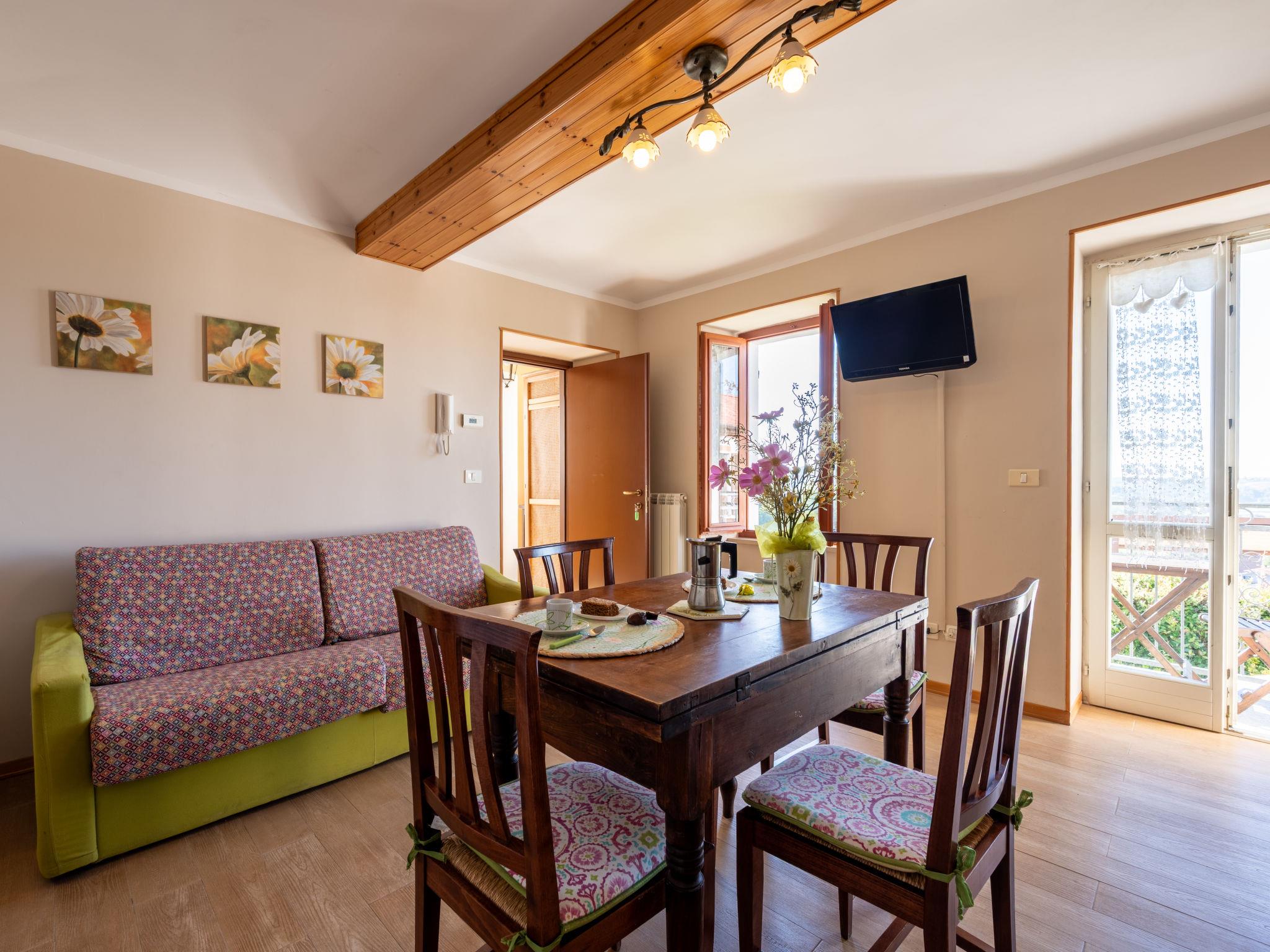 "Grappolo + Margherita", 4-room terraced house 100 m2 on 2 levels. Rustic and tasteful furnishings: 1 room with 1 bed and 1 french bed (160 cm). Kitchen (oven, 4 gas rings, toaster, freezer, electric coffee machine) with dining table and TV. Shower/WC. Air-conditioning. Upper floor: living/sleeping room with 1 double sofabed, dining table and TV. Exit to the balcony. 1 room with 1 double bed. Small kitchen (oven, 4 gas rings, freezer). Shower/WC. Heating, air-conditioning. Heating available only from 01.10. to 15.04. Small balcony, patio. Terrace furniture. Facilities: washing machine. Internet (WiFi, free). Please note: non-smokers only. Maximum 2 pets/ dogs allowed. No internal connecting door between the separated properties. IT005049B46KYHTUBZ
