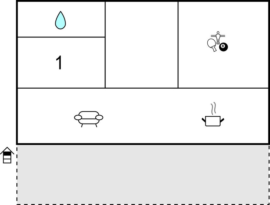 Opholdsstue/køkken - 1 Soveplads. (Sofa, madras eller lignende).