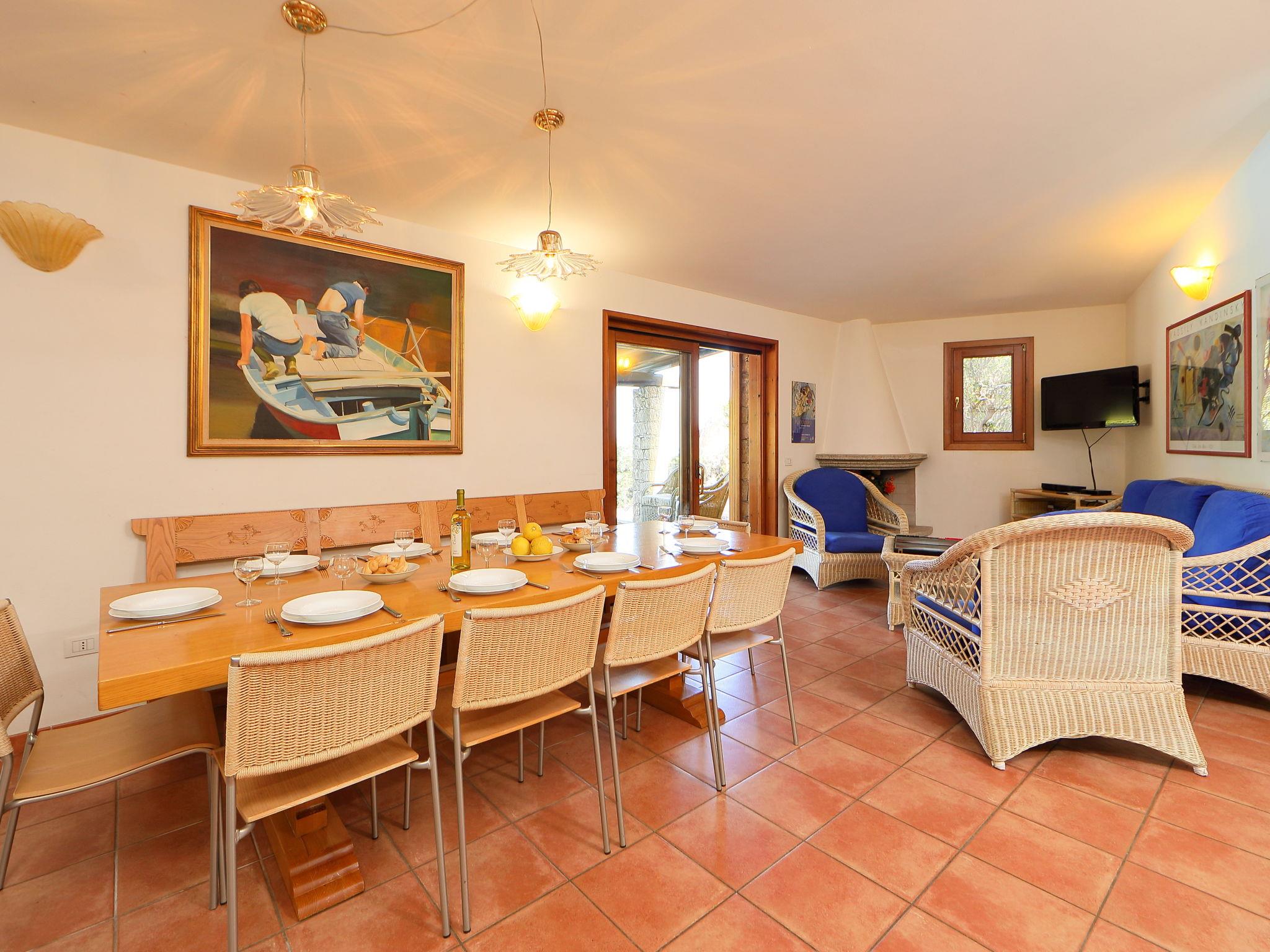 7-room villa 150 m2 on 2 levels. Comfortable furnishings: large living/dining room with panoramic window with open-hearth fireplace and satellite TV (flat screen). Exit to the patio. Kitchenette (6 hot plates, oven, dishwasher, microwave, freezer, electric coffee machine). Upper floor: 2 double bedrooms. 2 rooms, each room with 2 beds. 2 rooms, each room with 1 x 2 bunk beds. 3 showers/bidet/WC. No heating option. Large terrace partly roofed. Terrace furniture, balcony furniture, barbecue, deck chairs (6). Beautiful distant view of the sea. Facilities: washing machine, hair dryer. Internet (WiFi, free). Maximum 1 pet/ dog allowed. When there are less than the maximum number of guests staying at the property, not all of the bedrooms will be available for use. IT090074C2C54YG9I7