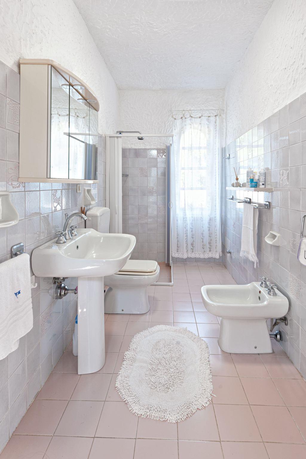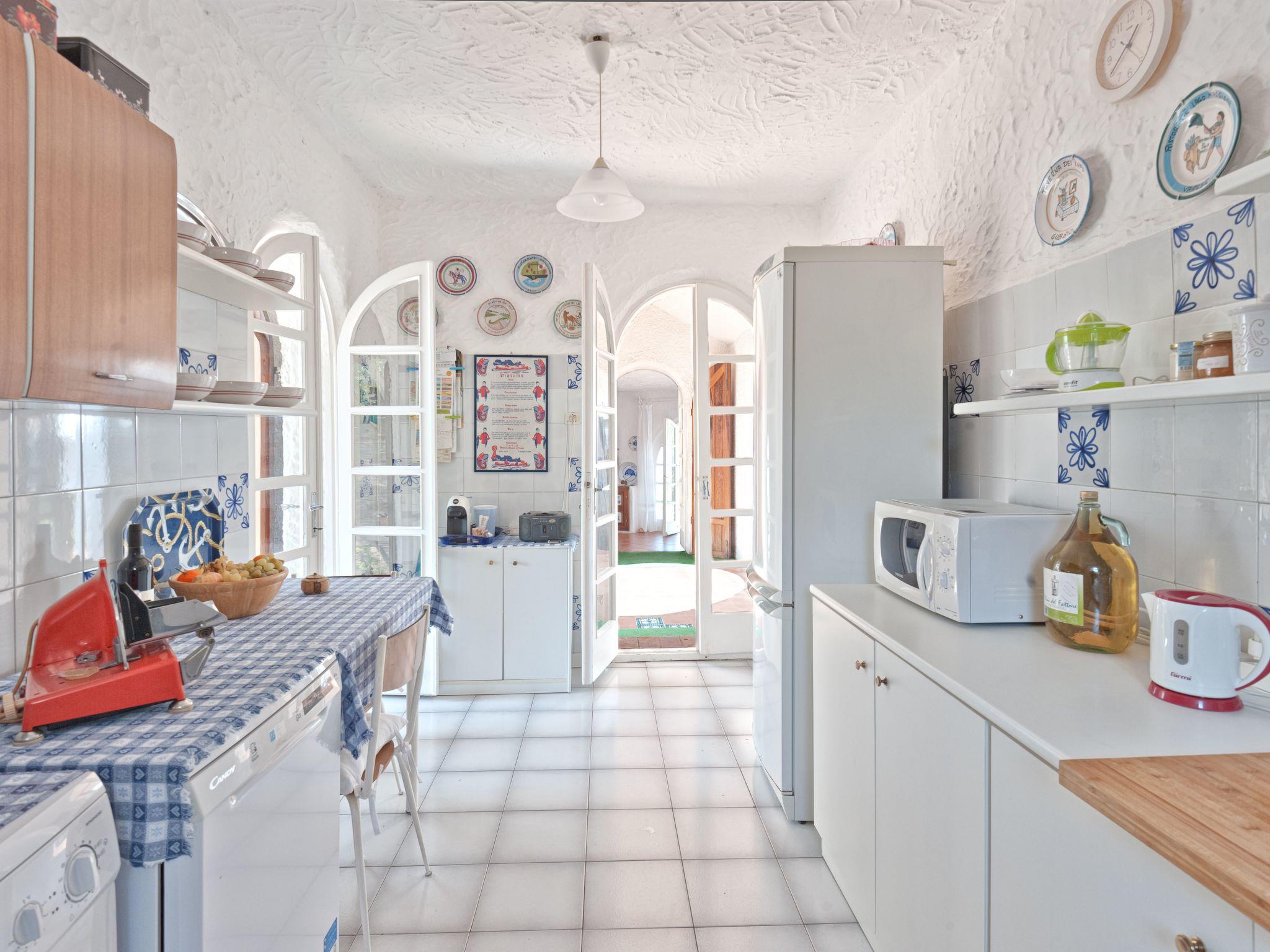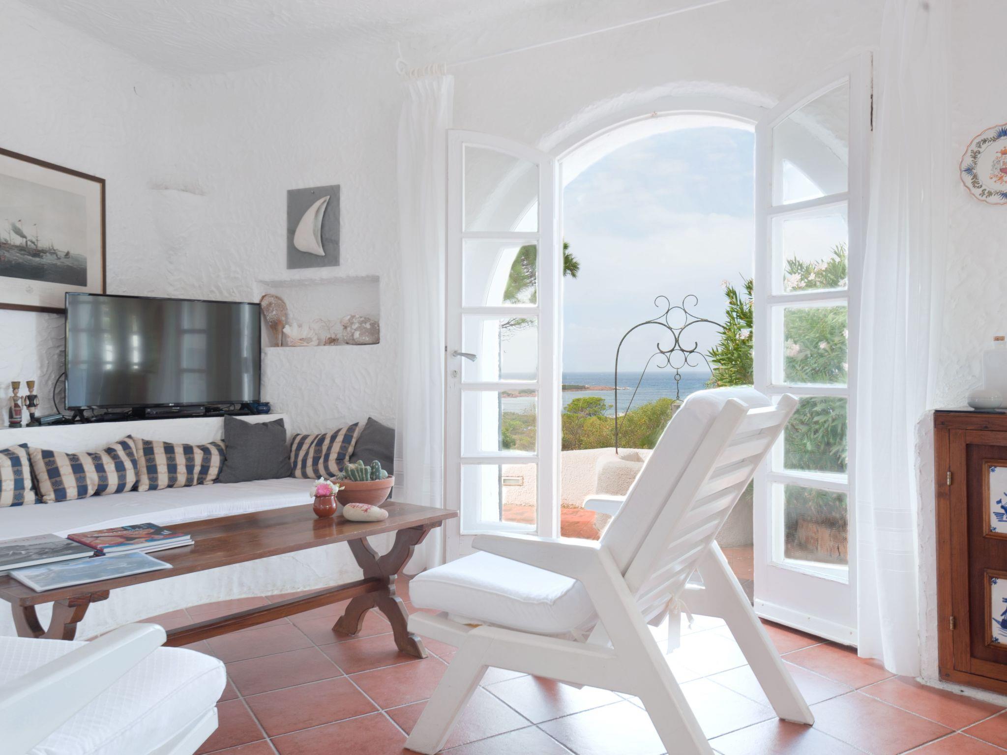 The villa is structured in two "distinct but joined together" bodies, a body to the north consists of a kitchen, a bathroom and a room with a double bed for two people and another single bed. The central body, of round structure, contains the large living room with its three panoramic windows on the Bay, two bedrooms, one double, the other consisting of two single beds and a large bathroom. The decor reflects the era, the beds are in wought iron and the tiles that cover the whole house are of original Sardinian ceramic amenities: