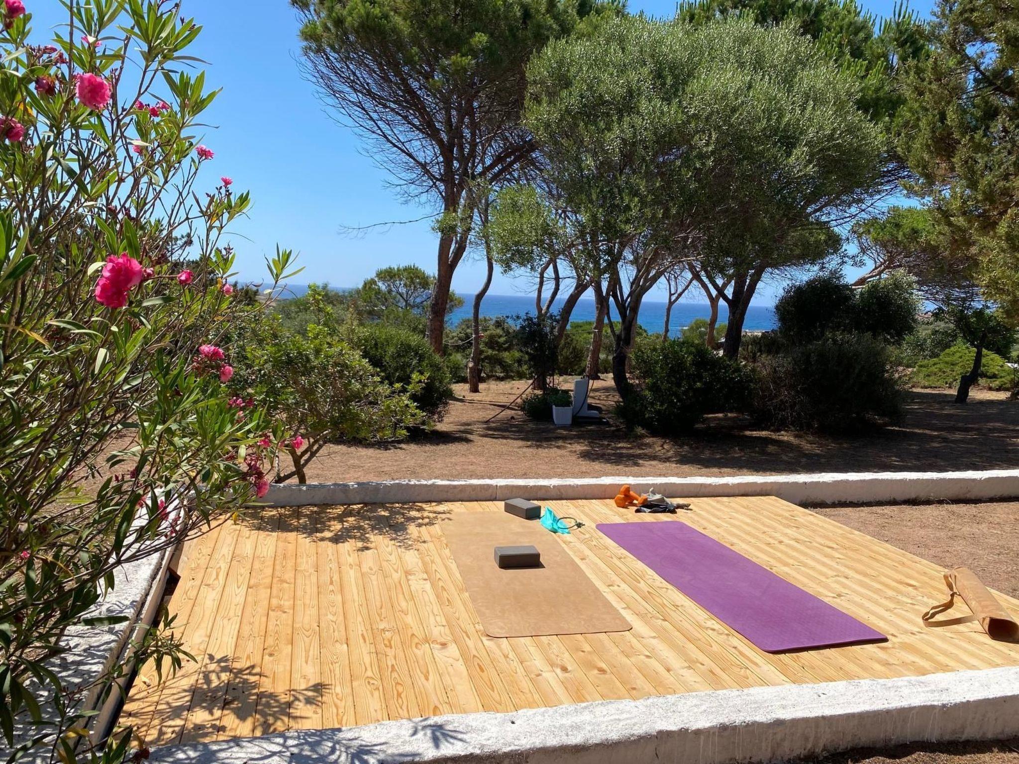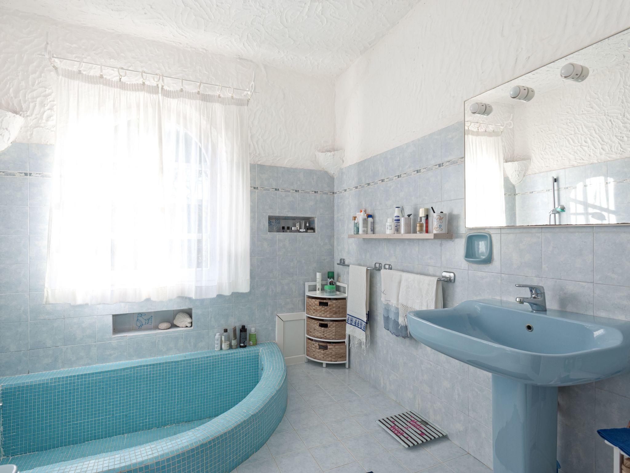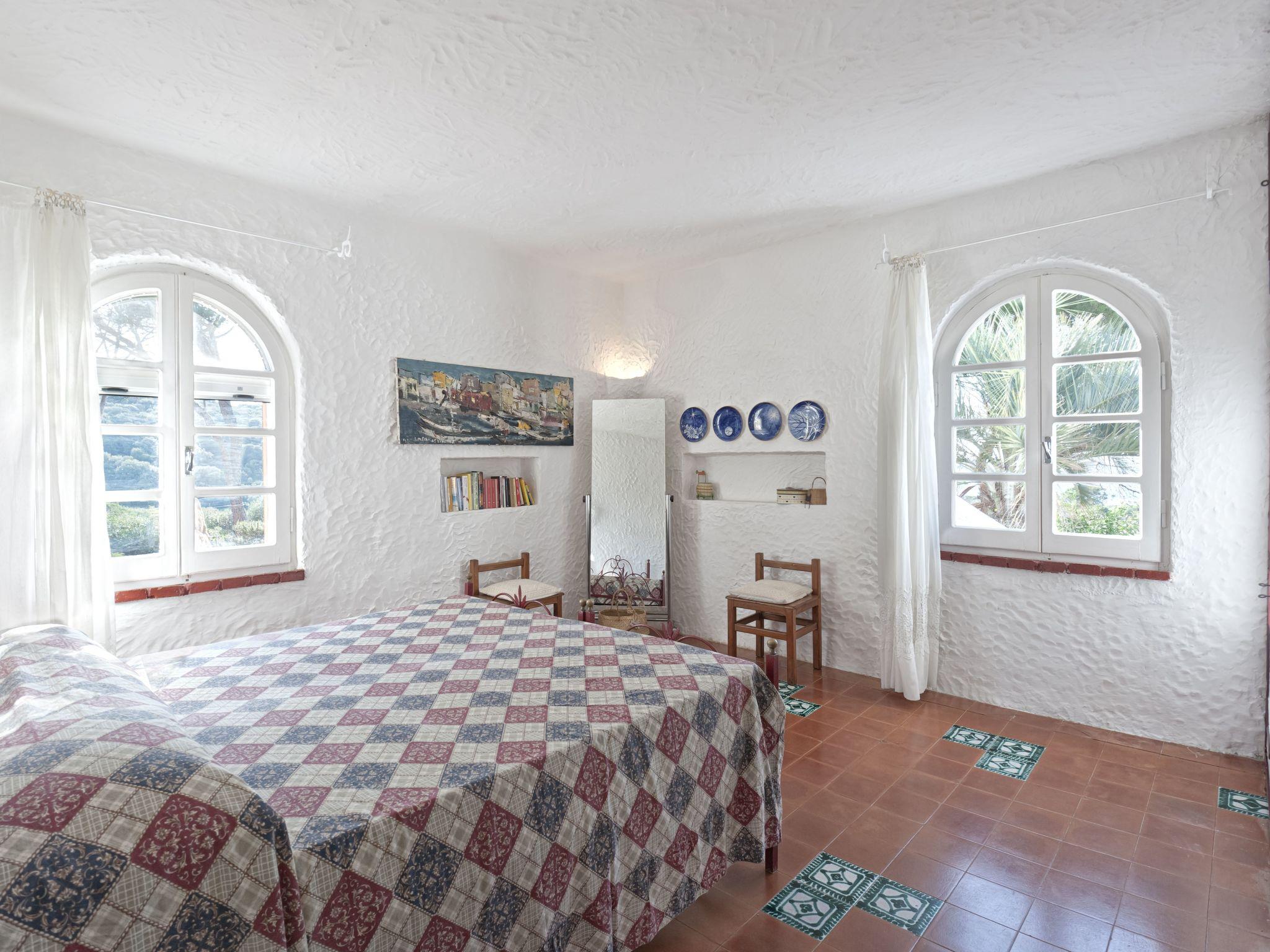 The villa is structured in two "distinct but joined together" bodies, a body to the north consists of a kitchen, a bathroom and a room with a double bed for two people and another single bed. The central body, of round structure, contains the large living room with its three panoramic windows on the Bay, two bedrooms, one double, the other consisting of two single beds and a large bathroom. The decor reflects the era, the beds are in wought iron and the tiles that cover the whole house are of original Sardinian ceramic amenities: