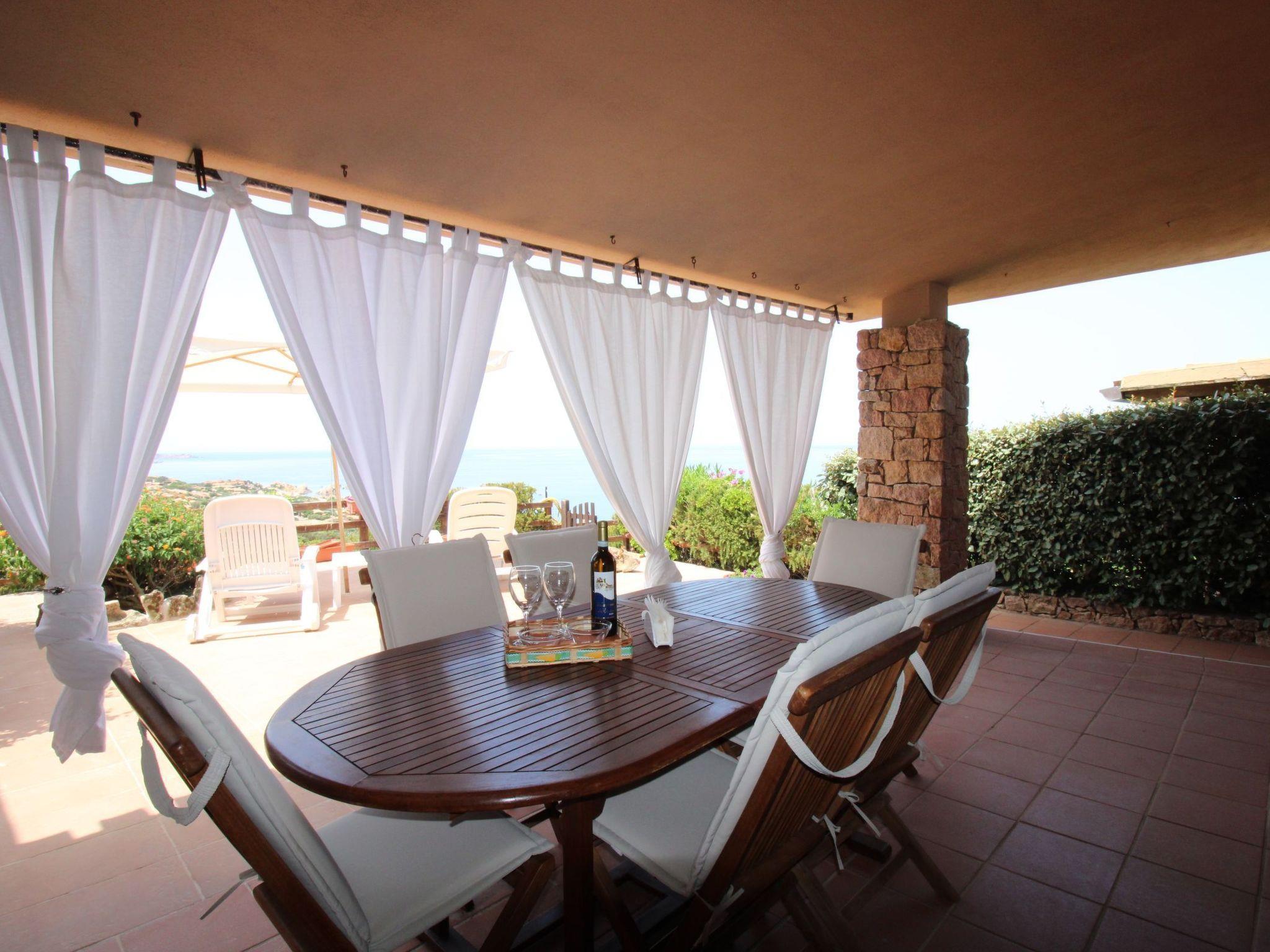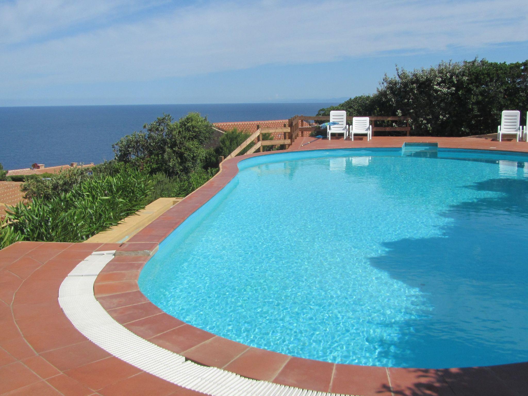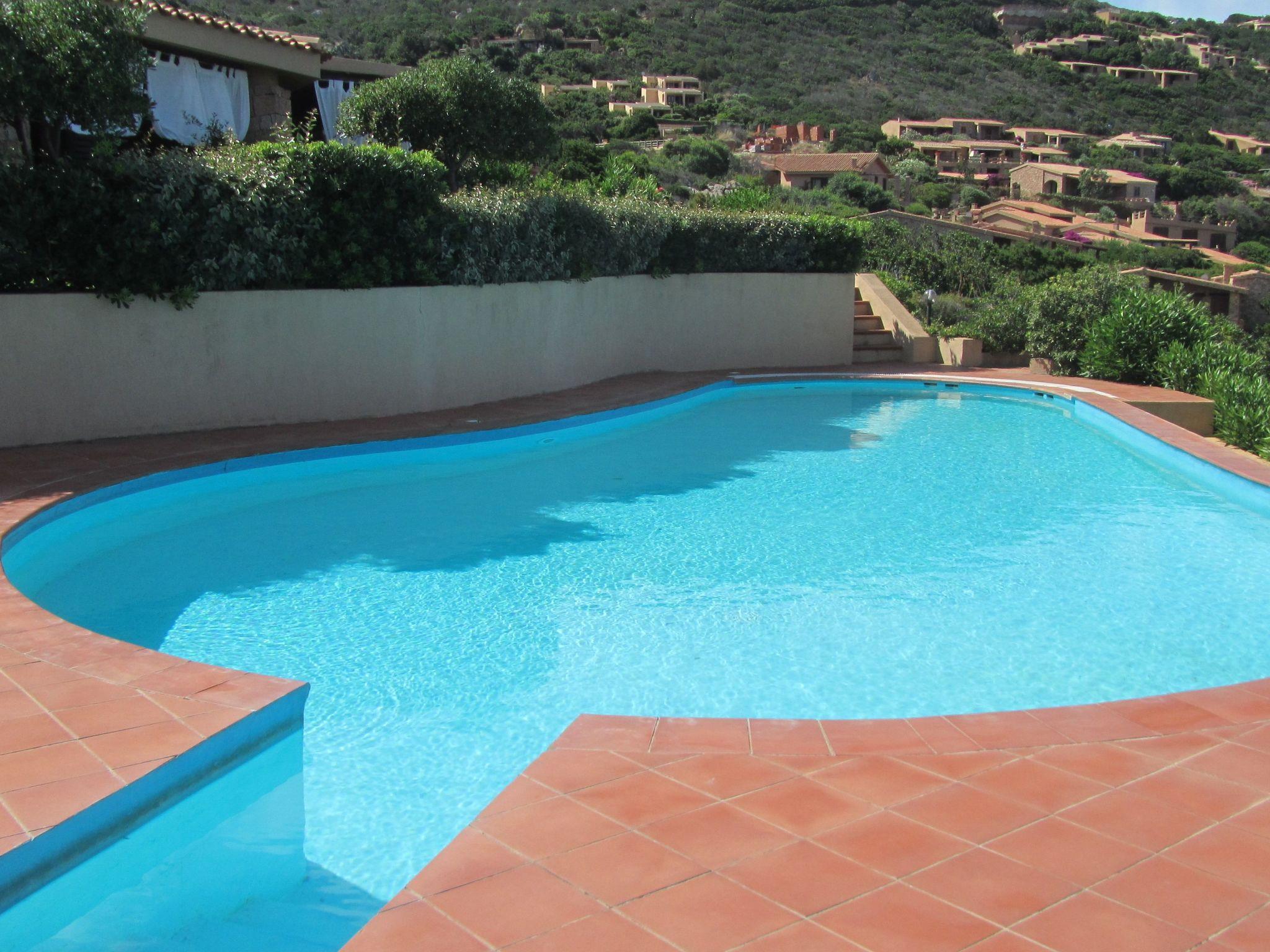 The 65 m2 house is well furnished and consists of a bright living room with sofa bed, kitchenette and dining table. In the sleeping area are two double bedrooms and two bathrooms with shower and washing machine. A characteristic patio overlooks a small garden and the large freshwater swimming pool, from which there is a wonderful view of Costa Paradiso and its splendid sea.