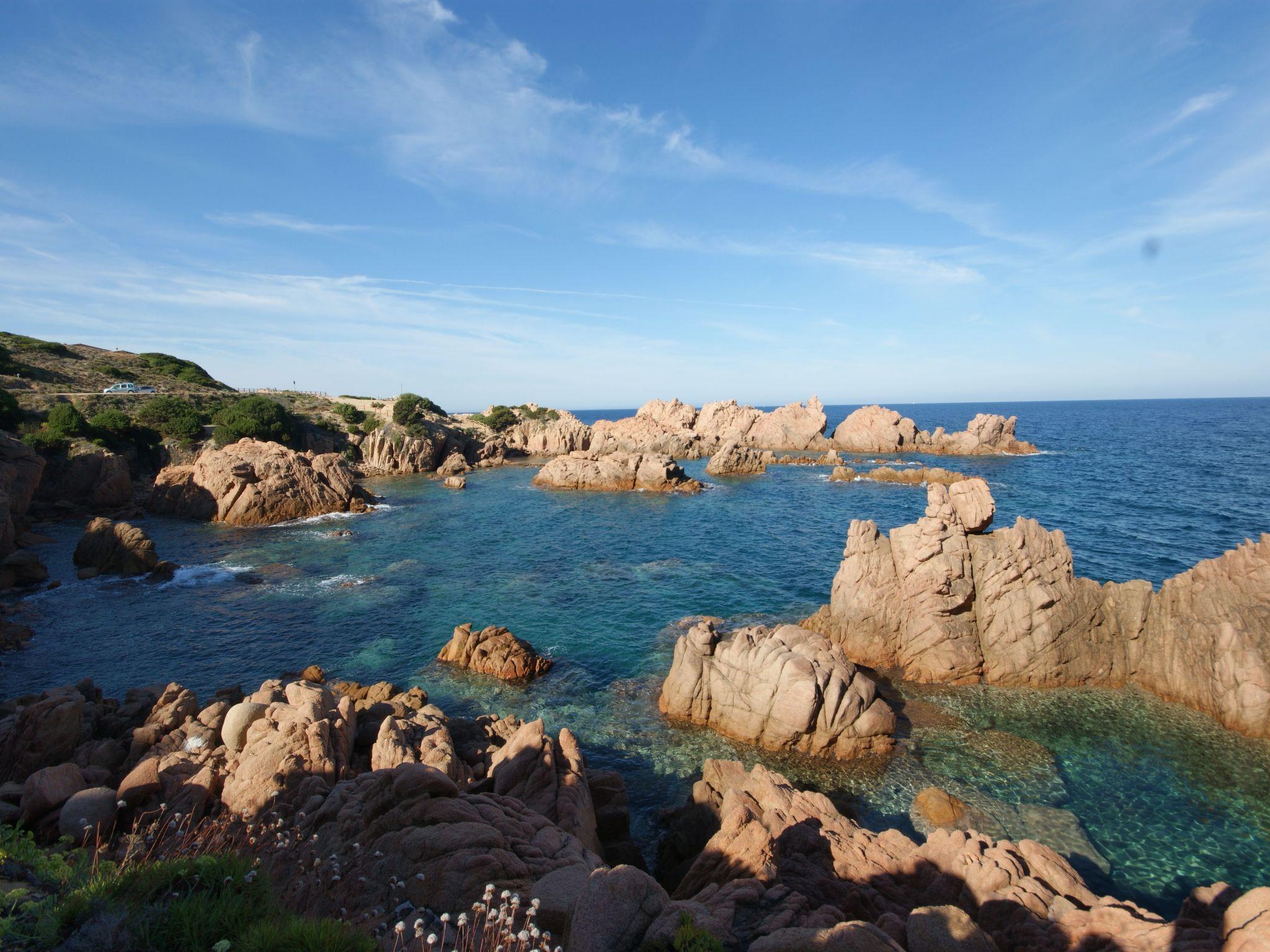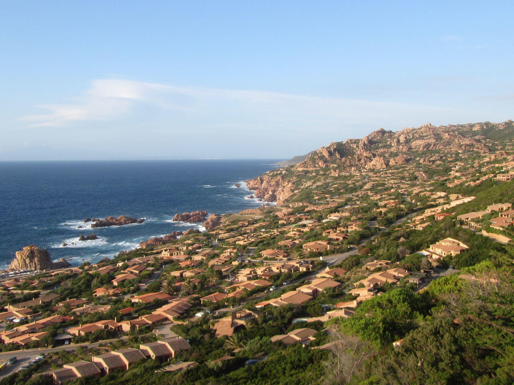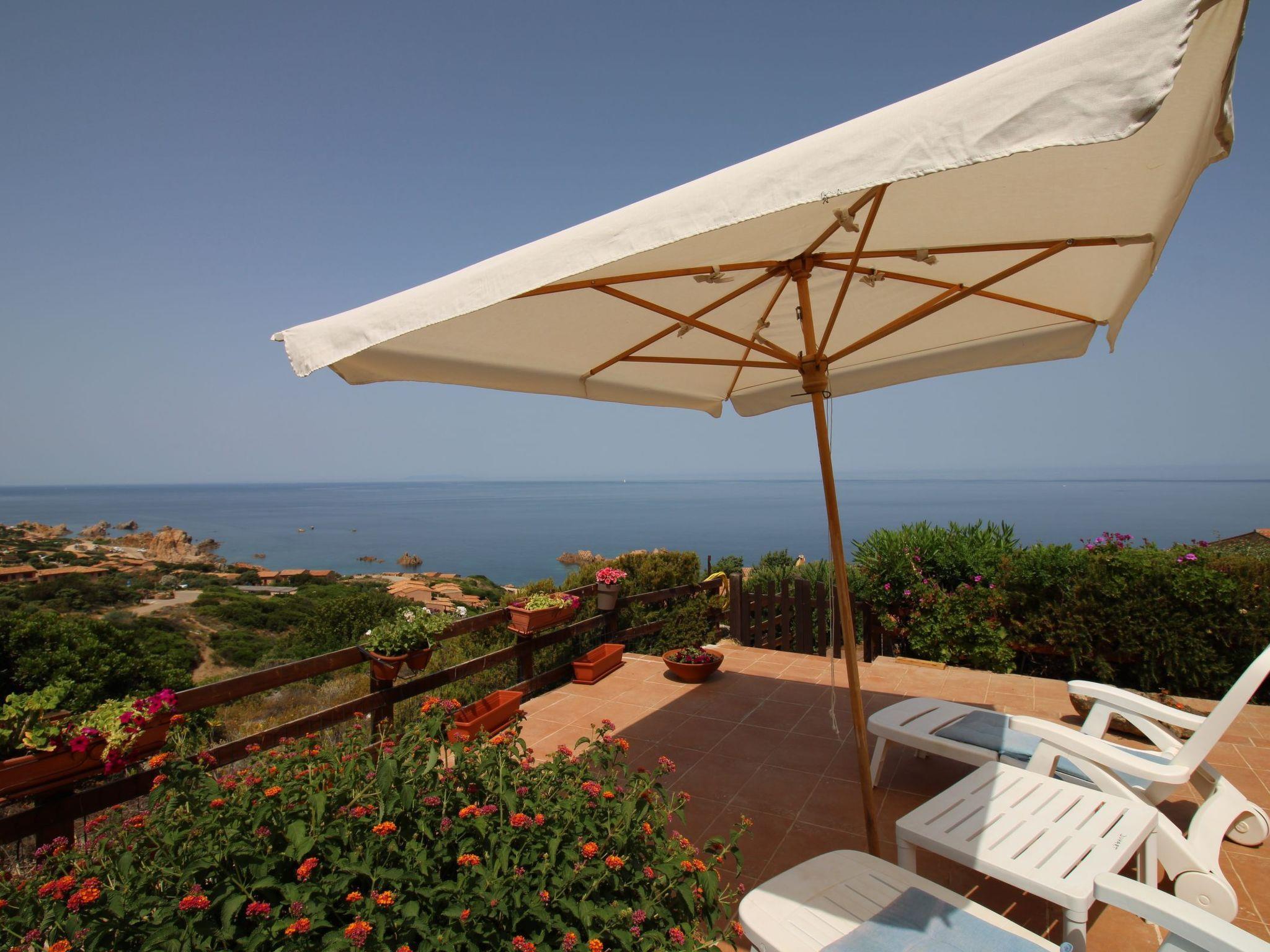The 65 m2 house is well furnished and consists of a bright living room with sofa bed, kitchenette and dining table. In the sleeping area are two double bedrooms and two bathrooms with shower and washing machine. A characteristic patio overlooks a small garden and the large freshwater swimming pool, from which there is a wonderful view of Costa Paradiso and its splendid sea.