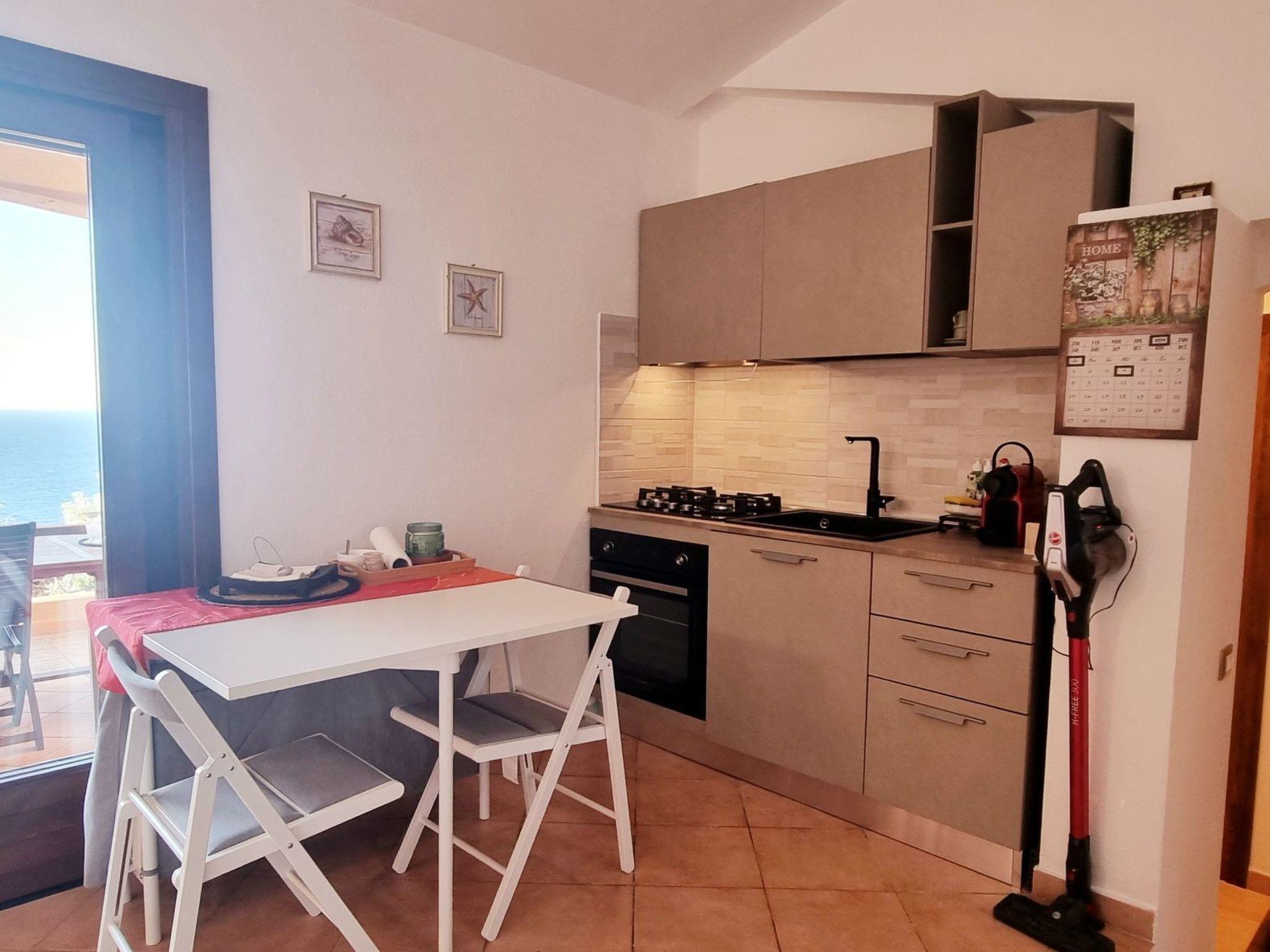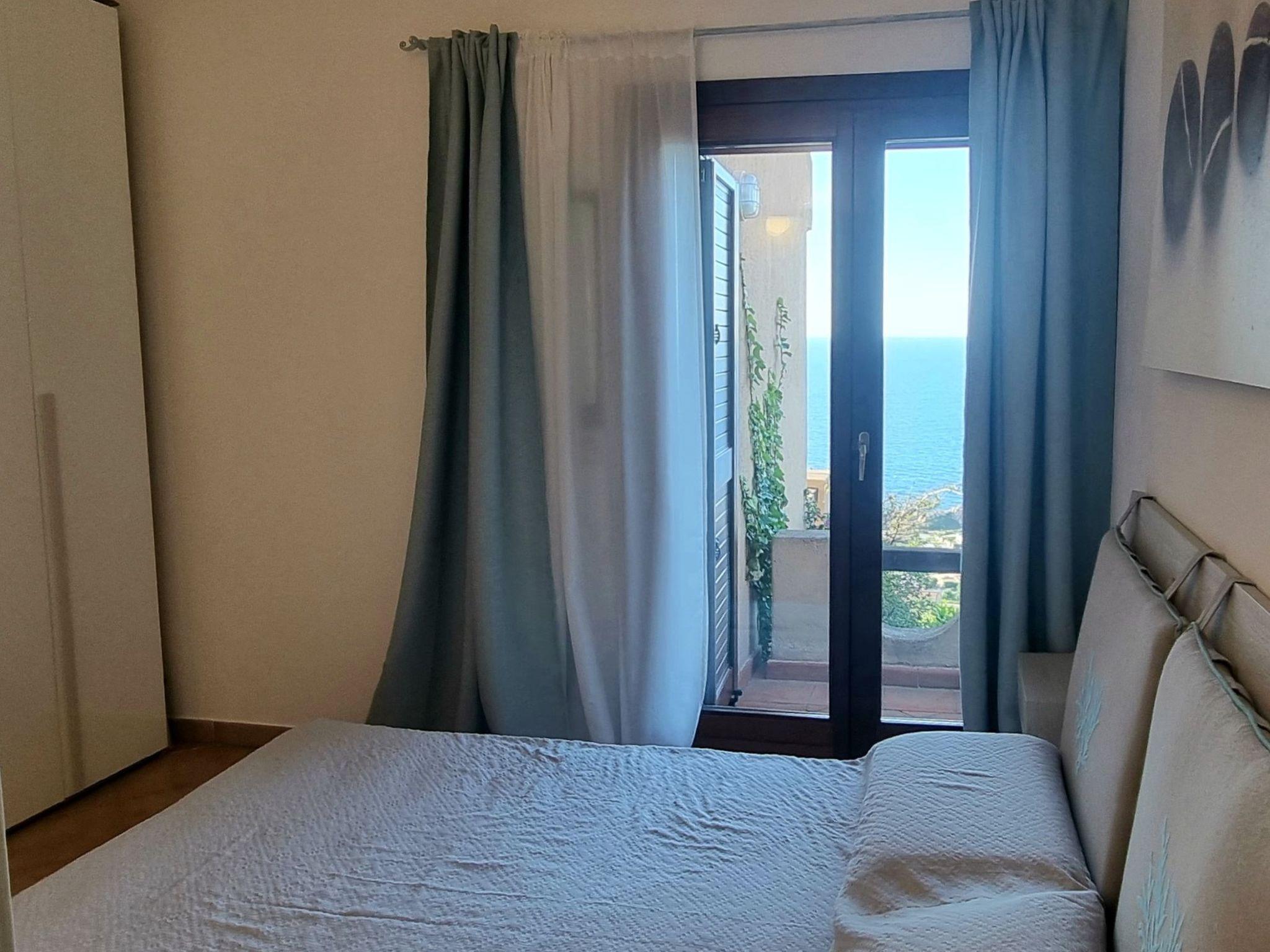 The flat is located within a residence and to reach the house you have to walk down a flight of stairs. For those who like to spend time outdoors, there is a nice terrace with a sea view where you can relax and a shared swimming pool, ideal for cooling off on hot summer days. Inside, the house consists of a bright living room with sofa bed that opens directly onto the veranda and a well-equipped kitchen with gas hob, fridge, oven and microwave. For added convenience, the exclusive use of a washing machine is also included. The sleeping area consists of a master bedroom with double bed and en-suite bathroom and a second bedroom with double bed and sea view. Between the two rooms is a second bathroom.