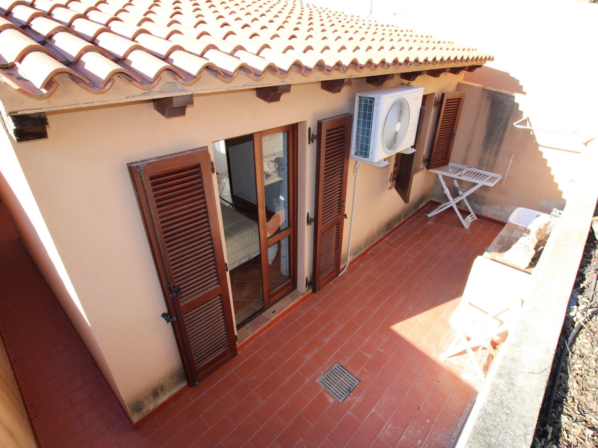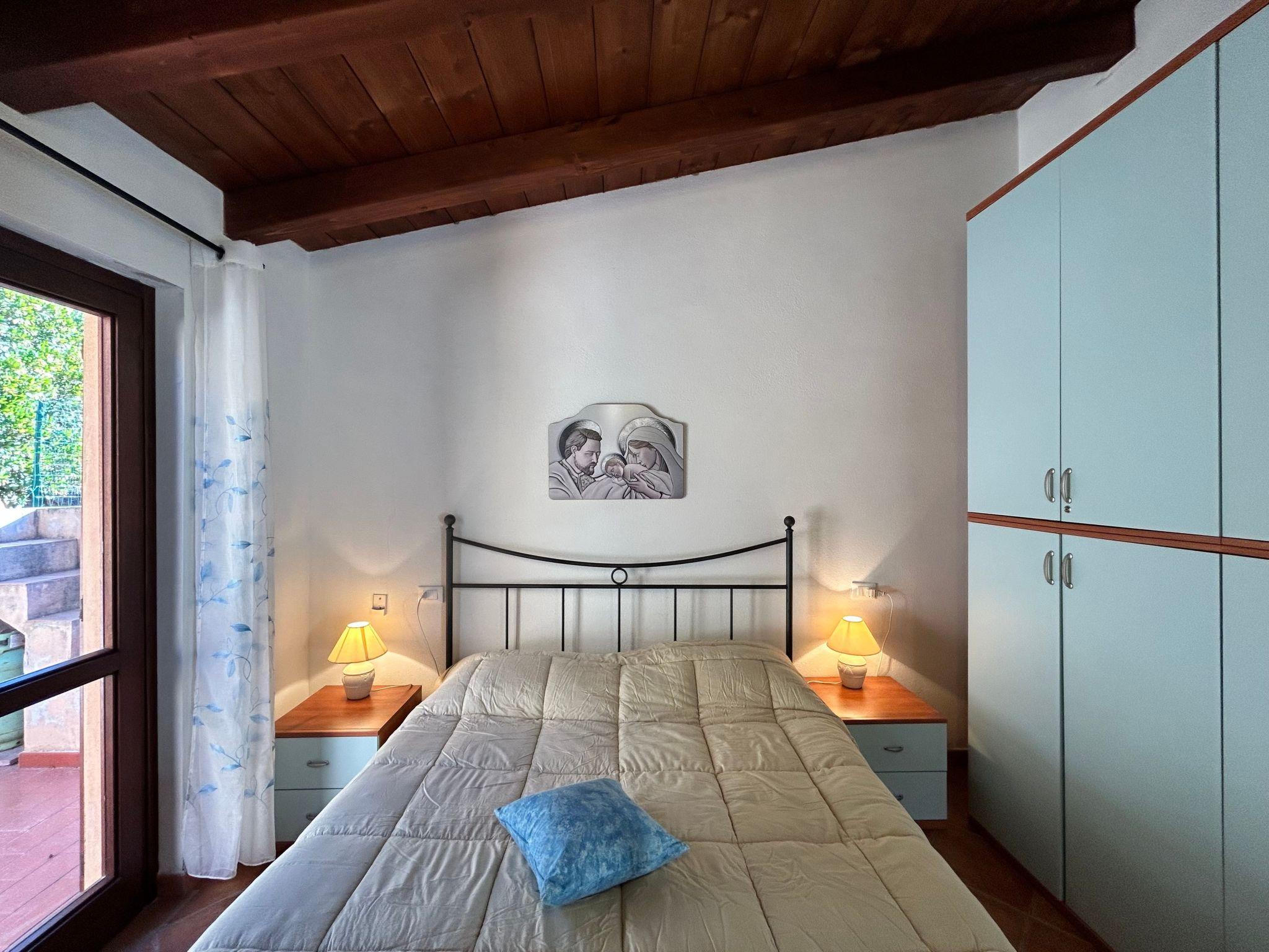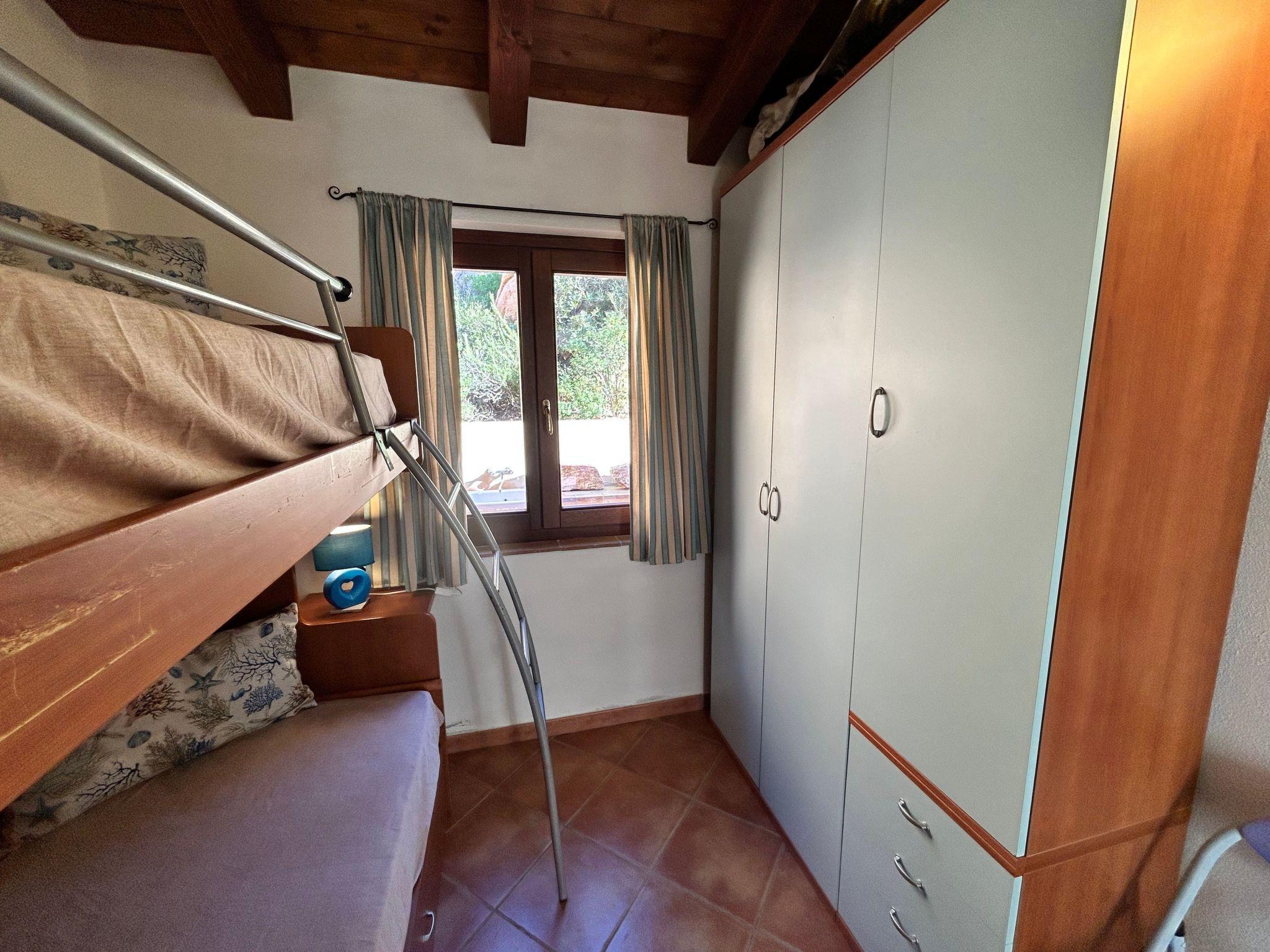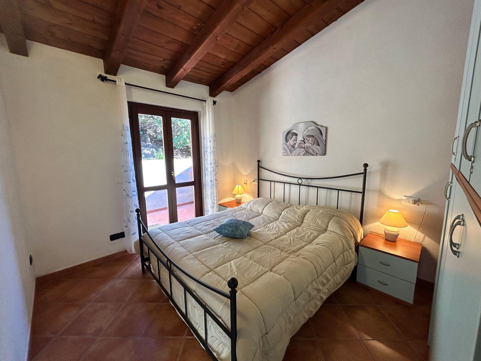 A few steps lead up to the sea-view terrace with a wooden table where you can enjoy a nice breakfast when you wake up or have a nice dinner with friends, admiring the magnificent sunsets. Entering the living room you will find a pleasant and bright room with two sofas (one is a sofa bed), a dining table, TV and a decorative fireplace. Adjacent to the living room is a well-equipped kitchenette with a gas hob, crockery and a convenient electric oven. From the living room, the sleeping area is accessed via a short corridor leading to the bedrooms and bathroom. The main bedroom, with a nice double bed and a capacious wardrobe, opens onto an outdoor courtyard with shower and washing machine. The second bedroom, also overlooking the courtyard, consists of a bunk bed and a two-door wardrobe. The bathroom is functional and consists of a washbasin, toilet, bidet and shower.