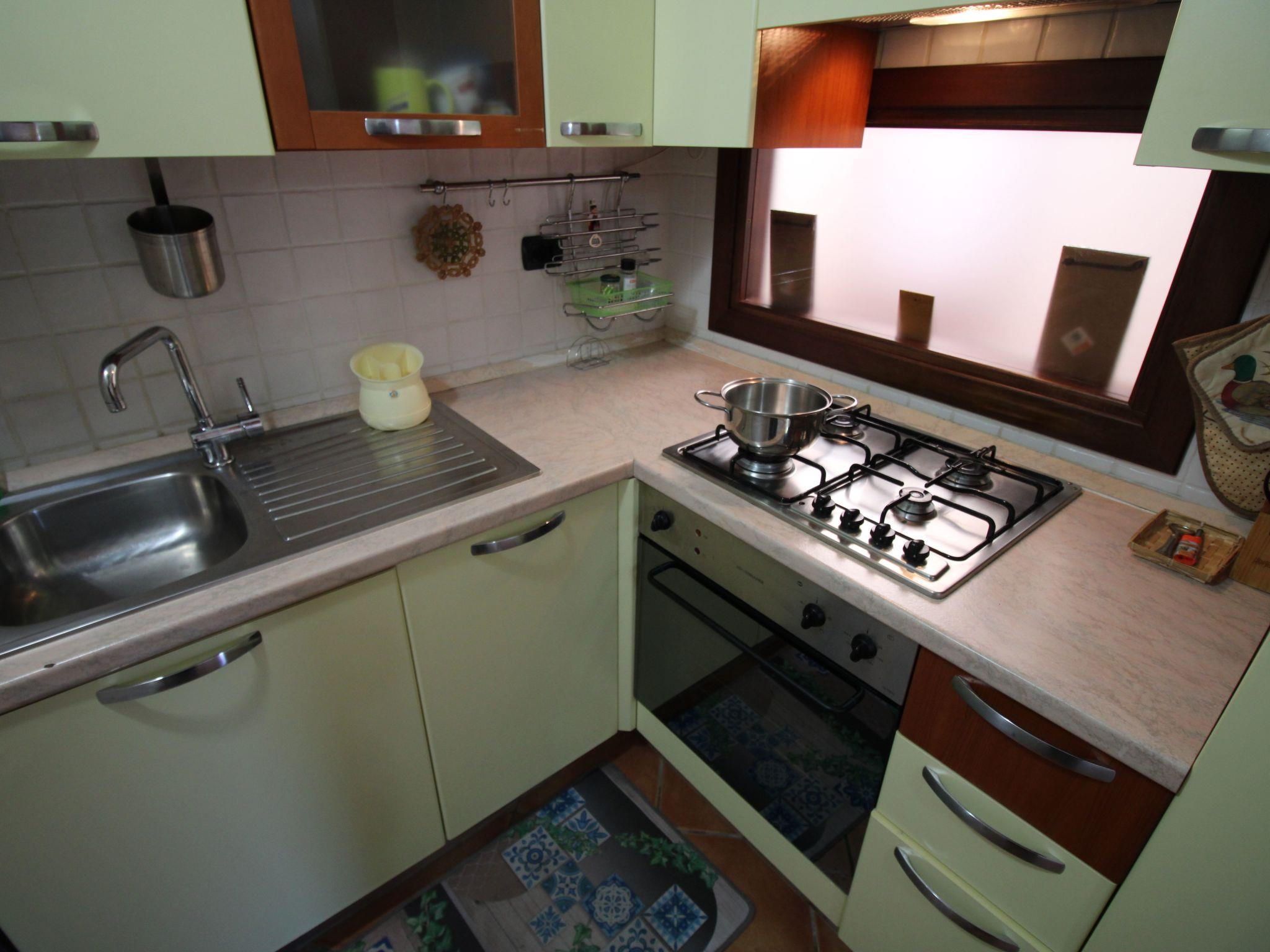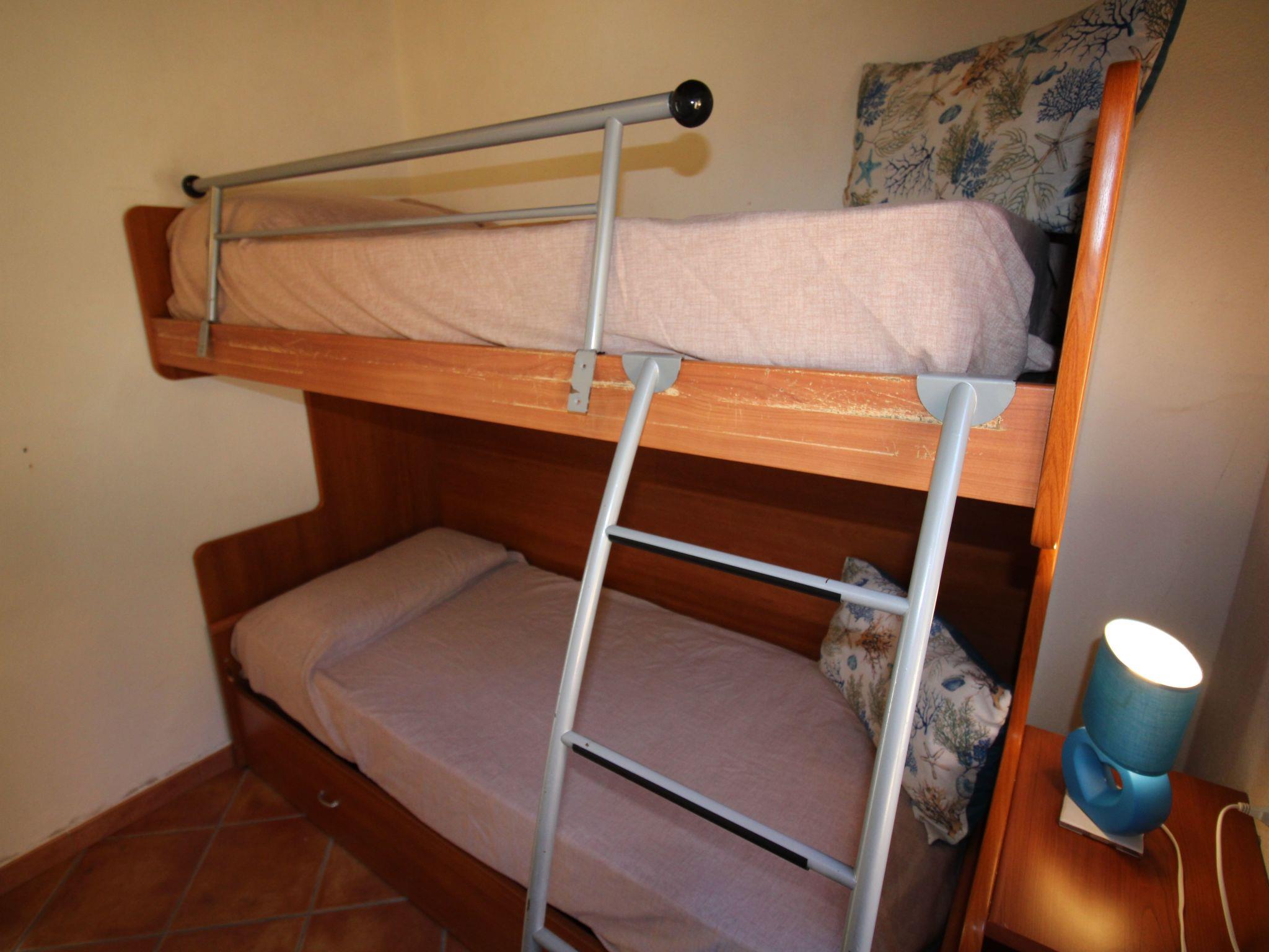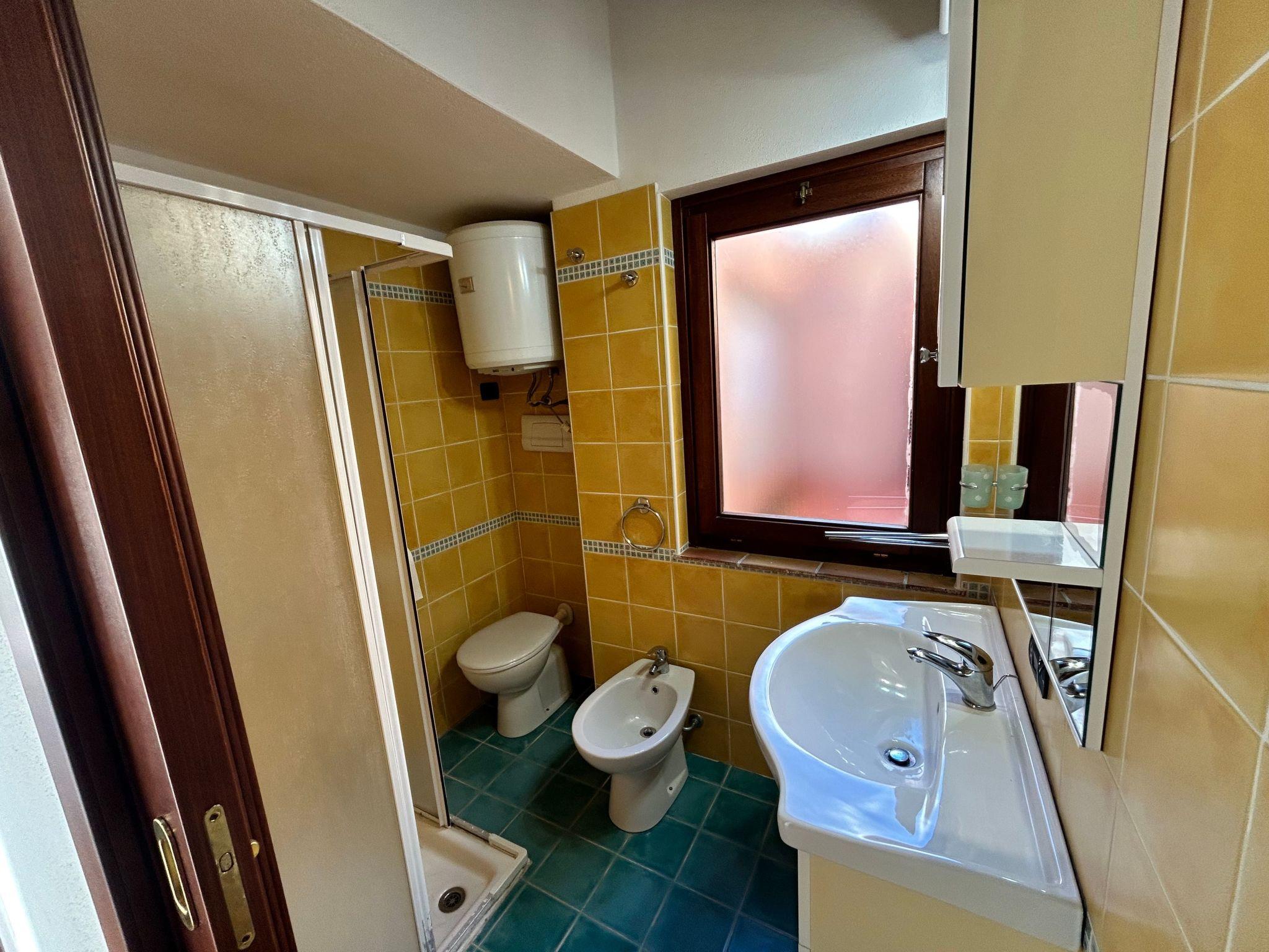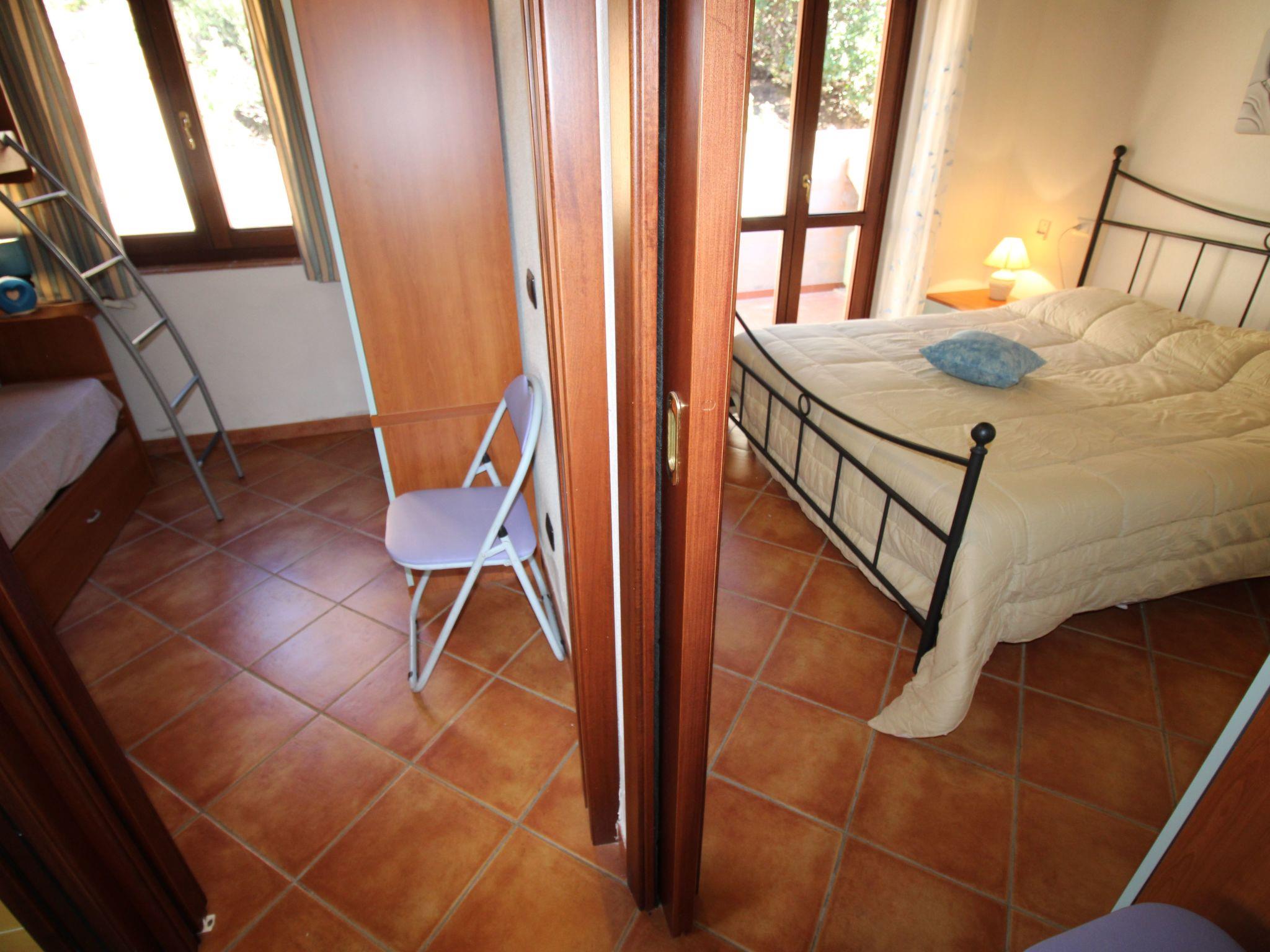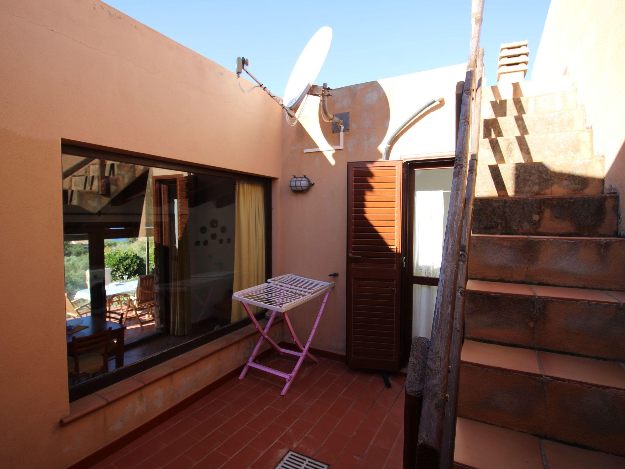 A few steps lead up to the sea-view terrace with a wooden table where you can enjoy a nice breakfast when you wake up or have a nice dinner with friends, admiring the magnificent sunsets. Entering the living room you will find a pleasant and bright room with two sofas (one is a sofa bed), a dining table, TV and a decorative fireplace. Adjacent to the living room is a well-equipped kitchenette with a gas hob, crockery and a convenient electric oven. From the living room, the sleeping area is accessed via a short corridor leading to the bedrooms and bathroom. The main bedroom, with a nice double bed and a capacious wardrobe, opens onto an outdoor courtyard with shower and washing machine. The second bedroom, also overlooking the courtyard, consists of a bunk bed and a two-door wardrobe. The bathroom is functional and consists of a washbasin, toilet, bidet and shower.