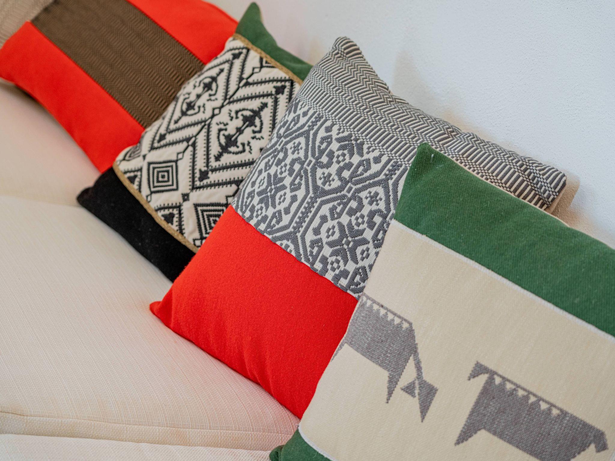 Internally, the villa has a large living room with dining table and kitchen. The sleeping area consists of two double bedrooms and one with two beds. There are two bathrooms.