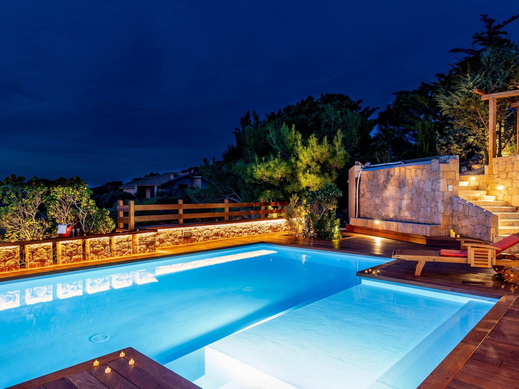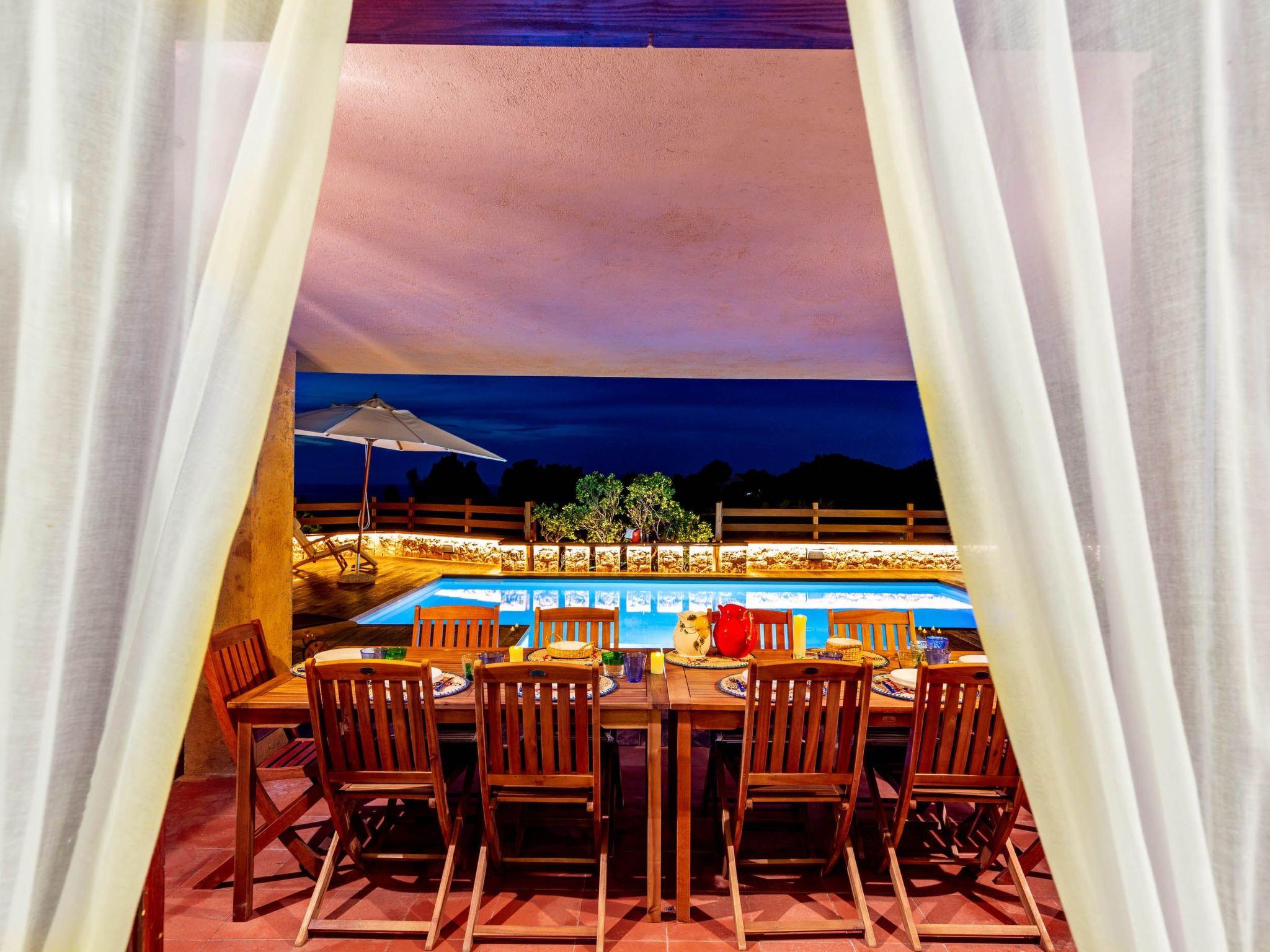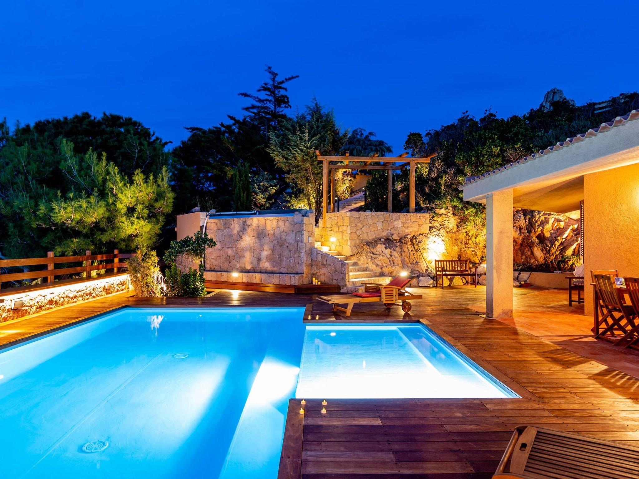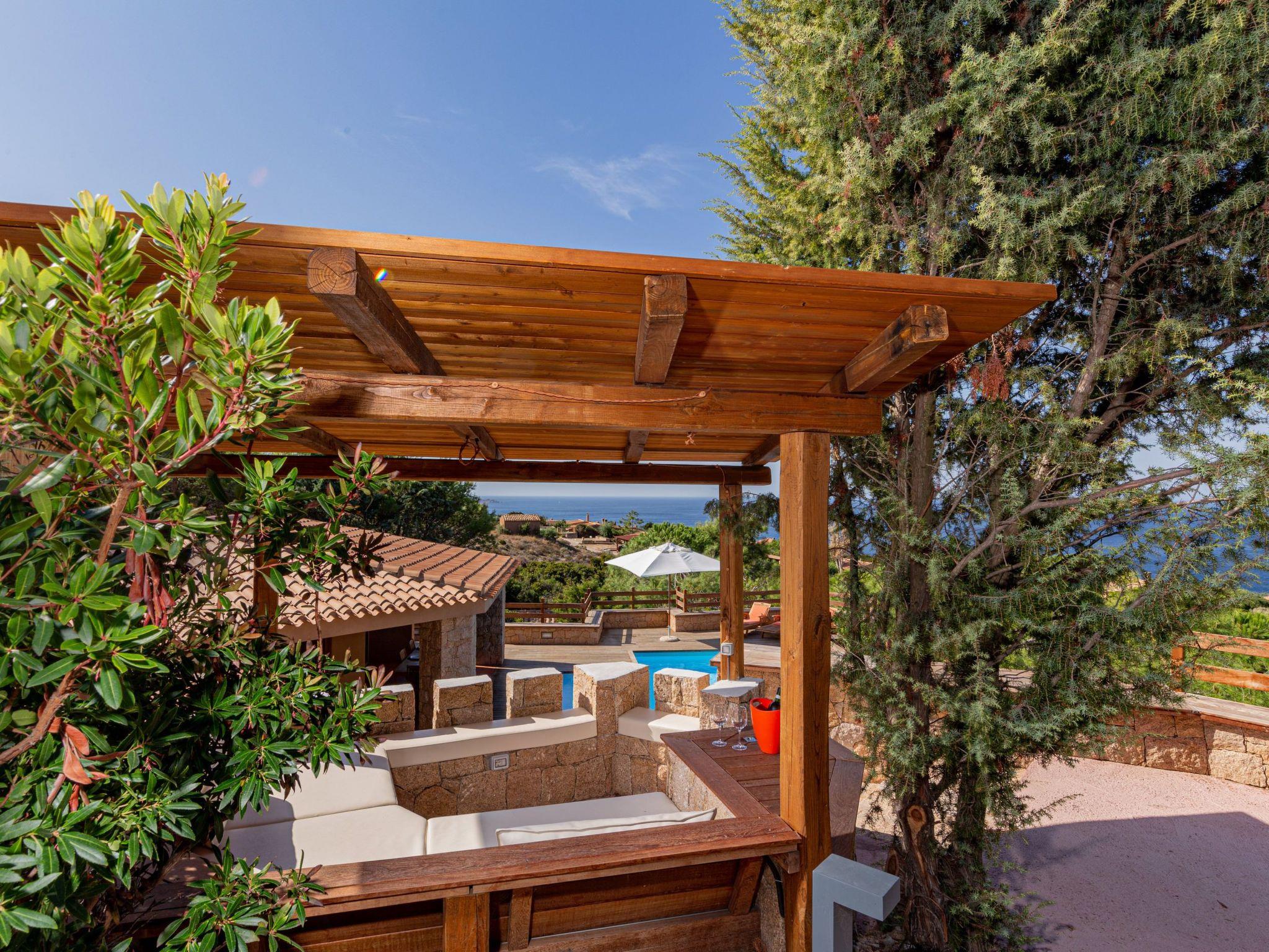 The villa enjoys a fantastic outdoor area with a private sea-view pool and wellness waterfall