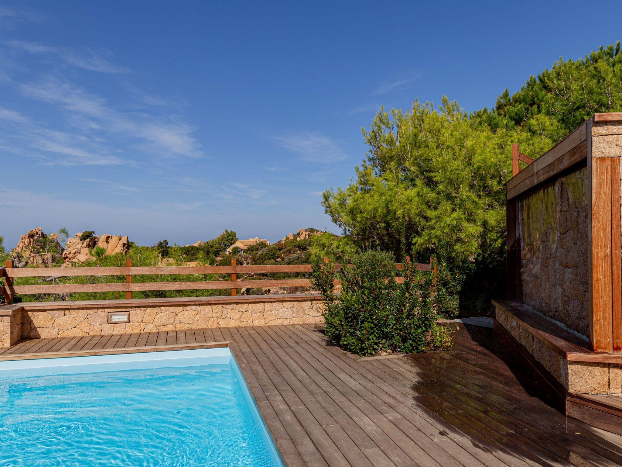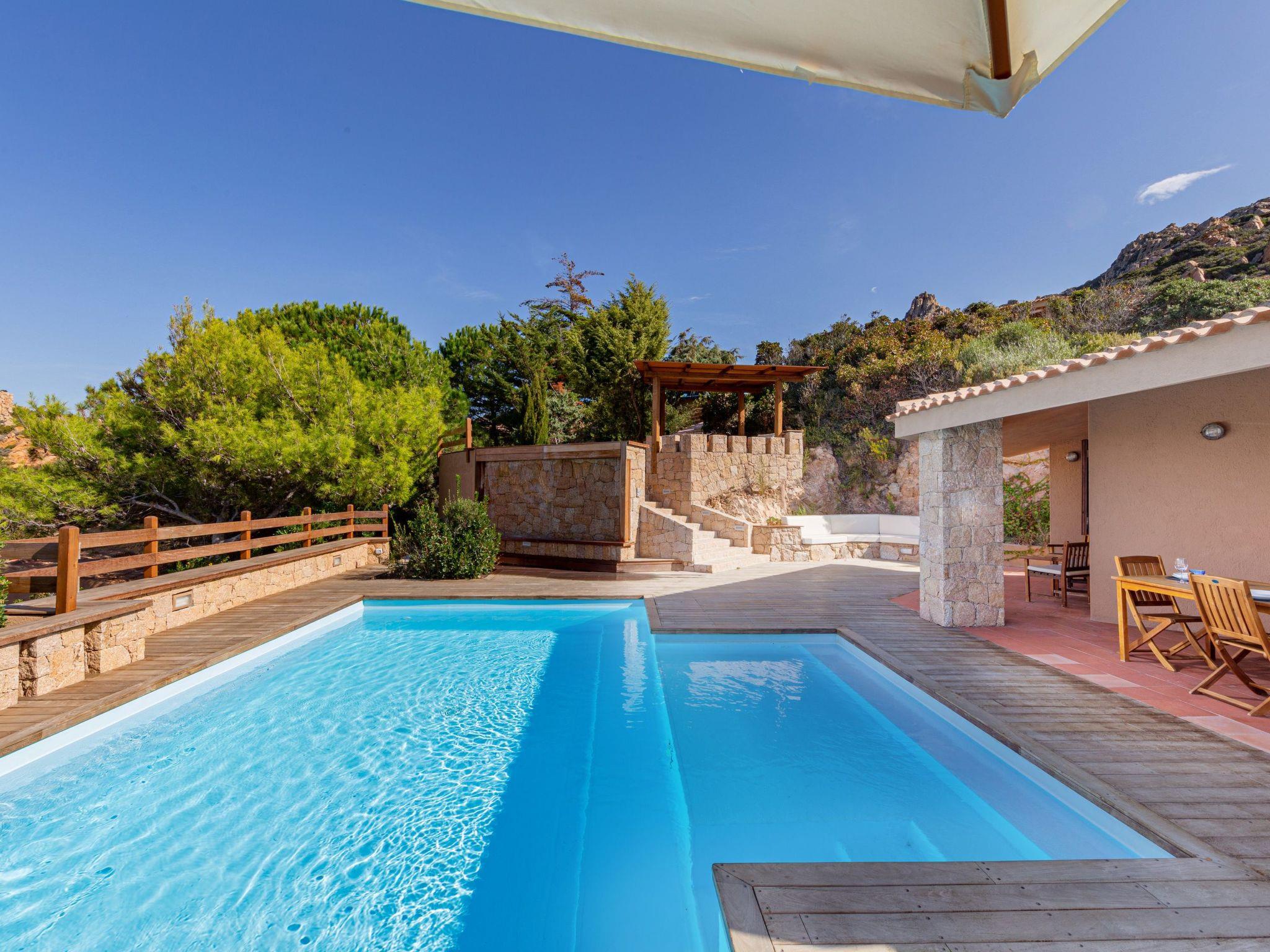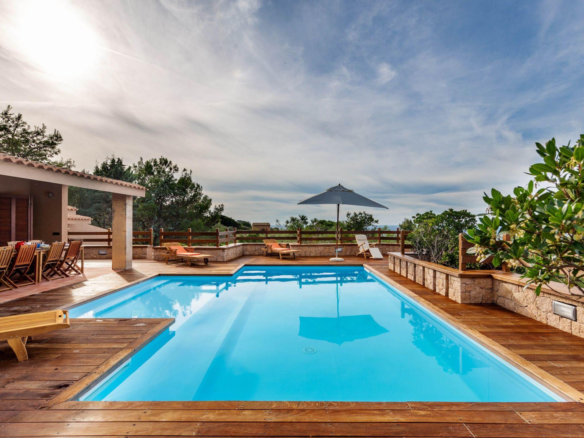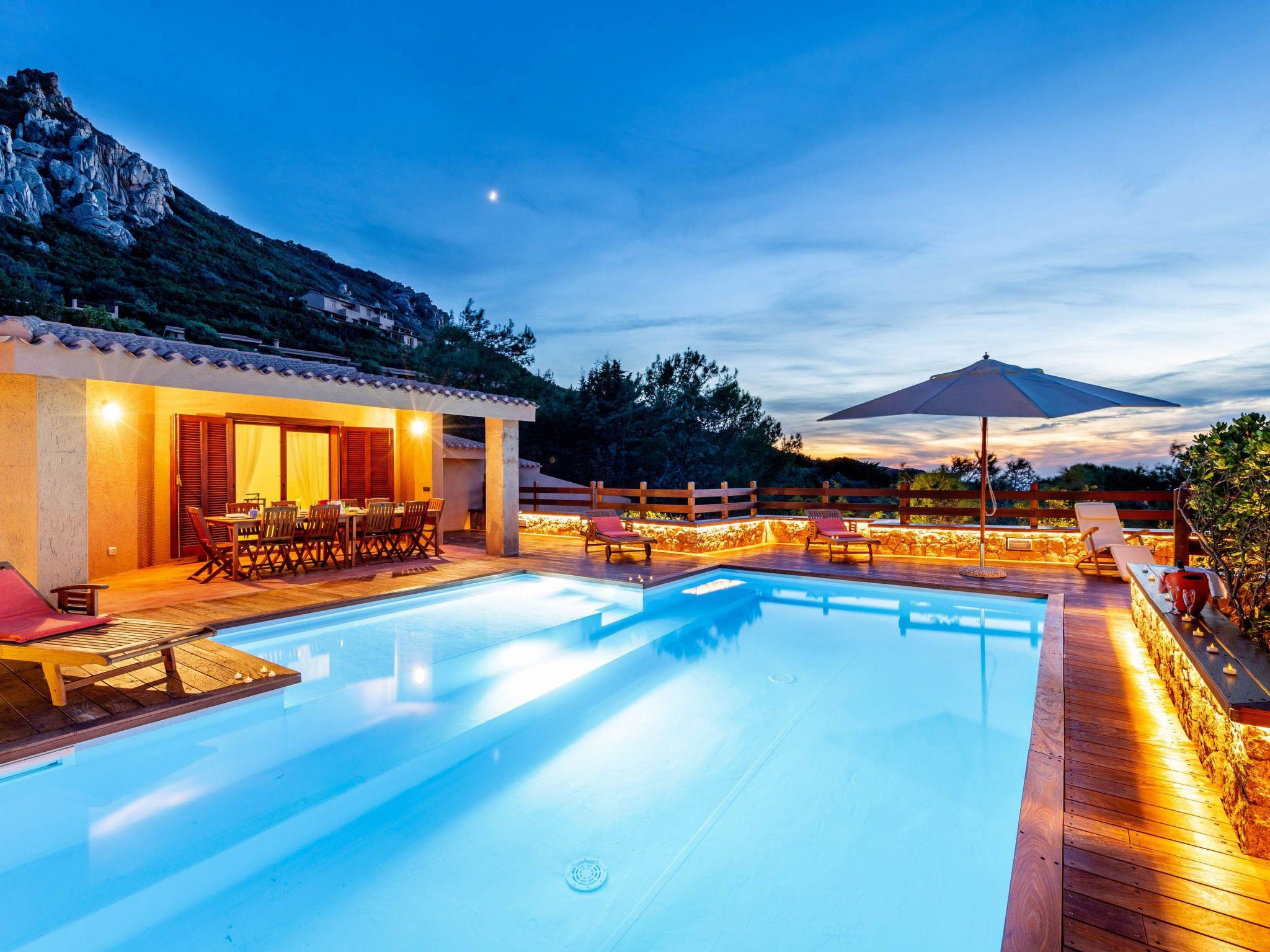 The villa enjoys a fantastic outdoor area with a private sea-view pool and wellness waterfall