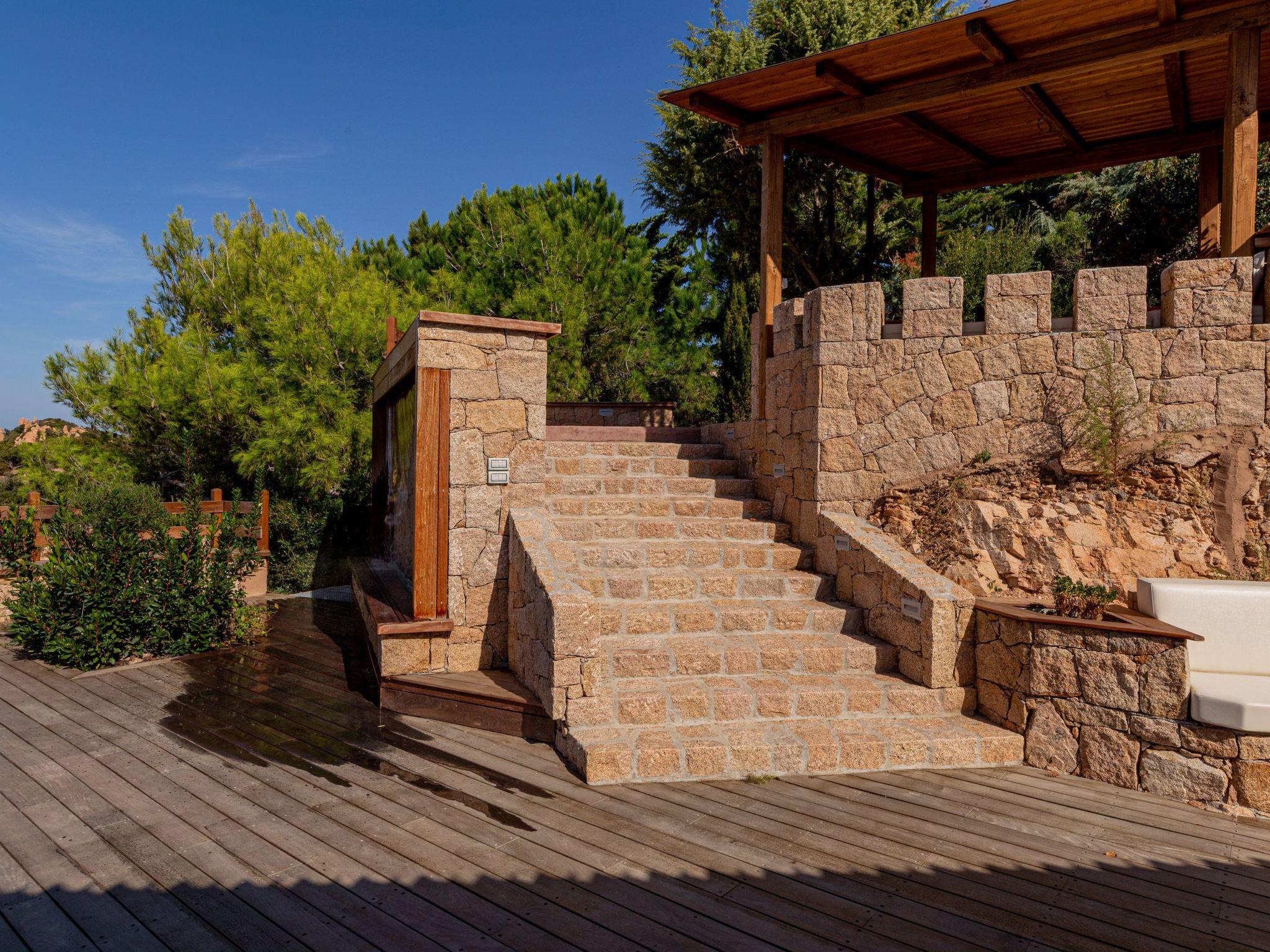 Outside, the villa has an entrance with a staircase made entirely of hand-crafted local stone. A magnificent sea-view solarium with private pool and wellness waterfall offers guests the opportunity to relax in a large, completely private area. The patio with dining table in front of the pool and with a magnificent sea view is designed for unforgettable dinners. In an elevated area is the relaxation belvedere with a unique view, a wooden canopy and a maxi sofa to enjoy the sunset spectacle during aperitifs. Everything studied down to the smallest detail for a dream holiday