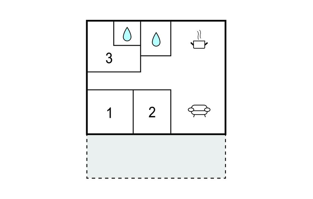 Opholdsstue/køkken - 1 Soveplads. (Sofa, madras eller lignende).