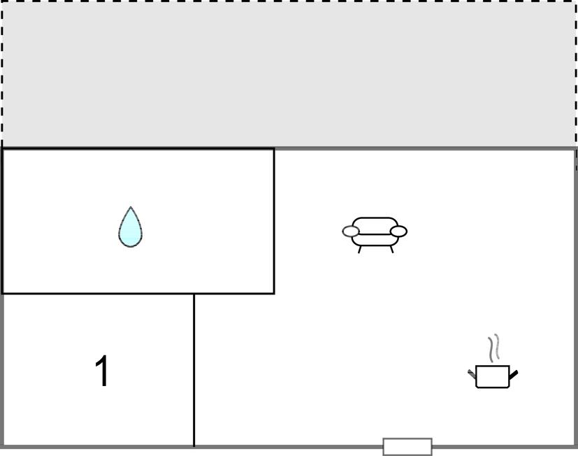 Opholdsstue/køkken - 2 Sovepladser. (Sofa, madras eller lignende).