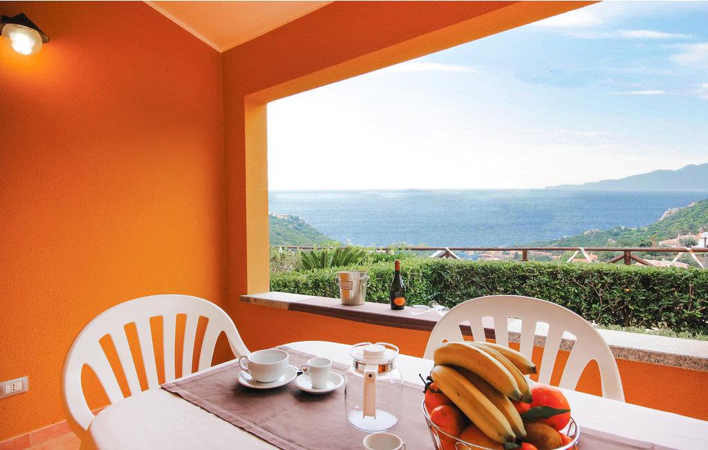 Ferielejlighed i et rækkehus i et boligkompleks i panoramisk beliggenhed, på bakken af Costa Rei, ved sydøstkysten af Sardinien. Indhegnet have og overdækket terrasse med herlig havudsigt, der er udstyret til måltider i det fri, grill, samt udendørs bruser. I samme kompleks ligger ISD813. Der er ca. 800 m til fods og 1200 m kørsel til frie strande og strande med udstyr til leje som parasoller, solsenge, kanoer, surfboards og sportsbåde. Costa Rei er en dejlig ferieby midt i den grønne og yppige middelhavsvegetation, kendt for sine hvide sandstrande og det krystalklare hav. Der er ca. 1 km til et indkøbscentrum med forskellige butikker, restauranter, pizzeria, isboder ved de små bytorv, lægevagt og diskotek. Ca. 6 km til landsbyen St. Elmo, 15 km fra den kendte badeby Villasimius, 70 km fra den smukke by Cagliari med havn og lufthavn. Foto er modelfoto.