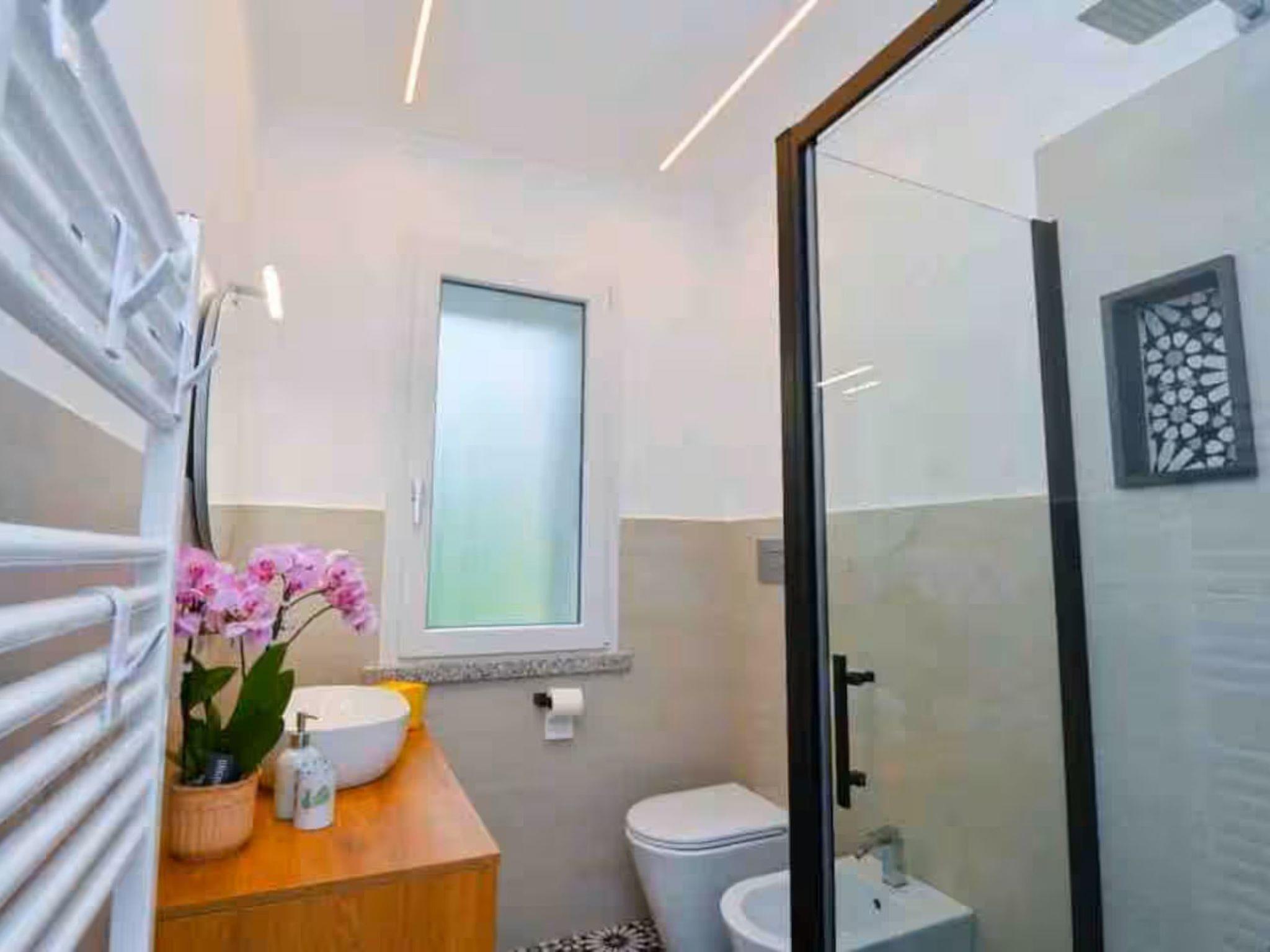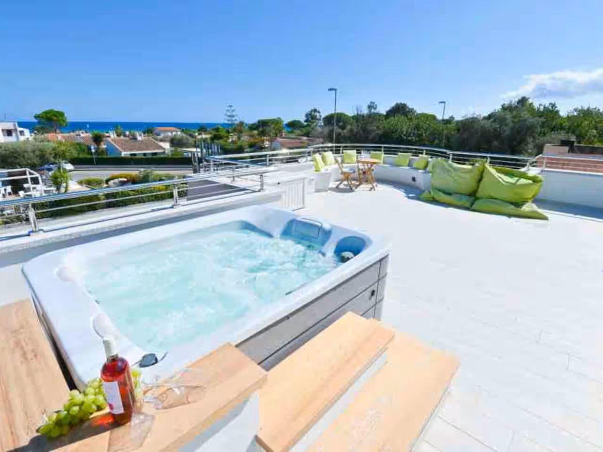 "Villa Rei M&M", 2-room villa. Comfortable and stylish furnishings: living/dining room with TV and air conditioning. Exit to the garden, to the veranda. 2 rooms, each room with 1 double bed. 1 room with 2 x 2 bunk beds. Open kitchen (oven, 4 induction hot plates, kettle, microwave, electric coffee machine) with dining table. 2 showers/bidet/WC. Air-conditioning, forced-air heating. Heating not available in all rooms. Large patio roofed, garden. Terrace furniture, barbecue, deck chairs. View of the sea. Facilities: washing machine, iron, hair dryer. Internet (WiFi). Parking at the house. Please note: not suitable for small children not suitable for children under 12 years. Smoke alarm, fire extinguisher. IT111042C2000R5504