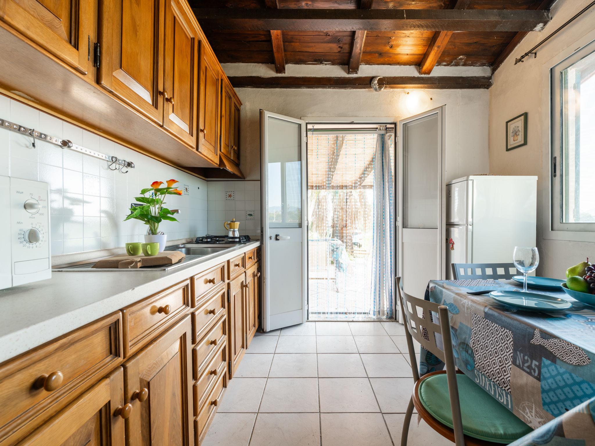 "Sa Frontera", 3-room house 65 m2. Comfortable and cosy furnishings: living/dining room with TV. 2 rooms, each room with 1 double bed and air conditioning. Kitchen (4 gas rings, kettle, microwave) with dining table. Exit to the veranda. Shower/bidet/WC. Air-conditioning, forced-air heating. Heating not available in all rooms. Large patio, large garden. Terrace furniture, barbecue. View of the countryside. Facilities: washing machine, iron, children's high chair, baby cot (extra), hair dryer. Internet (WiFi). Maximum 1 pet/ dog allowed. IT111042C2000T0635