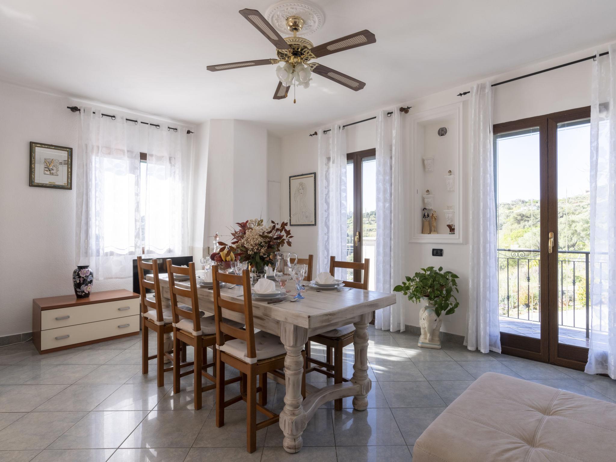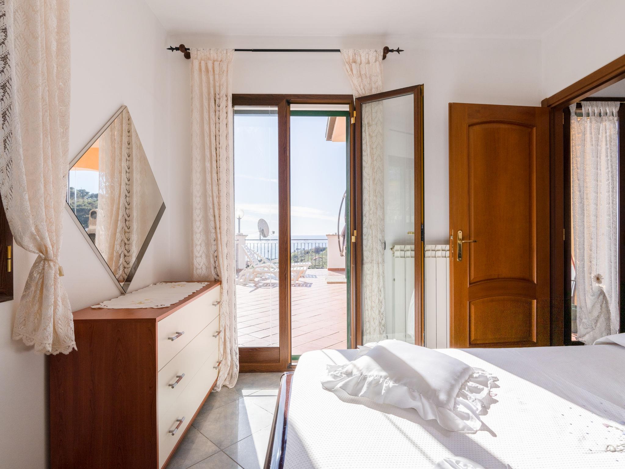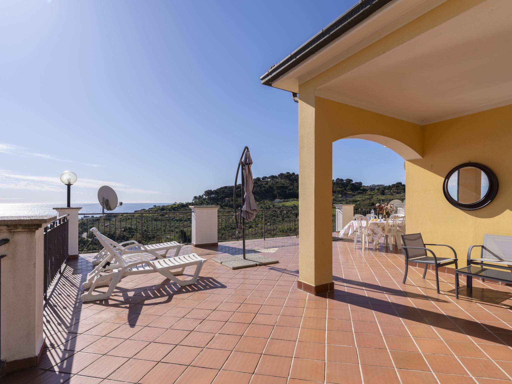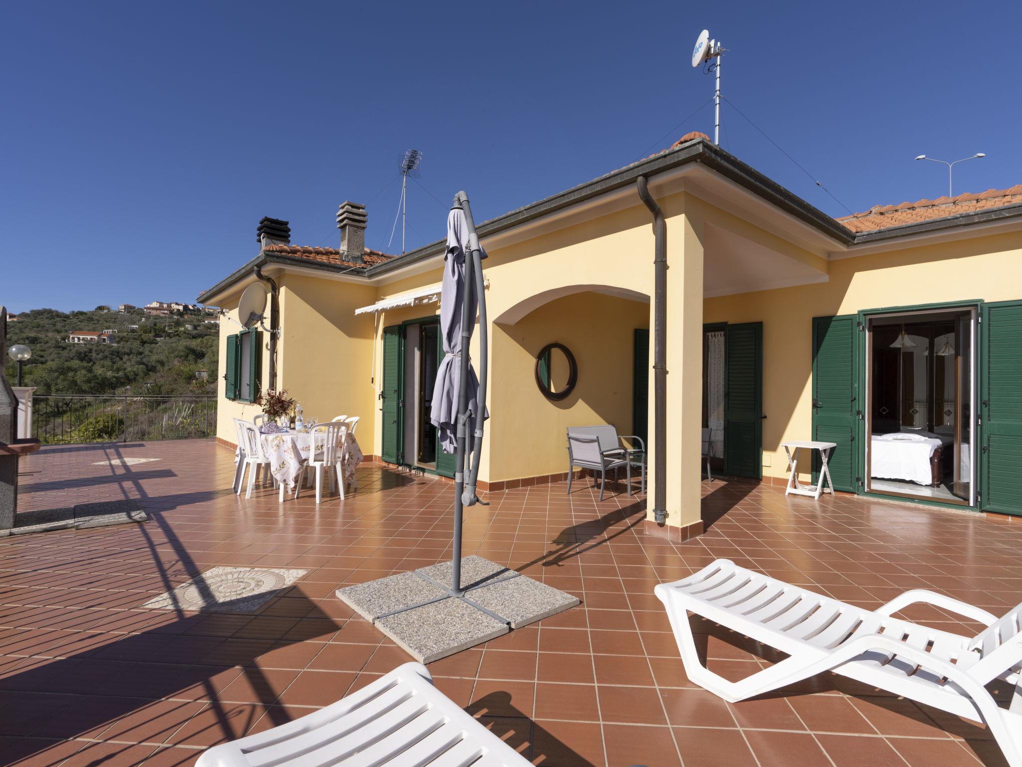 "Aurora", 3-room apartment 80 m2 on 1st floor. Bright, practical and cosy furnishings: 1 room with 1 double bed (1 x 160 cm). Exit to the terrace. 1 room with 1 double bed (1 x 160 cm). Open large living/sleeping room with 1 double sofabed (1 x 160 cm), dining table. Exit to the terrace. Open kitchen (oven, dishwasher, 5 gas rings, toaster, kettle, electric coffee machine) with dining table. Exit to the terrace. Shower/bidet/WC, double hand-basin. Wood heating. Large terrace 120 m2. Terrace furniture, barbecue, deck chairs (4). Very beautiful panoramic view of the sea and the valley. Facilities: washing machine, baby cot, hair dryer. Internet (WiFi). Please note: maximum 2 pets/ dogs allowed. Private entrance, smoke alarm, fire extinguisher. IT008024C265PIWCDG