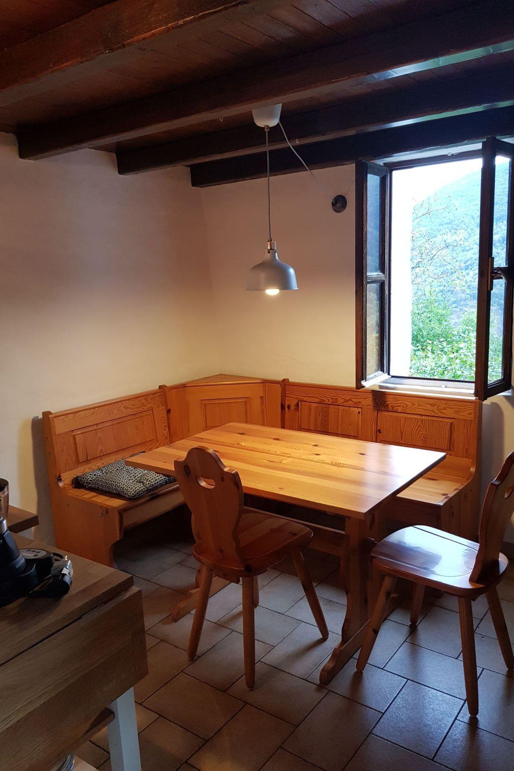 The outside area of the house offers a veranda and a small garden for outdoor relaxation. Equipped with garden furniture, deckchairs and a parasol, you can enjoy the mountain views and unwind here. The location in the car-free, old stone house village of Durone and the direct access to numerous hiking trails make for a unique holiday experience in the midst of unspoilt nature.