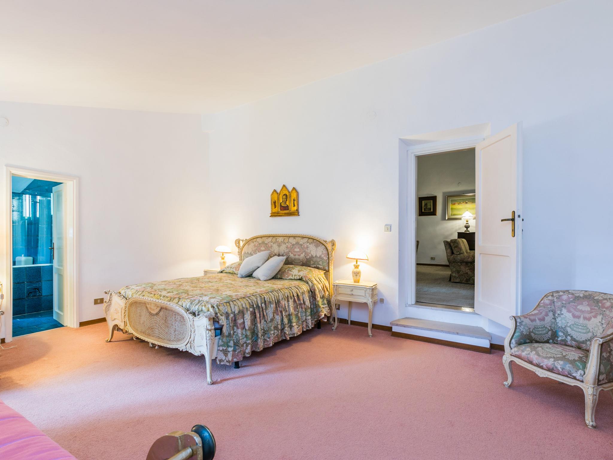 14-room villa 600 m2 on 3 levels, on the upper floor. Beautiful and luxurious furnishings: open large living/dining room. Exit to the garden, to the terrace. Large lounge. Exit to the garden. Living room. 4 double bedrooms, each room with shower/bidet/WC. Kitchen (4 hot plates, oven, dishwasher, freezer). On the lower ground floor: dining room with open-hearth fireplace. Exit to the garden. Upper floor: large living room with TV (flat screen). 3 double bedrooms. 1 double bedroom with shower/bidet/WC. 1 double bedroom. Shower/bidet/WC. Facilities: washing machine. Internet (WiFi, free). Maximum 1 pet/ dog allowed. The Villa is characterized by large spaces and elegant common areas that make it unique in its kind. Inside the property there is a large fully equipped room that can host events or meetings. IT050041C2YCGDXBPW
