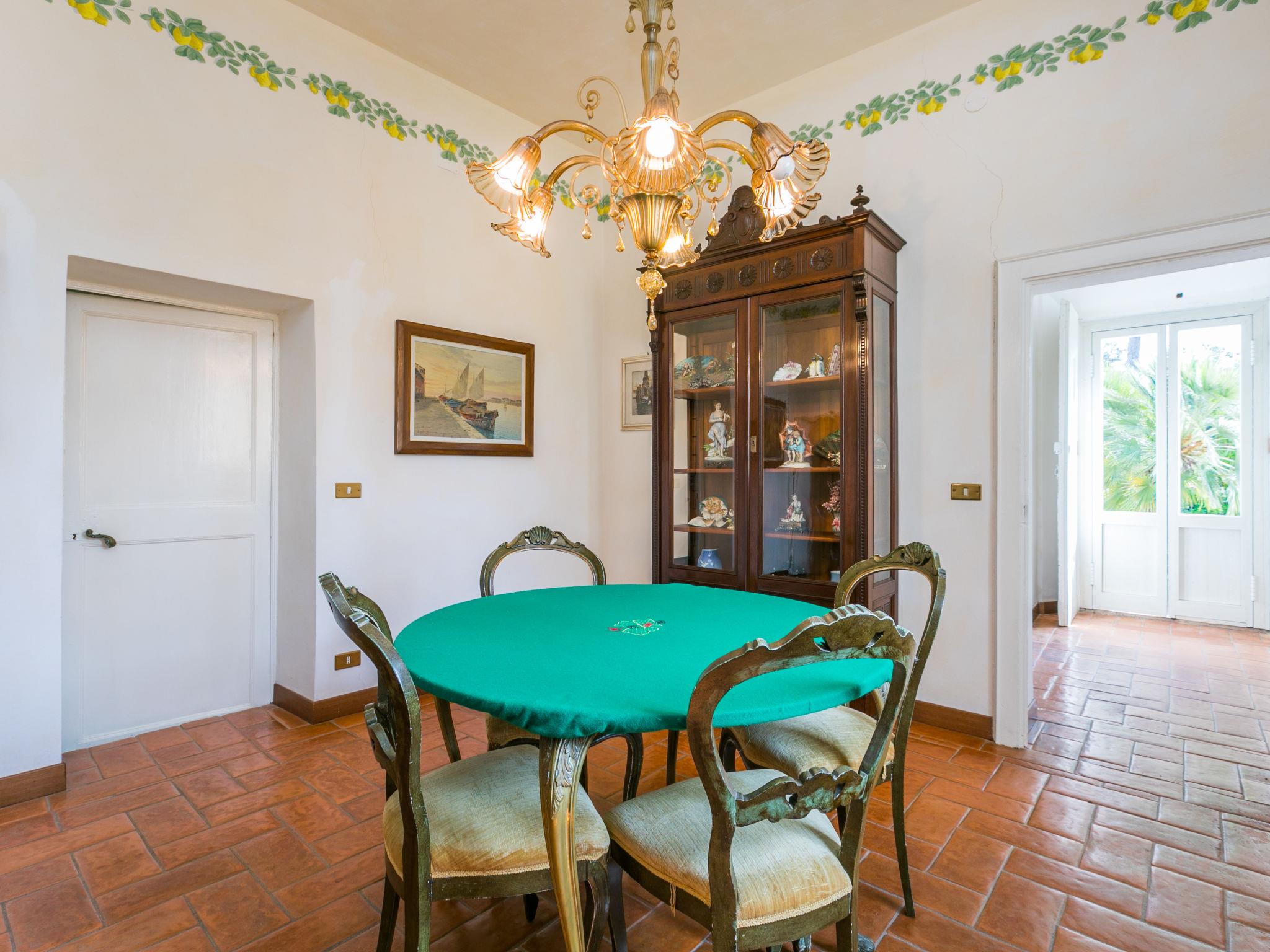 8-room villa 300 m2 on 2 levels, on the upper floor. Beautiful and luxurious furnishings: open large living/dining room. Exit to the garden, to the terrace. Large lounge. Exit to the garden. Living room. 4 double bedrooms, each room with shower/bidet/WC. Kitchen (4 hot plates, oven, dishwasher, freezer). On the lower ground floor: dining room with open-hearth fireplace. Exit to the garden. Maximum 1 pet/ dog allowed. The Villa is characterized by large spaces and elegant common areas that make it unique in its kind. Inside the property there is a large fully equipped room that can host events or meetings. IT050041C2YCGDXBPW