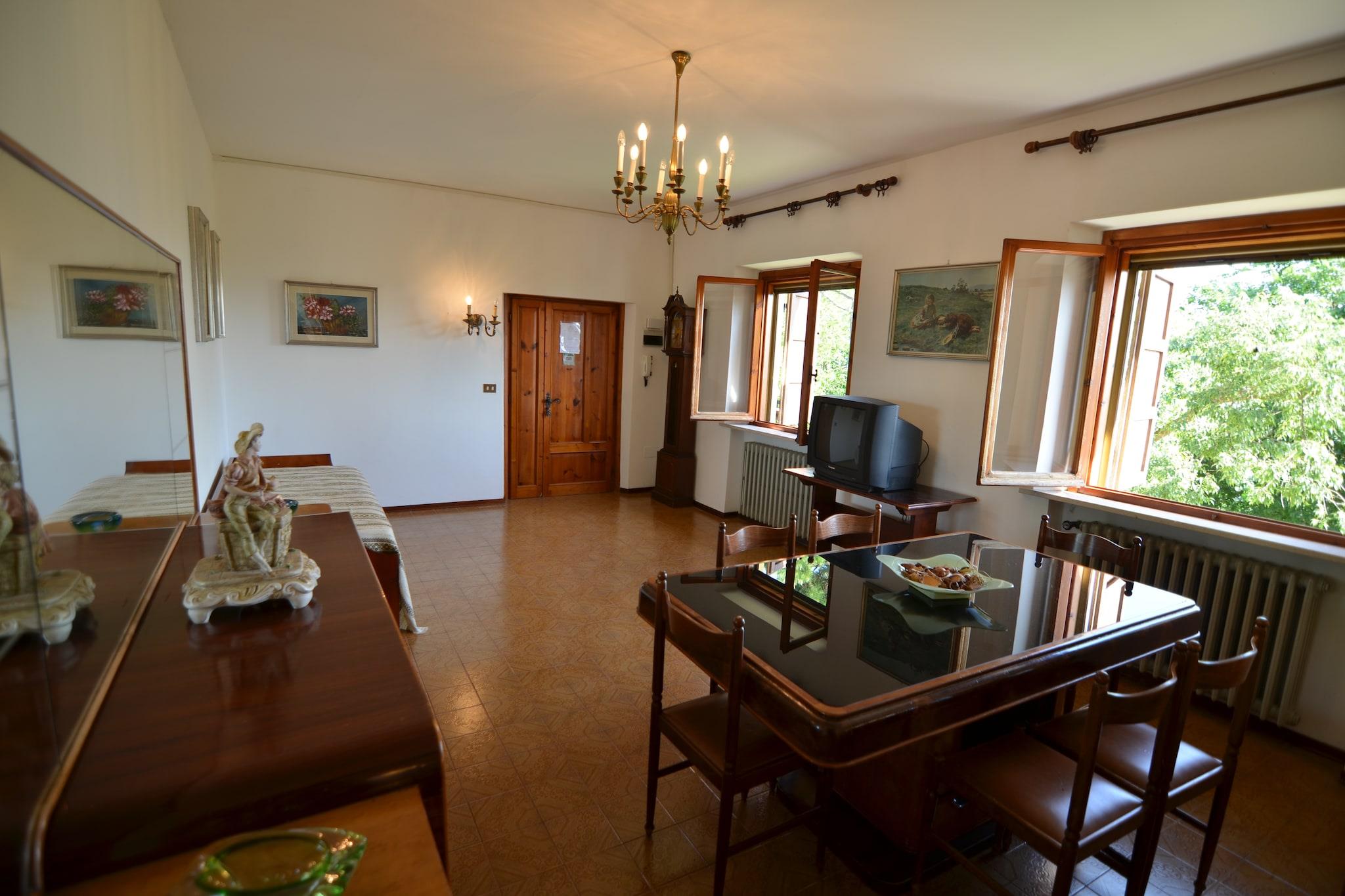 Beliggende i den fredelige landsby Croce di Montecolombo tilbyder dette kæledyrsvenlige feriehus til seks gæster en afslappende flugt med WiFi og charme på landet. Beliggende kun 10 km fra Adriaterhavet, er det perfekt for strandelskere og dem, der søger et roligt tilflugtssted. Boligen har en balkon eller terrasse til at slikke solen og en fælles swimmingpool (14 x 7 m, åben maj-september) til forfriskende dukkert på varme dage. Indenfor indeholder første sal et rummeligt køkken, tre soveværelser (to med dobbeltsenge og et med to enkeltsenge) og et badeværelse med badekar og vaskemaskine. Hallen med dobbelt sovesofa og tv tilbyder et hyggeligt sted at slappe af. Gæsterne kan også nyde centralvarme, et grillområde og adgang til en fælles have og bordtennis, hvilket gør det ideelt for familier eller små grupper. I nærheden kan du udforske Castello di San Savino, en historisk fæstning med panoramaudsigt, eller besøge Chiesa di San Giovanni Battista, en charmerende lokal kirke. Til spisning kan du nyde traditionelle italienske retter på Ristorante Pizzeria Il Borgo, nyde fisk og skaldyr på Ristorante Rimini Key, eller prøve rustikke retter på Il Mio Casale. Uanset om du udforsker kysten eller slapper af i bakkerne, tilbyder dette Montecolombo-retræte det bedste fra Emilia-Romagna.