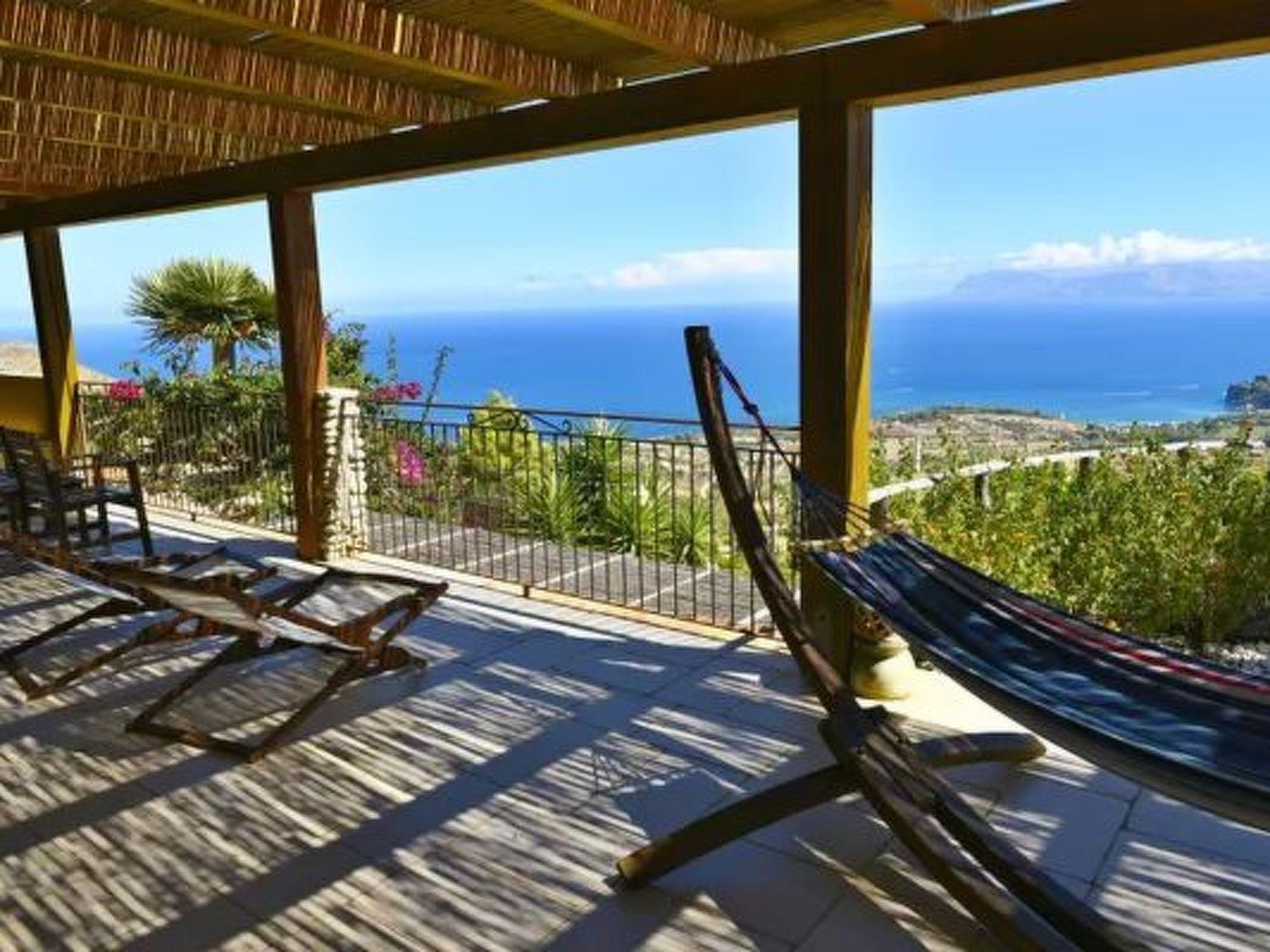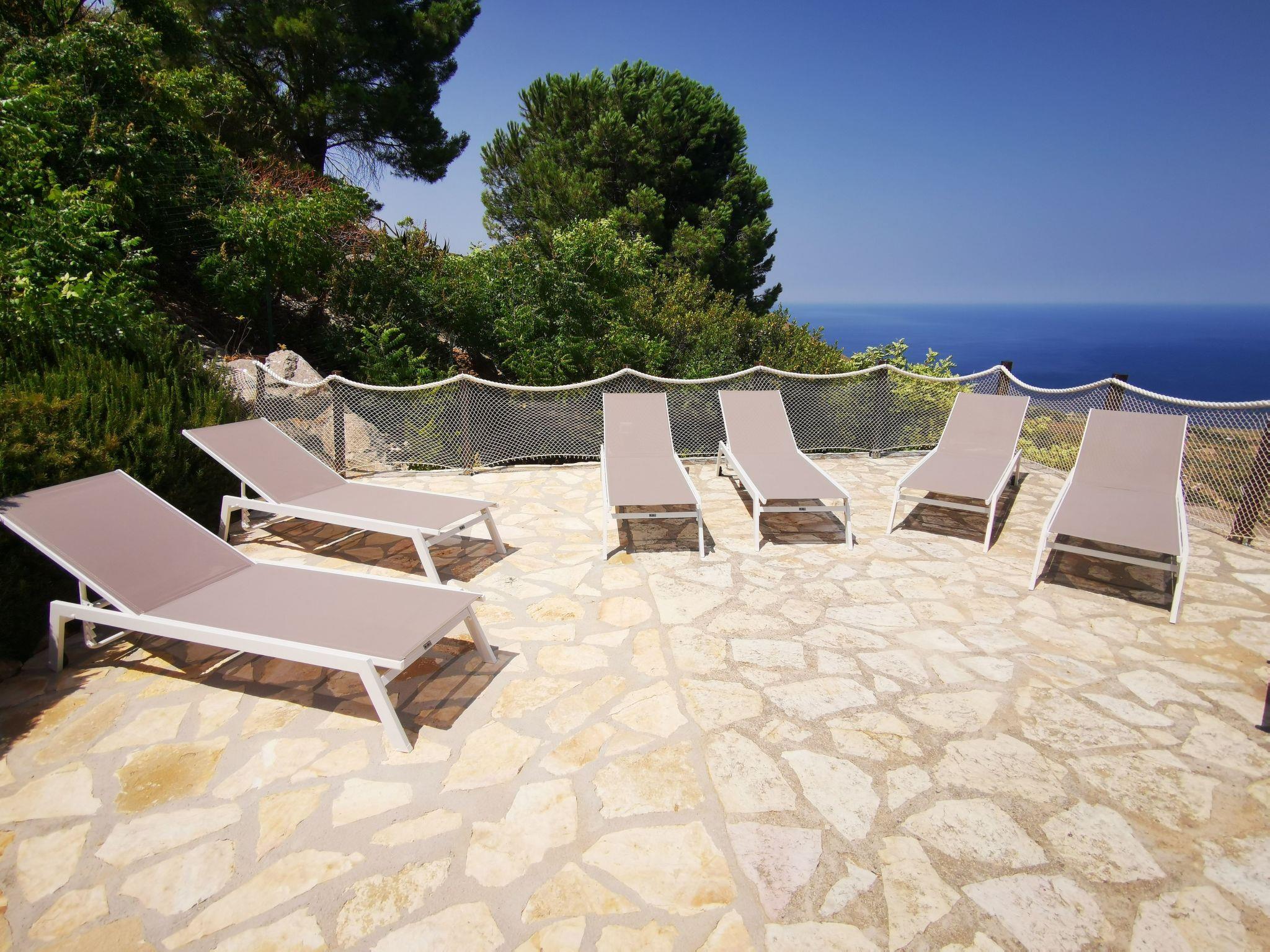 In the garden we find a 10-metre Swimming Pool, a Jacuzzi with unheated water at room temperature and a Mediterranean garden with various areas and 3 hammocks to relax in while appreciating a stunning panoramic view of the entire Gulf, where you can enjoy a fascinating sunrise and twilight. The Villa is rented out in total exclusivity and is located in a property of about 5,000 square metres that is fenced and has a private gate and for this reason a lot of privacy is guaranteed, in fact the other villas are at a distance and there is no view to disturb the guests. Inside the property we have a part for parking cars, a large veranda/terrace of 70 square metres with a bamboo cane roof, which overlooks the panoramic view, from which you have a glimpse of the entire Gulf of Castellammare from the airport of Palermo to the Bay of Guidaloca in Scopello. Inside the veranda/terrace, we find an outdoor dining area with a large table and chairs, then plenty of space with chairs to enjoy the view, an additional hammock for quiet relaxation, and deckchairs for resting with a sea view of the entire Gulf of Castellammare. Next to the pool we find the BBQ area and an outdoor shower serving the pool. Then we find a large solarium with sun loungers. Next to the pool we find a Jacuzzi, with its own small solarium. Spaces in the garden for a relaxing walk.