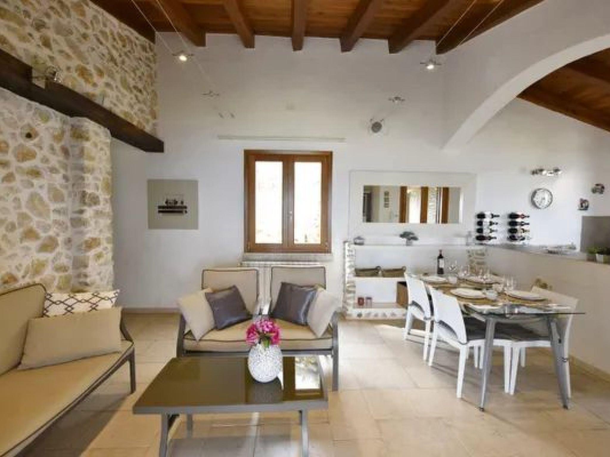The Villa has 5 rooms and can accommodate up to 10 persons of which 8 persons in 4 double beds in 4 rooms and 2 persons in a double sofa bed in another room communicating with one of the 4 bedrooms. For a total of 10 persons. The bedrooms are all equipped with Air Conditioning. There is a Heating system for use of the Villa in the winter period running from December to March, paying a supplement per day, otherwise you can use the electric heat pumps without paying the supplement. There are 3 full bathrooms and 1 shower in the garden by the pool.